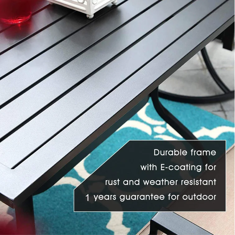 - Weather-resistant: Our dining table made of sturdy metal steel frame with powder coating easy to clean, rust-resistant no special care. Dimension: 60.2' x 37.8' x 28' (L x W x H) large rectangle tabletop for dinner and coffee time