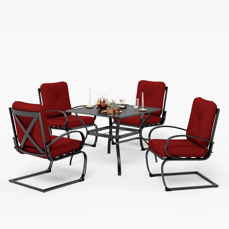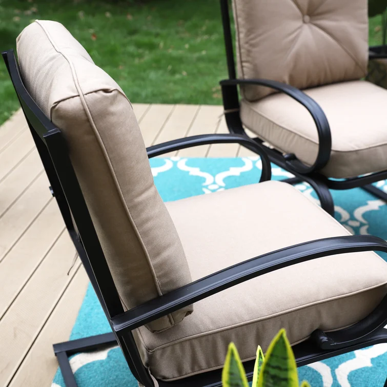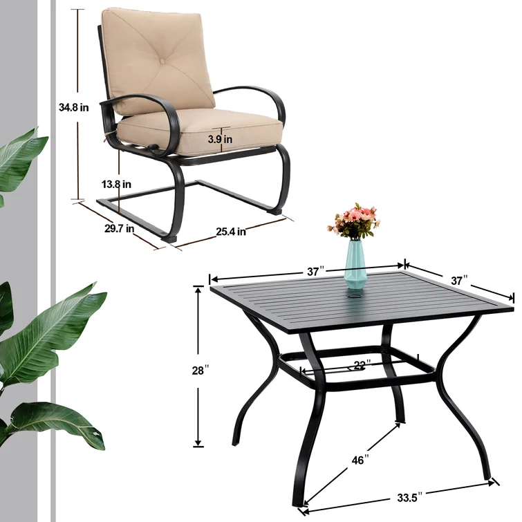 The chairs and table are all made of a heavy-duty metal frame, with e-coating for rust-resistant, weather-resistant, and easy to clean. The chairs fit perfectly around the table for backyard family dining, picnics, or lounging poolside with friends, match any decor, and suitable for outdoor and indoor use.