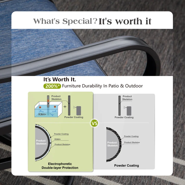 - Cool tech textile fabrics: Compared to normal chairs, our chairs are made of high-tech dry PVC-coated polyester material, super permeability, and high strength fabrics to meet the demands of daily outdoor use: Water-resistant, sun-resistant, and worn-resistant for long service time, the perfect choice for patio dining chairs.