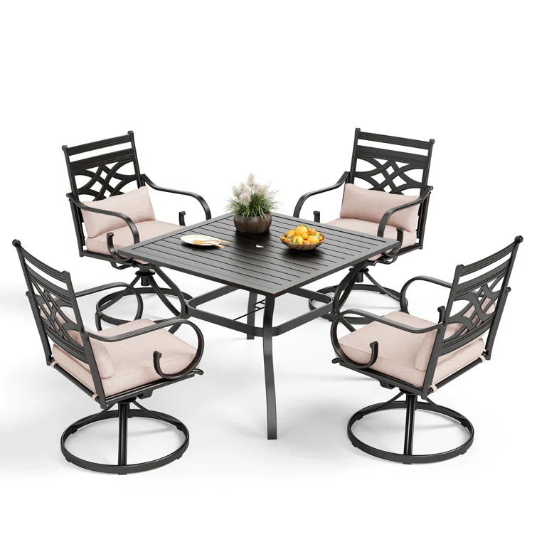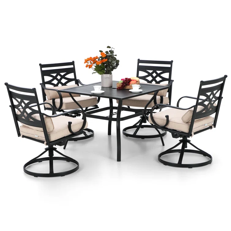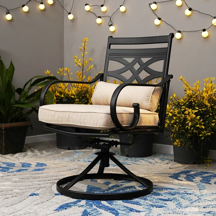 - 360-Degree swivel outdoor dining chair: Supported by a sturdy base, this patio dining chair offers the seamless ability to rotate 360 degrees, allowing you to effortlessly turn in any direction you desire.