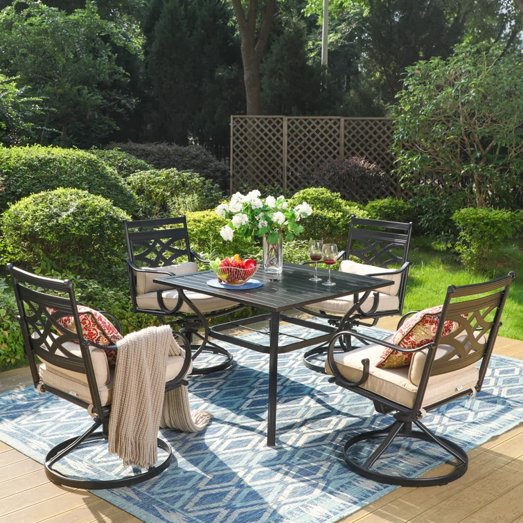 - Rust-resistant coating: This outdoor dining chair features a comprehensive rust-resistant coating, achieved through the application of powder coating and advanced electrophoretic techniques. This dual-layered approach provides all-around protection against rust, ensuring the set's longevity