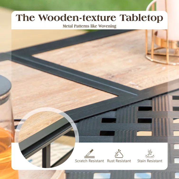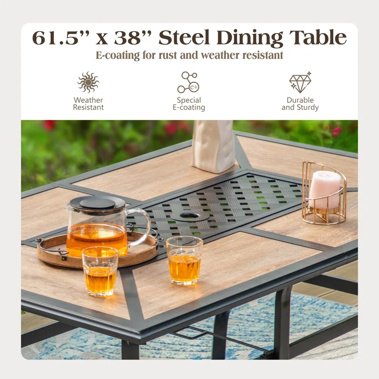 - Treated by e-coating and powder coating: Our table and chairs are water-resistant and less susceptible to rust than other products on the market
