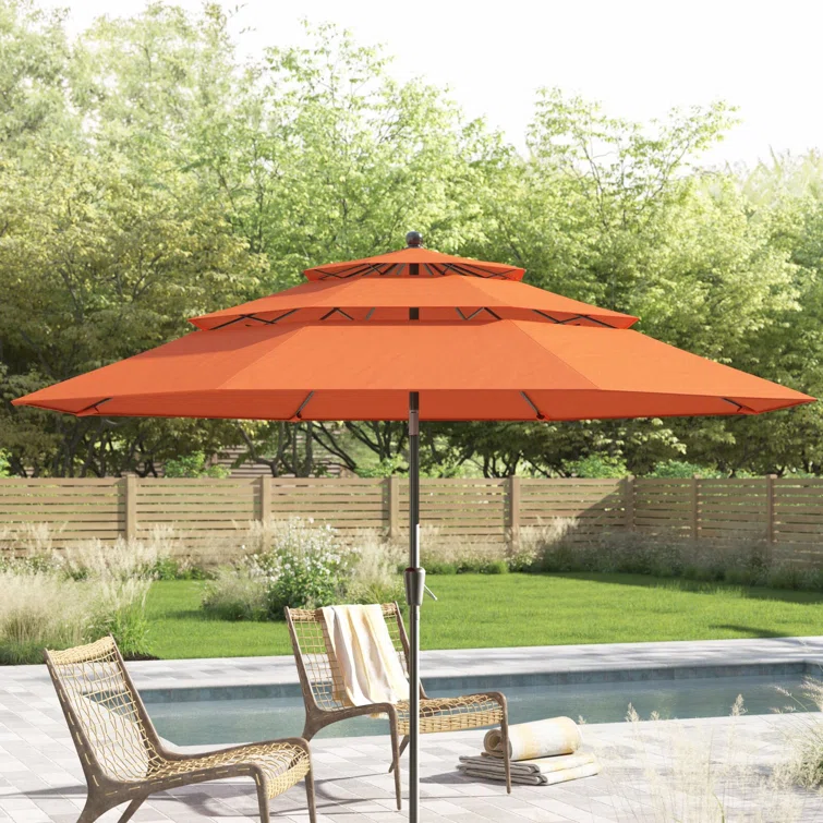 - Fashionable wind vents design: Practical design with 3 tier vented top to your patio, brings a little more fashion and elegance. The vents also ensure better stability and safety in use. Keep you cozy and cool under the patio umbrella on nice days. Available in orange red.