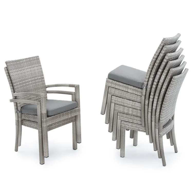 - Includes: Two (2) Armed Chairs, Six (6) Armless Chairs. Six (6) Cushion Covers, and One (1) Woven Dining Table with One (1) Faux Wood Top