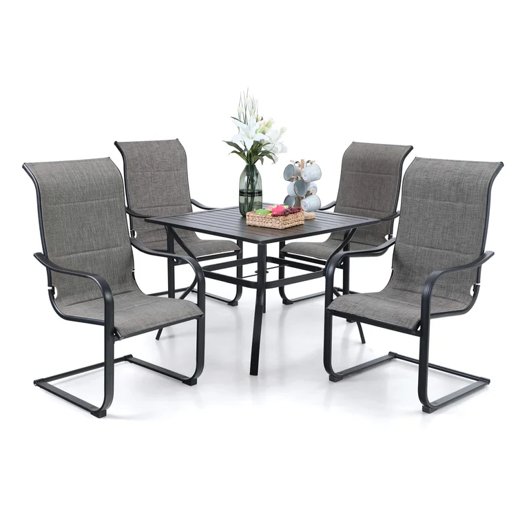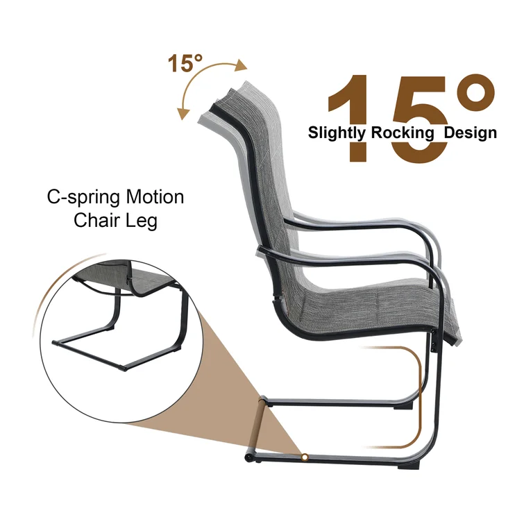 - C spring patio chair is made of high-density and breathable material, which is durable, and creates a smooth and comfortable rocking movement. Featured with anti-skid pad to prevent sliding and curved backrest design complies with the ergonomic standards.
