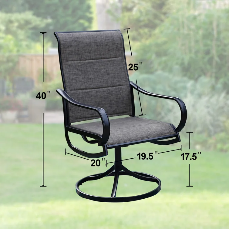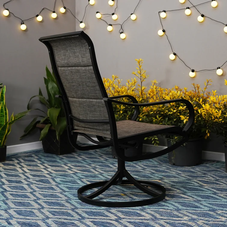 This 6-piece outdoor dining set adds classic style to your backyard gatherings. Designed to accommodate four people, the set includes a square table, four swivel sling-back chairs, and a coordinating umbrella. Crafted from powder-coated steel, the chair frames and table are weather-, water-, and UV-resistant, ensuring they'll withstand the elements. The table top features an umbrella hole to accommodate the included umbrella, allowing for shade during sunny days. Enjoy outdoor meals and conversations with this timeless ensemble.