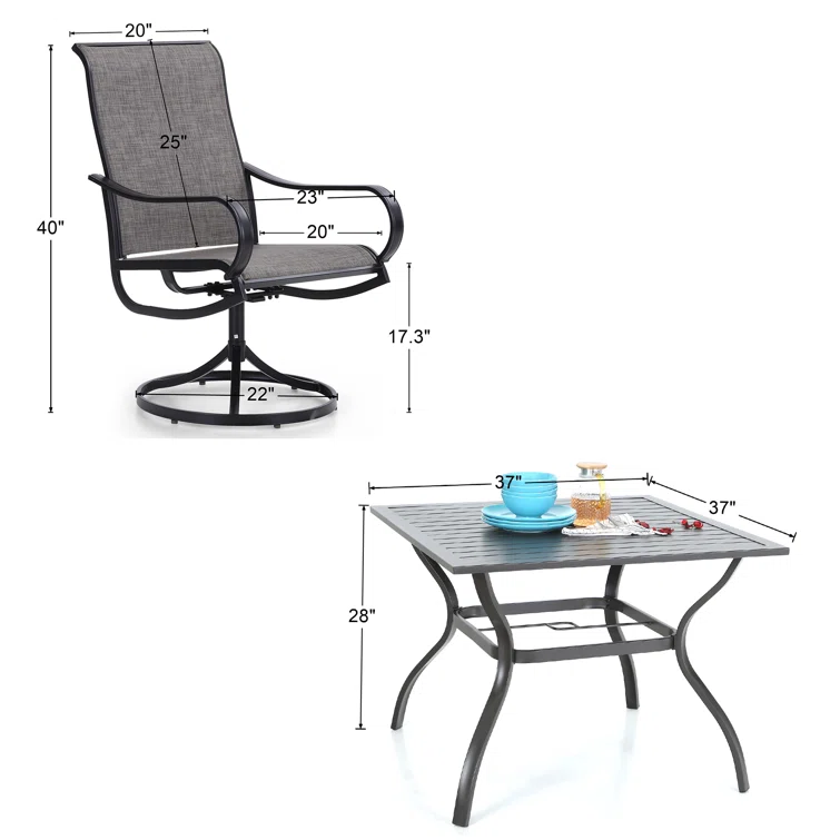 - Durable material: These patio dining chairs are made of a strong steel frame, and the table is made of premium metal. It is durable to withstand snow, rain, wind, and high temperatures well for long time use.