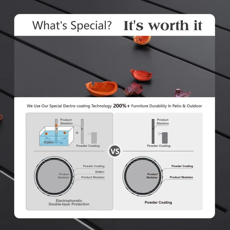 - E-coated and powder-coated heavy-duty steel frame: Thickened tube prevents the chair from changing shape through frequent using and rocking.
