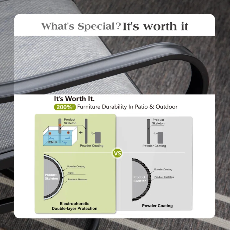 - Cool tech textile fabrics: Compared to normal chairs, our chairs are made of high-tech dry pvc-coated polyester material, super permeability, and high strength fabrics to meet the demands of daily outdoor use: Water-resistant, sun-resistant, and worn-resistant for long service time, the perfect choice for patio dining chairs.