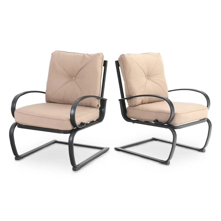 The chairs and table are all made of a heavy-duty metal frame, with E-coating for rust-resistant, weather-resistant, and easy to clean. The chairs fit perfectly around the table for backyard family dining, picnics, or lounging poolside with friends, match any decor, and suitable for outdoor and indoor use.