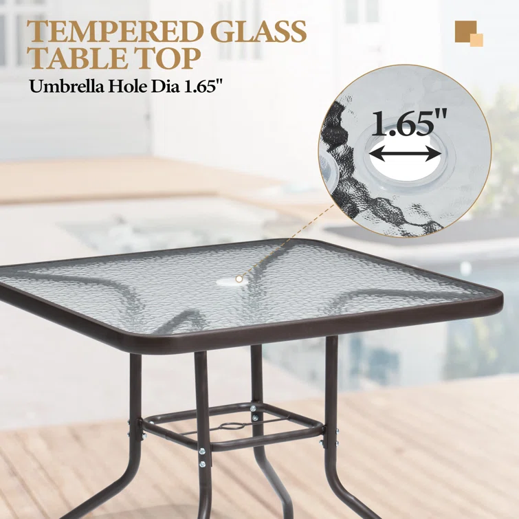 - Made for various occasions: Used as a patio dining set to enjoy family time or a bistro set for leisure chatting. The table with a hole in the middle for putting your umbrella.