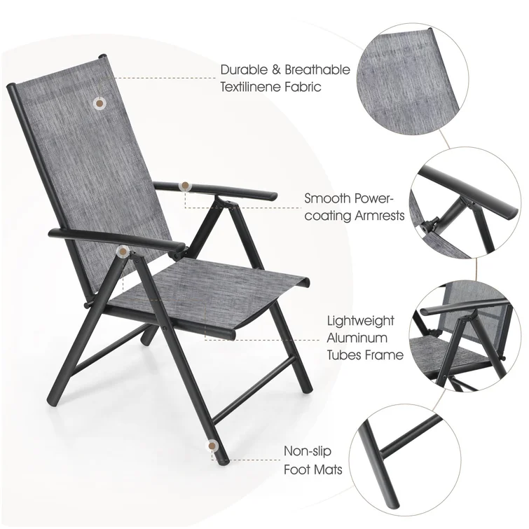 - Sturdy lightweight frame: Our folding chairs are made of lightweight powder-coated aluminium frame and premium PVC-coated polyester fabric. A high-quality metal structure makes it stable, durable and long-lasting. PVC-coated polyester has good performance of UV protection, breathability, bearing capacity.