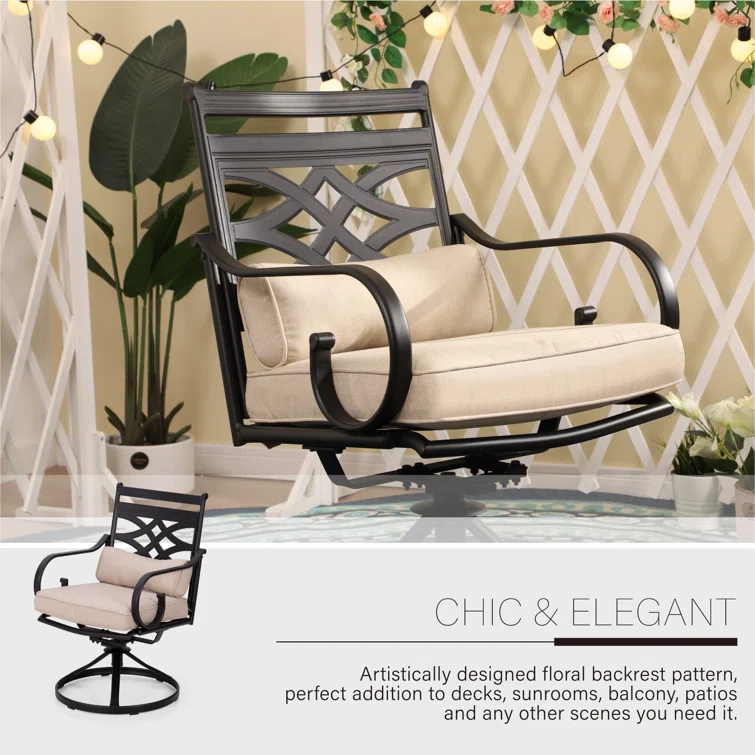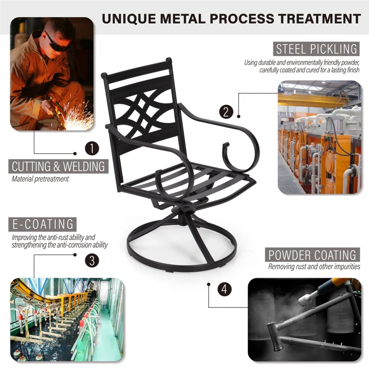 - E-coated and powder-coated heavy-duty steel frame: Thickened tube prevents the chair from changing shape through frequent using and rocking.