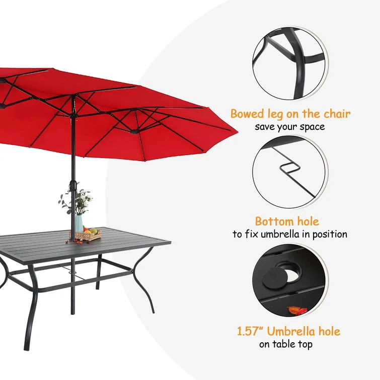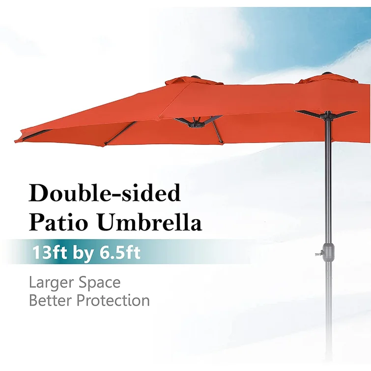 - Canopy umbrella: Humanized crank design, using the handle up and down to control the opening and closing of the umbrella. 13ft outdoor umbrella adopts 180g polyester fabric surface, 1.5-inch diameter rust-proof umbrella pole, and 12 steel ribs (no umbrella base).