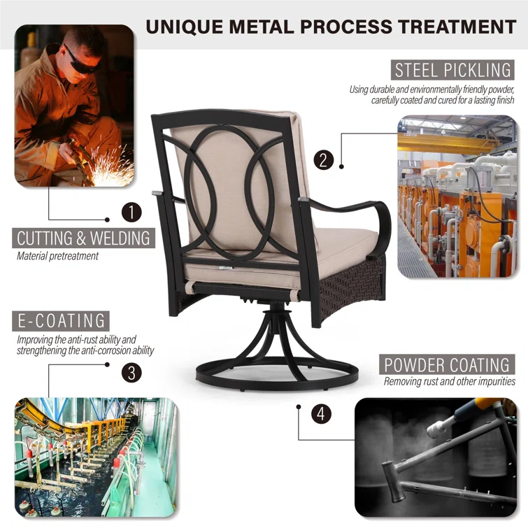 - Durable Metal Frame: Steel frame treated with multi-steps to prevent rust, e-coating, and powder-coating, for maximum outdoor protection.