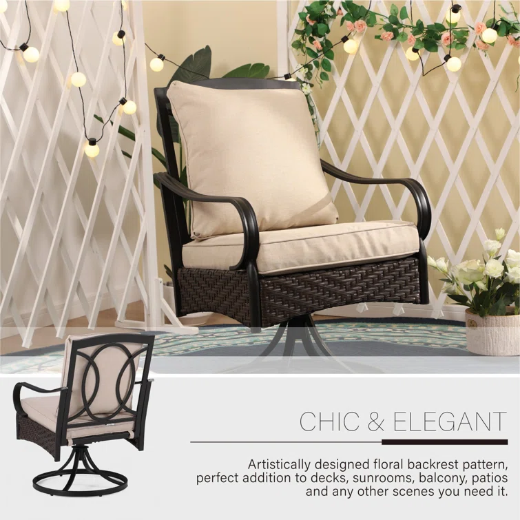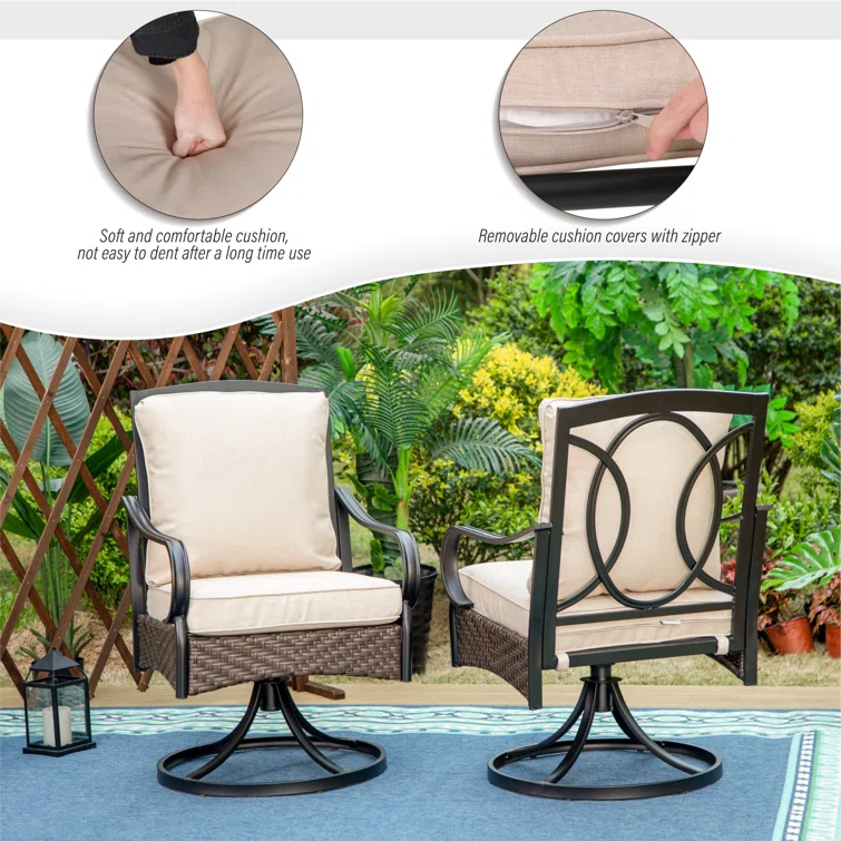 - Swivel & rocker motion: 360°swivel makes it convenient to chat with friends or have meals in any direction. 15°slightly rock design gives a smooth and comfortable experience.