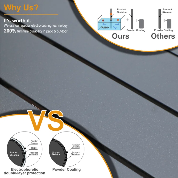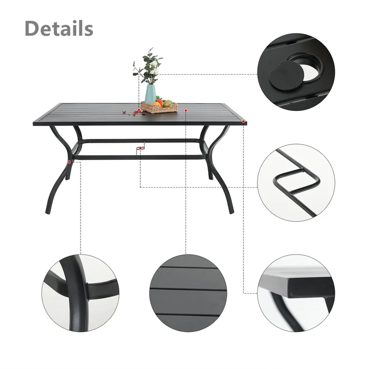 - Durable material: The patio dining chairs are made of a strong steel frame, the table is made of premium metal, and the umbrella is made of UV-resistant fabrics. It is durable to withstand snow, rain, wind, and high temperatures well for long time use.
