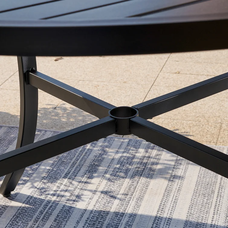 Why don't we turn that outdoor space into your own personal backyard dining retreat with this dining set? Ready to seat up to 4 family members comfortably, this outdoor furniture ensemble includes four c-spring armchairs and a dining table that's just right for planting drinks or yummy appetizers. Plus, the table has an optional umbrella hole so you can provide some shade when the sun is beating down in the afternoon