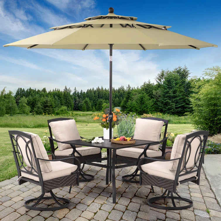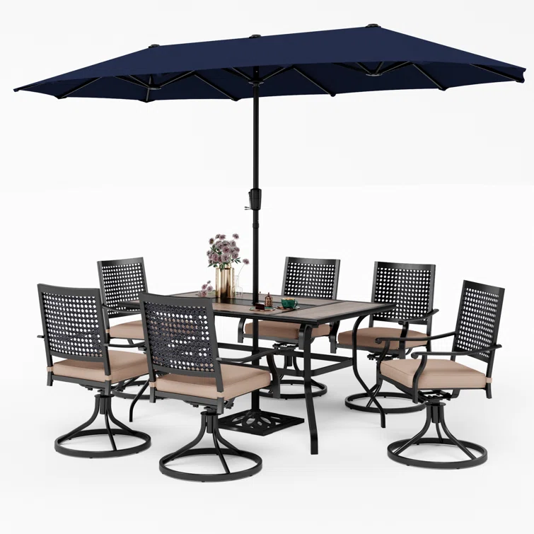 Bjartmar 6 - Person Outdoor Dining Set with Umbrella(Optional) & 6 Swivel Chairs