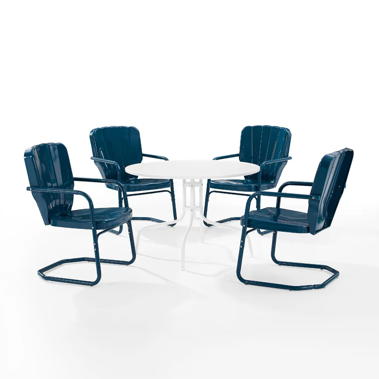 Burley Round 4 - Person 39 Long Powder Coated Steel Dining Set