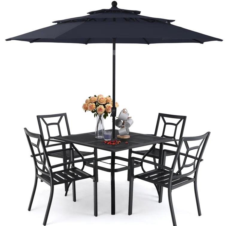Alyah 4 - Person Outdoor Dining Set With Umbrella