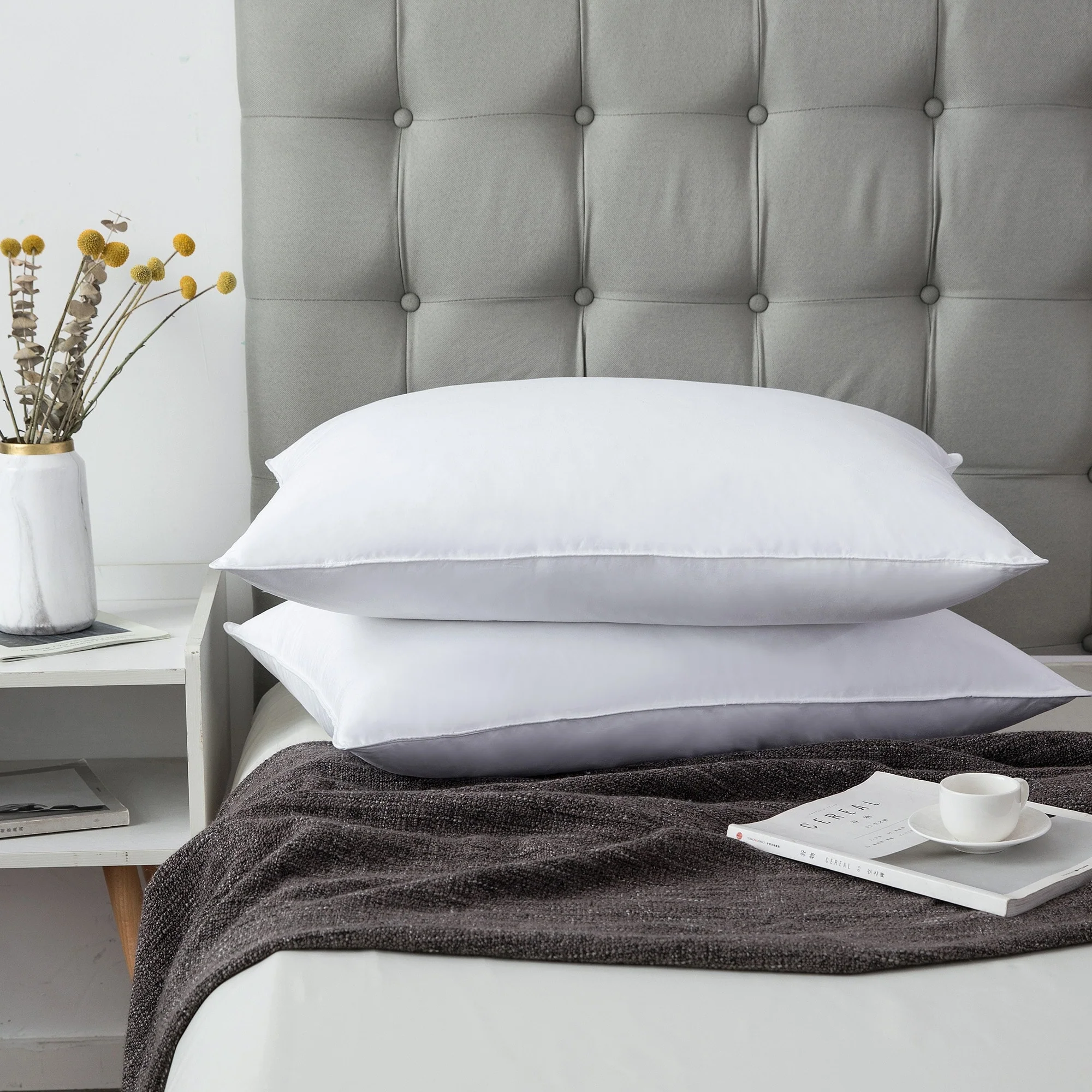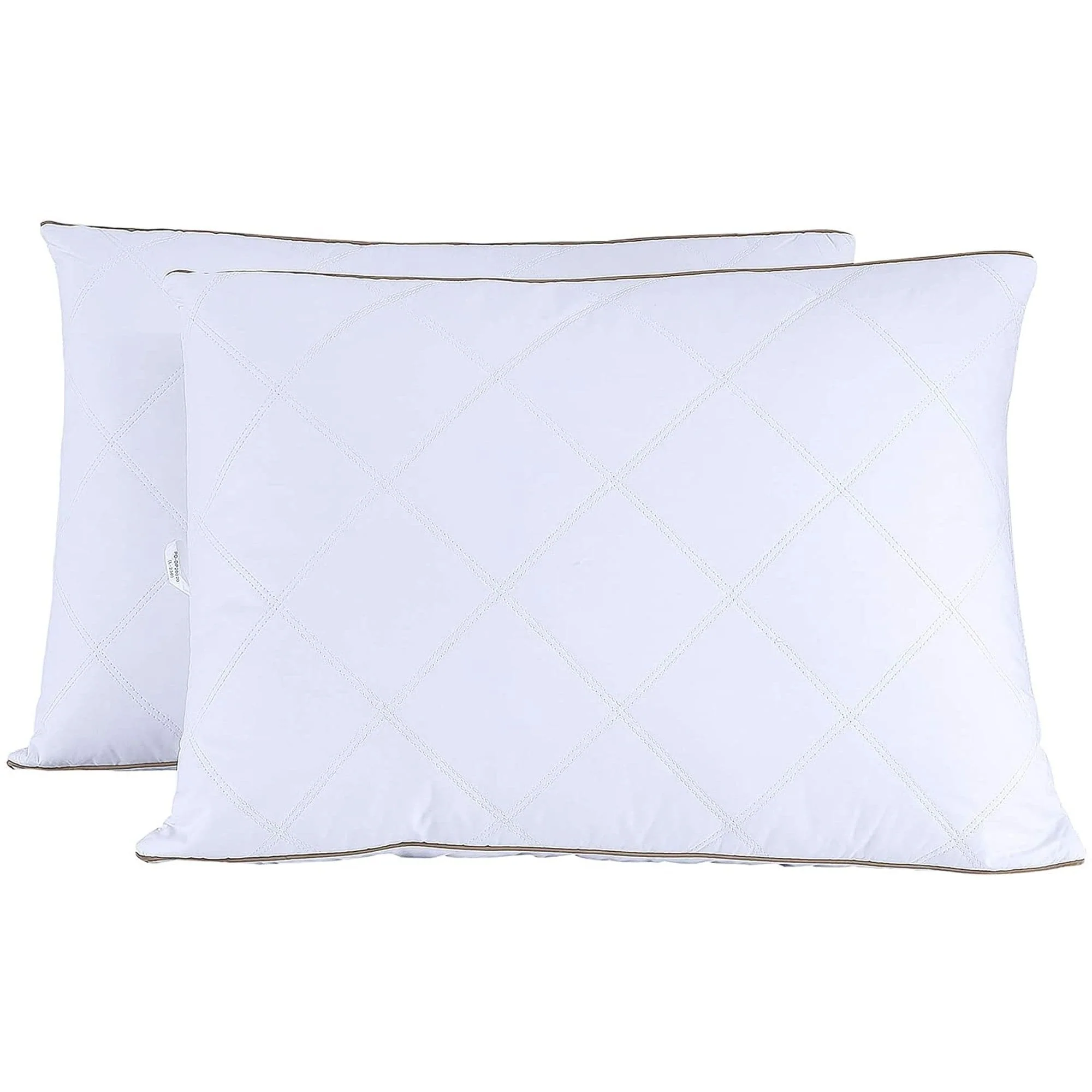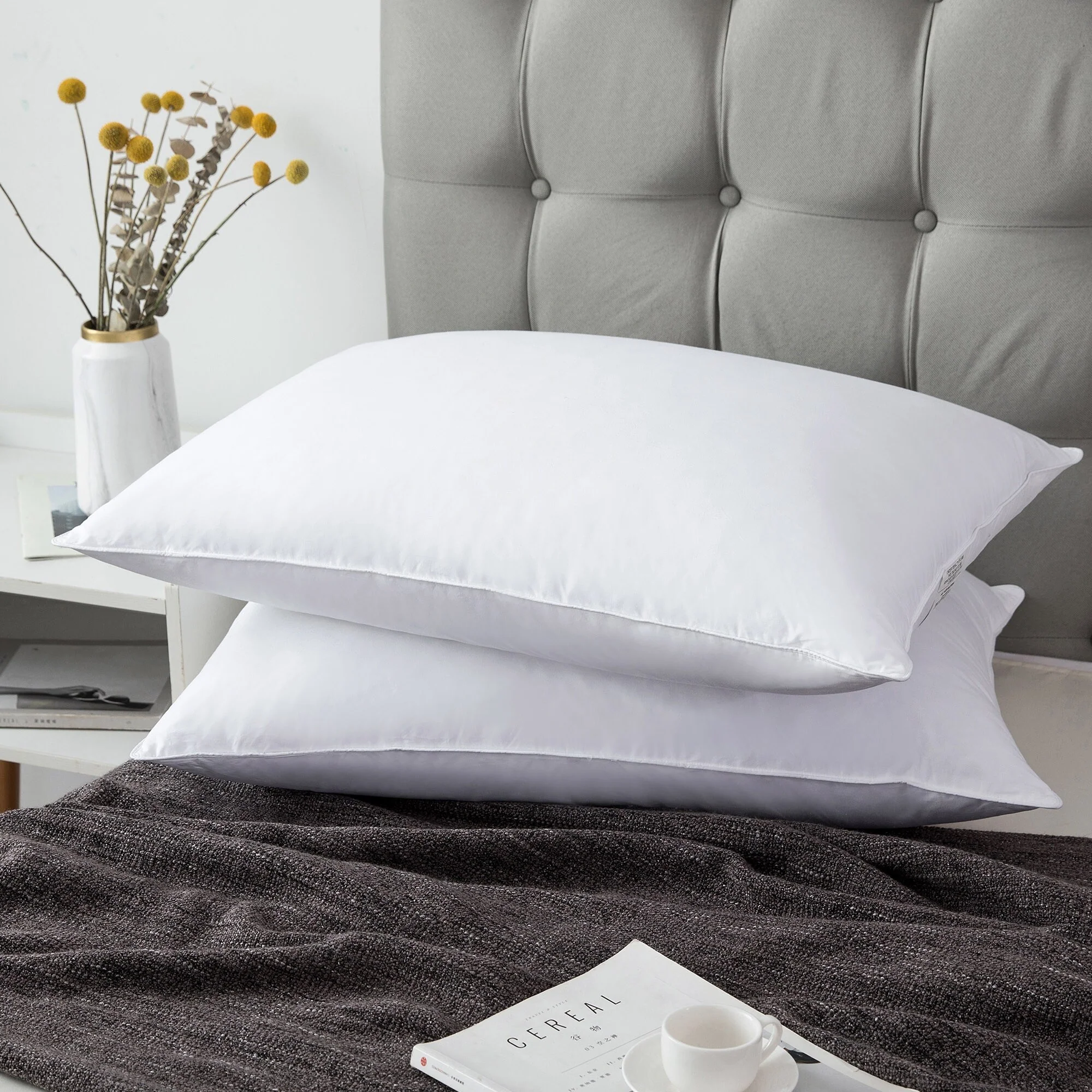 Thick yet plush, these down feather pillows are so comfortable that you will fall asleep quicker and have a sweet dream. Try our pillows and get great rest that you deserve. 100% cotton shell is soft to touch and a mix of goose feather and goose down create a dreamy fill that supports your head, neck, and shoulders in luxury while you sleep. Try this white goose feathers and down pillow, as it will help you sleep more comfortably every night. Covered with a 233 thread count 100% cotton shell, filled with an ideal mix of down and feathers, it is a dreamy pillow that supports your head and neck gently, creating downy softness for a perfect night's sleep. Especially ideal for a side or back sleepers like you. Sleep comfortably tonight with your new pillow.