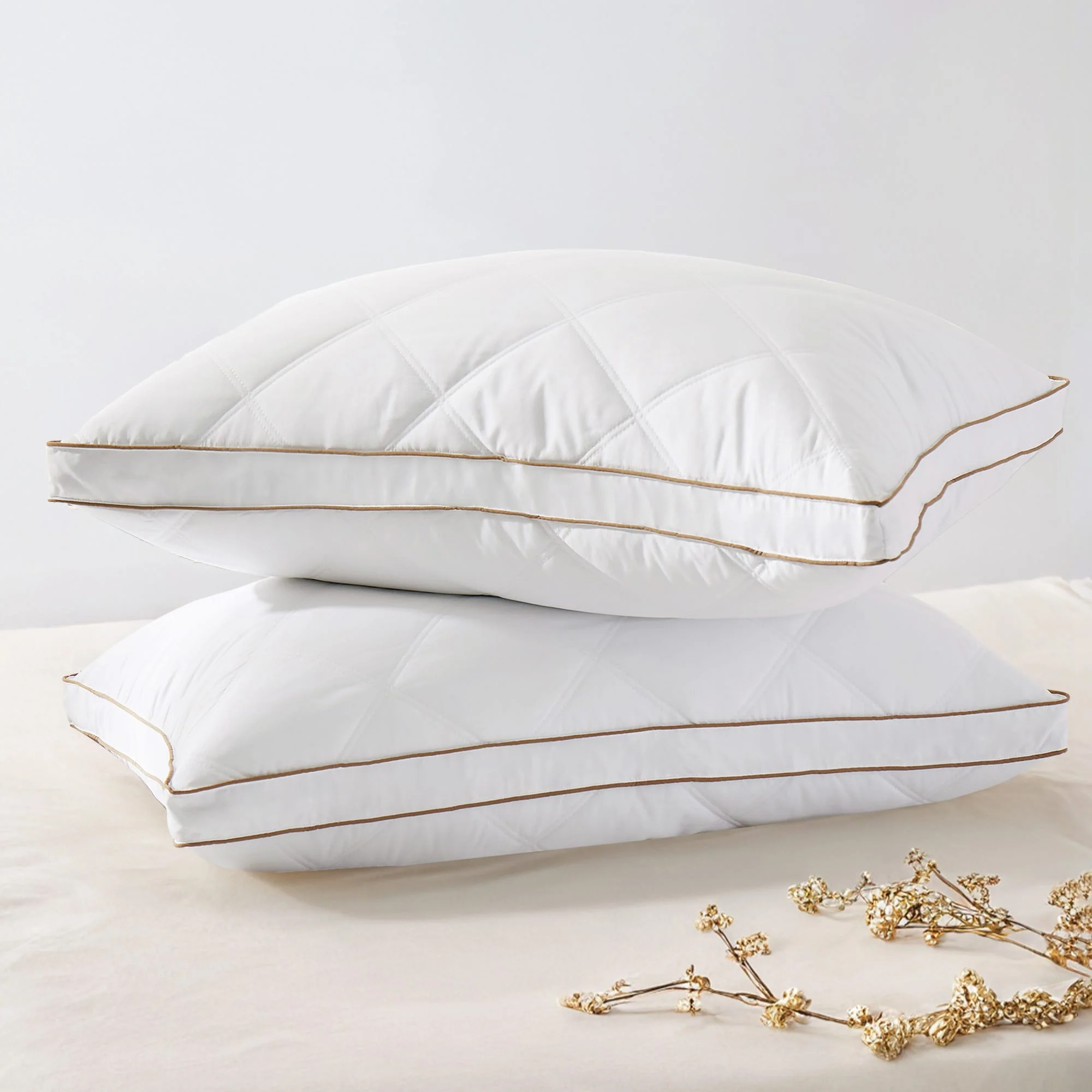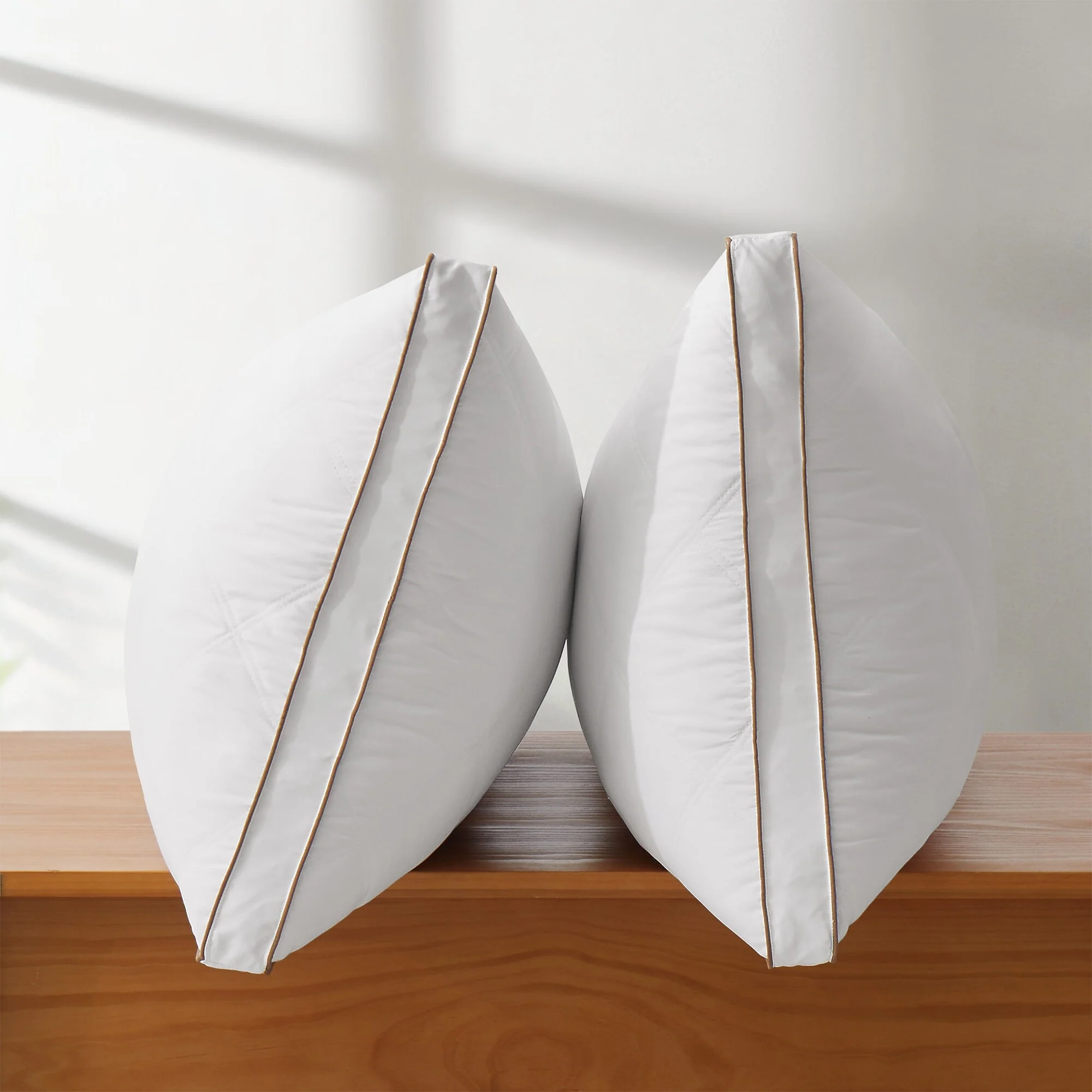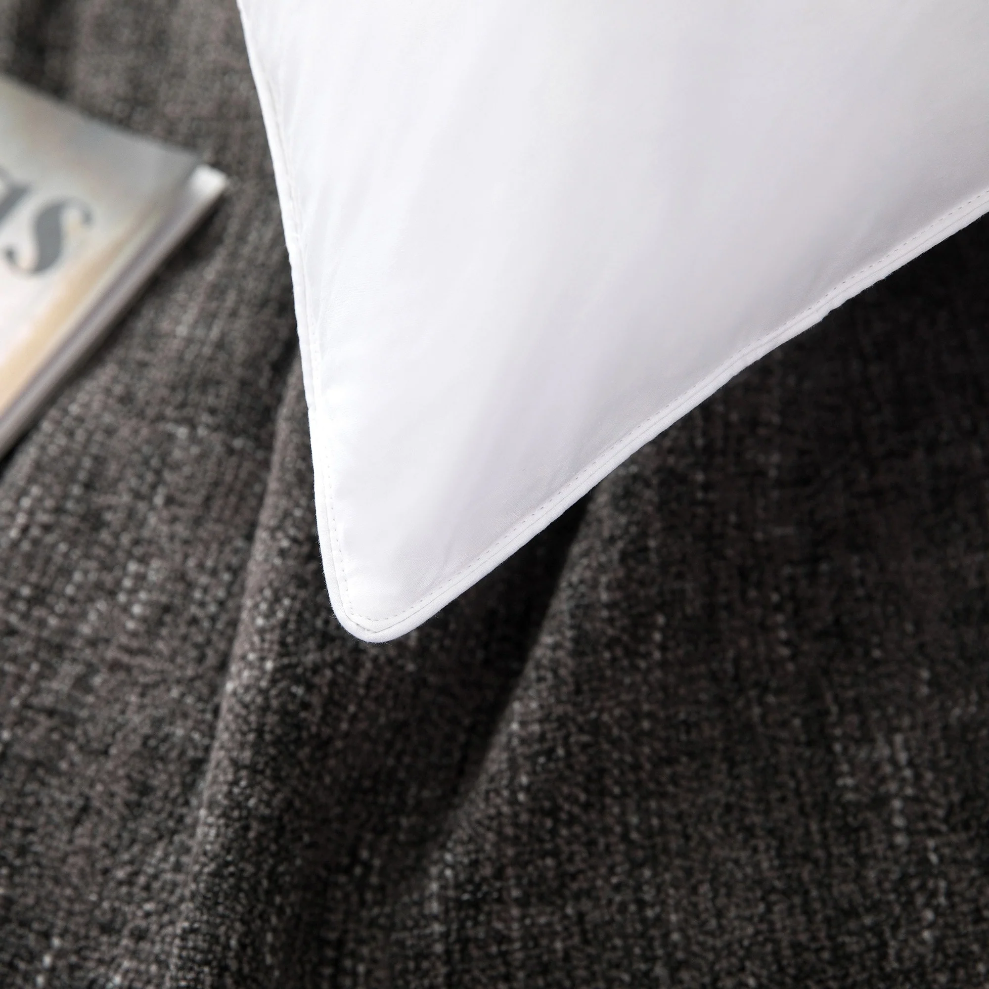 Thick yet plush, these down feather pillows are so comfortable that you will fall asleep quicker and have a sweet dream. Try our pillows and get great rest that you deserve. 100% cotton shell is soft to touch and a mix of goose feather and goose down create a dreamy fill that supports your head, neck, and shoulders in luxury while you sleep. Try this white goose feathers and down pillow, as it will help you sleep more comfortably every night. Covered with a 233 thread count 100% cotton shell, filled with an ideal mix of down and feathers, it is a dreamy pillow that supports your head and neck gently, creating downy softness for a perfect night's sleep. Especially ideal for a side or back sleepers like you. Sleep comfortably tonight with your new pillow.