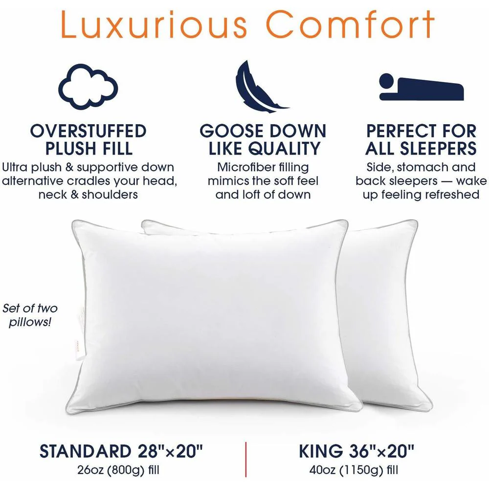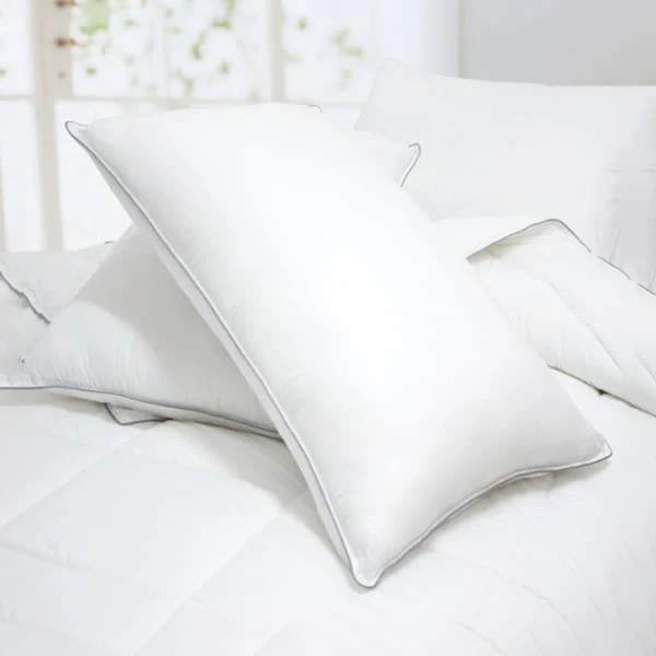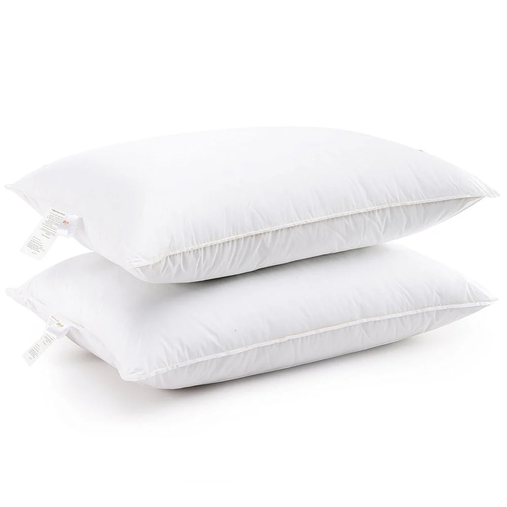 Find rest and respite with the perfect design of these down alternative pillows. The durable cotton exterior offers breathability, and the polyester microfiber fill is soft to the touch. These machine-washable pillows have a medium-firm rating, providing support for your neck, shoulders, and head.