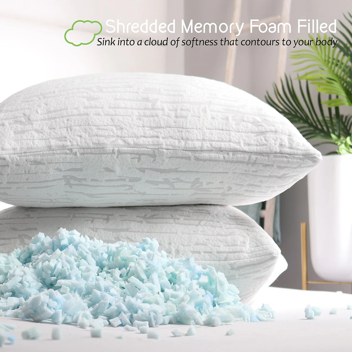 Enjoy comfortable neck support and a restful night's sleep with the shredded memory foam fill of this Clara Clark pillow. Featuring rayon and microfiber fabric, this soft pillow is machine washable for easy care. A corded edge adds extra strength to the seams while highlighting the pillow's silhouette.