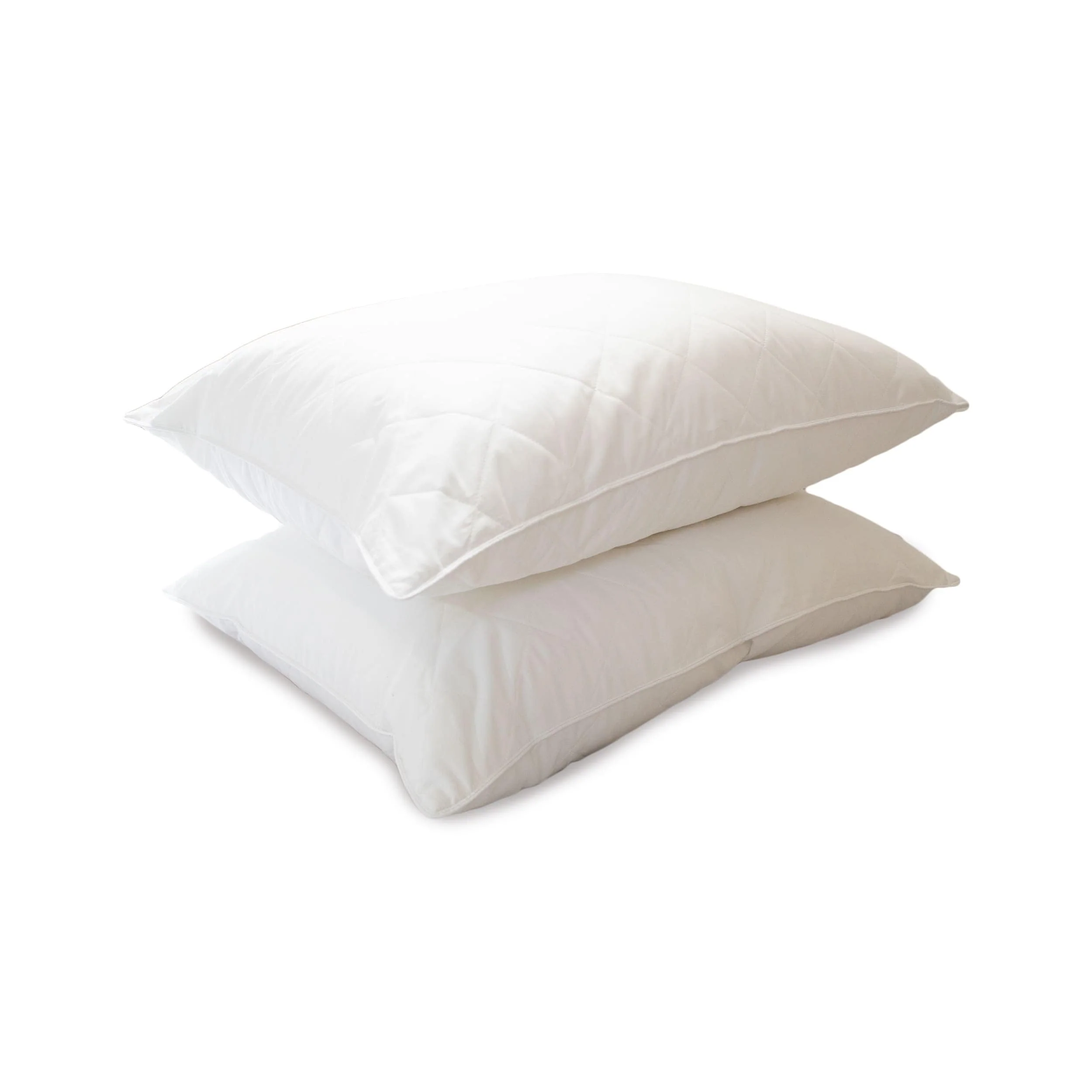 Get a good night's sleep with the Eddie Bauer 2 Pack of LiquiLoft 230 TC Quilted Microfiber Pillows. These pillows are perfect for all night, toss and turn sleepers, offering squishy and moldable down alternative comfort. The quilted microfiber fabric with a diamond design pattern encases the exclusive LiquiLoft™ liqui-gel fiber that conforms to your every move, ensuring continuous comfort all night long. These medium density pillows are great for side, back, or toss and turn sleepers. Plus, they are easy to care for with machine wash and dry capabilities. Each pack is sold in pairs and assembled in the USA of imported materials.