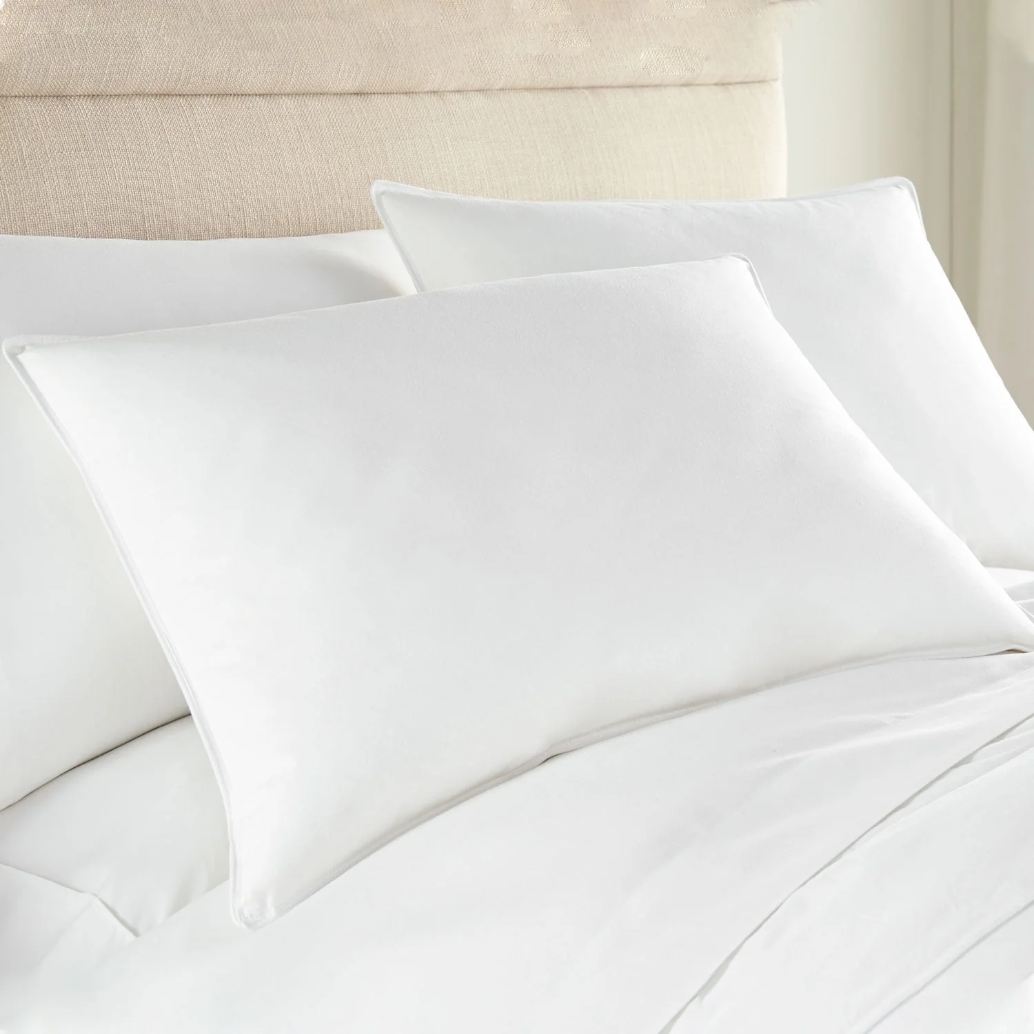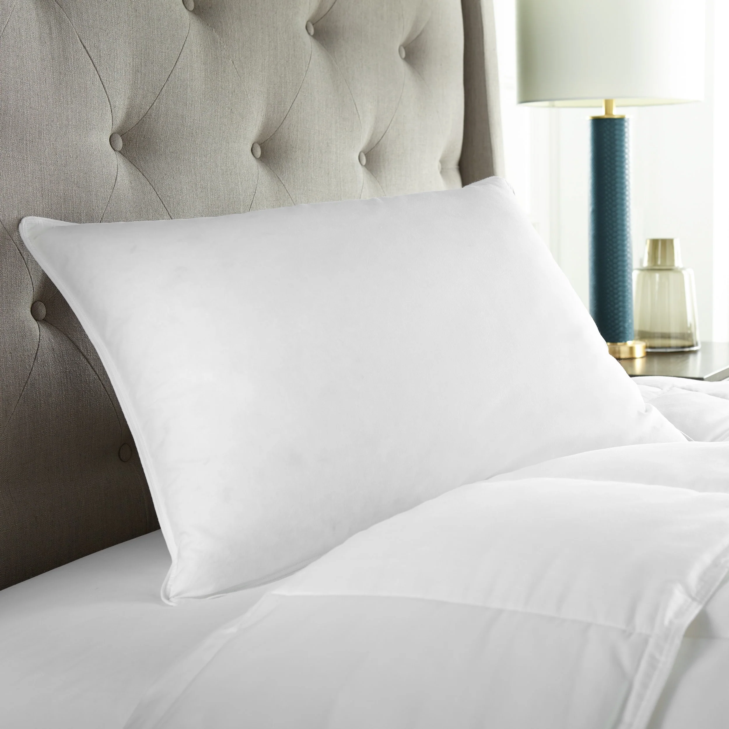 Bring the luxury resort home to your with the plush and posh decadence of this pillow. Upholstered in buttery soft cotton sateen fabric, this cozy medium density pillow is filled with a duck down and feather blend for optimal support. The filling is hypoallergenic and suitable for machine washing and drying for your convenience.