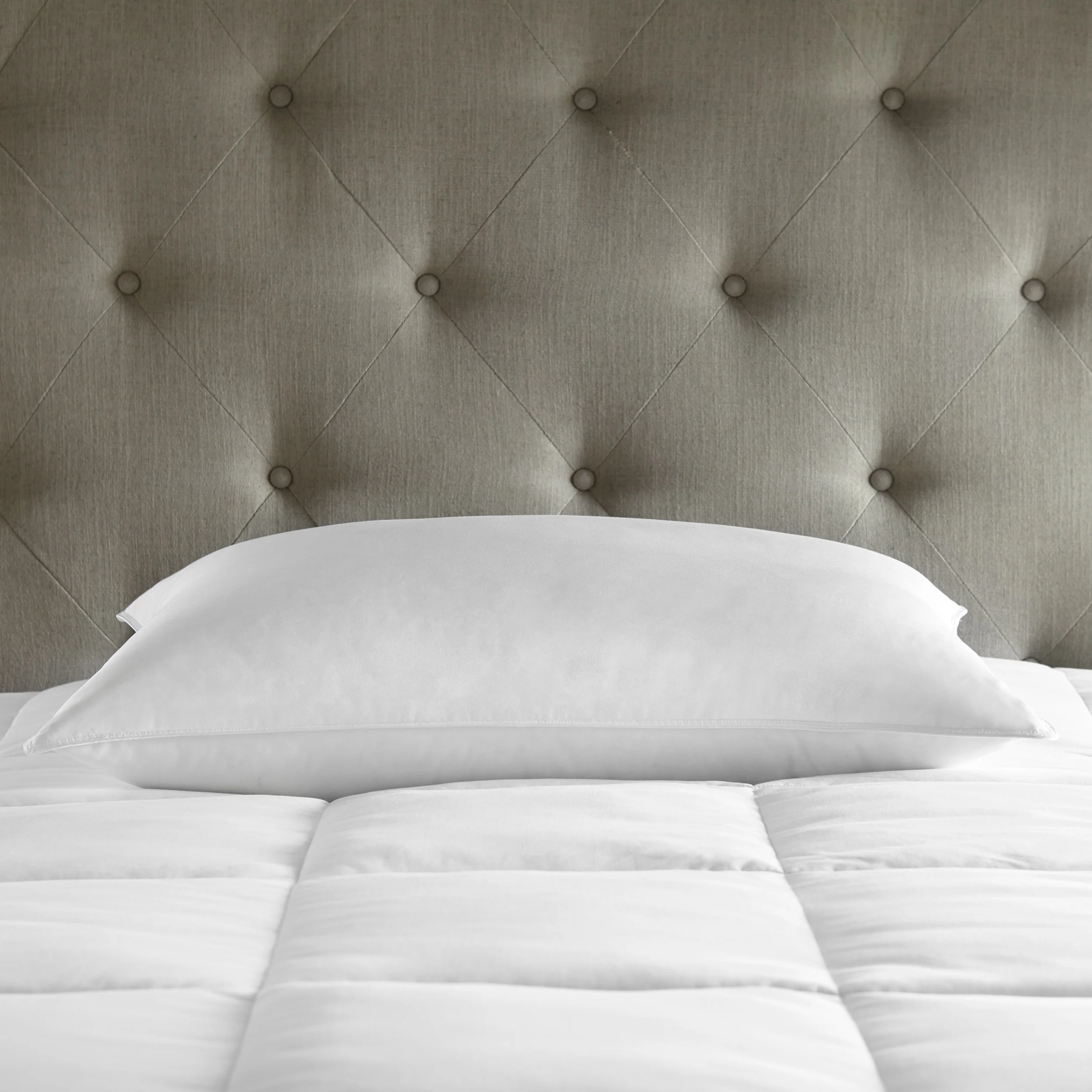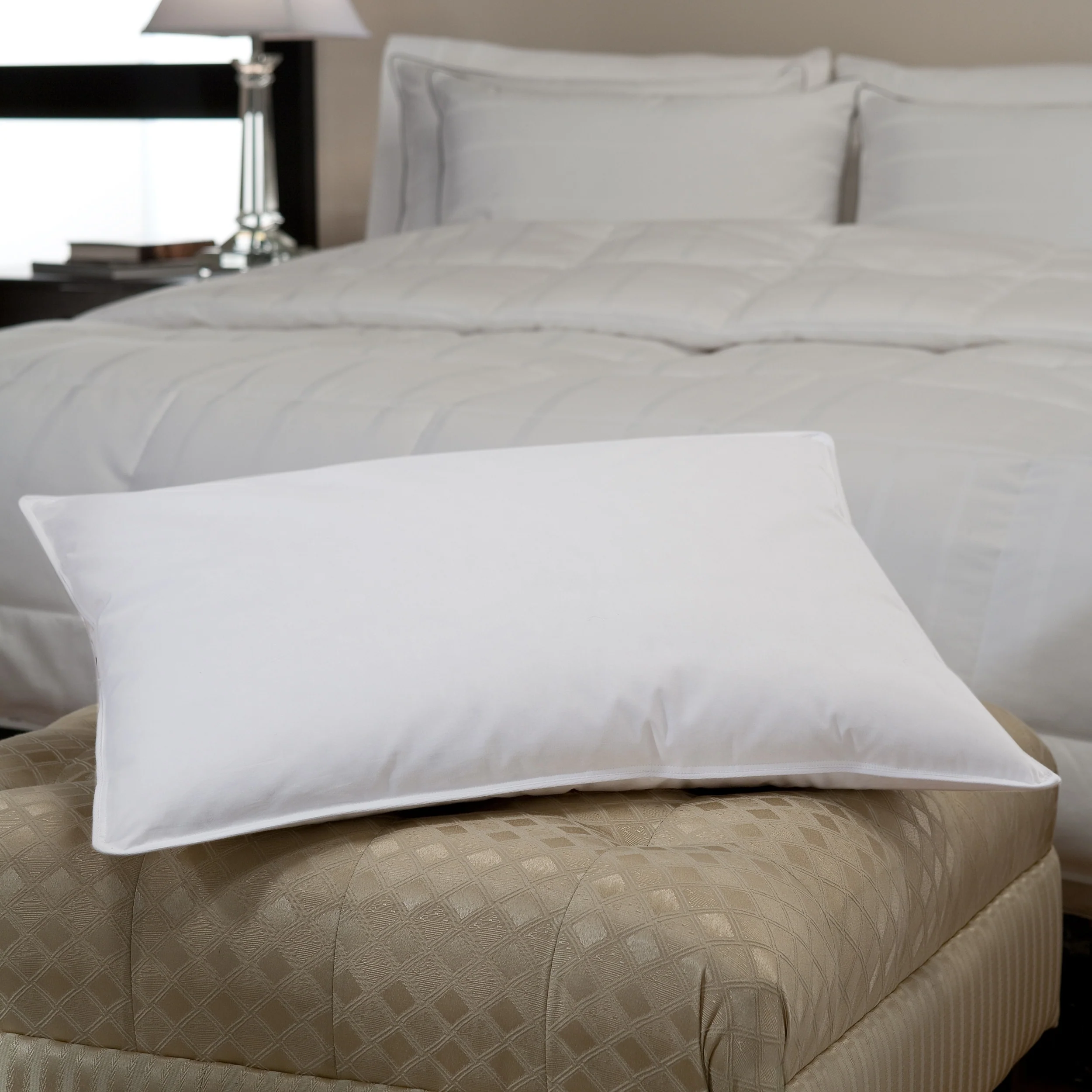 Add comfort and luxury to your sleeping experience with this hotel style pillow. The chamber pillow features a blend of white goose down and goose feather fill for a fluffy and soft feel that is ideal for side sleepers. The cambric-weave cotton lining is breathable, and the self-piped seams help to maintain the pillow shape.