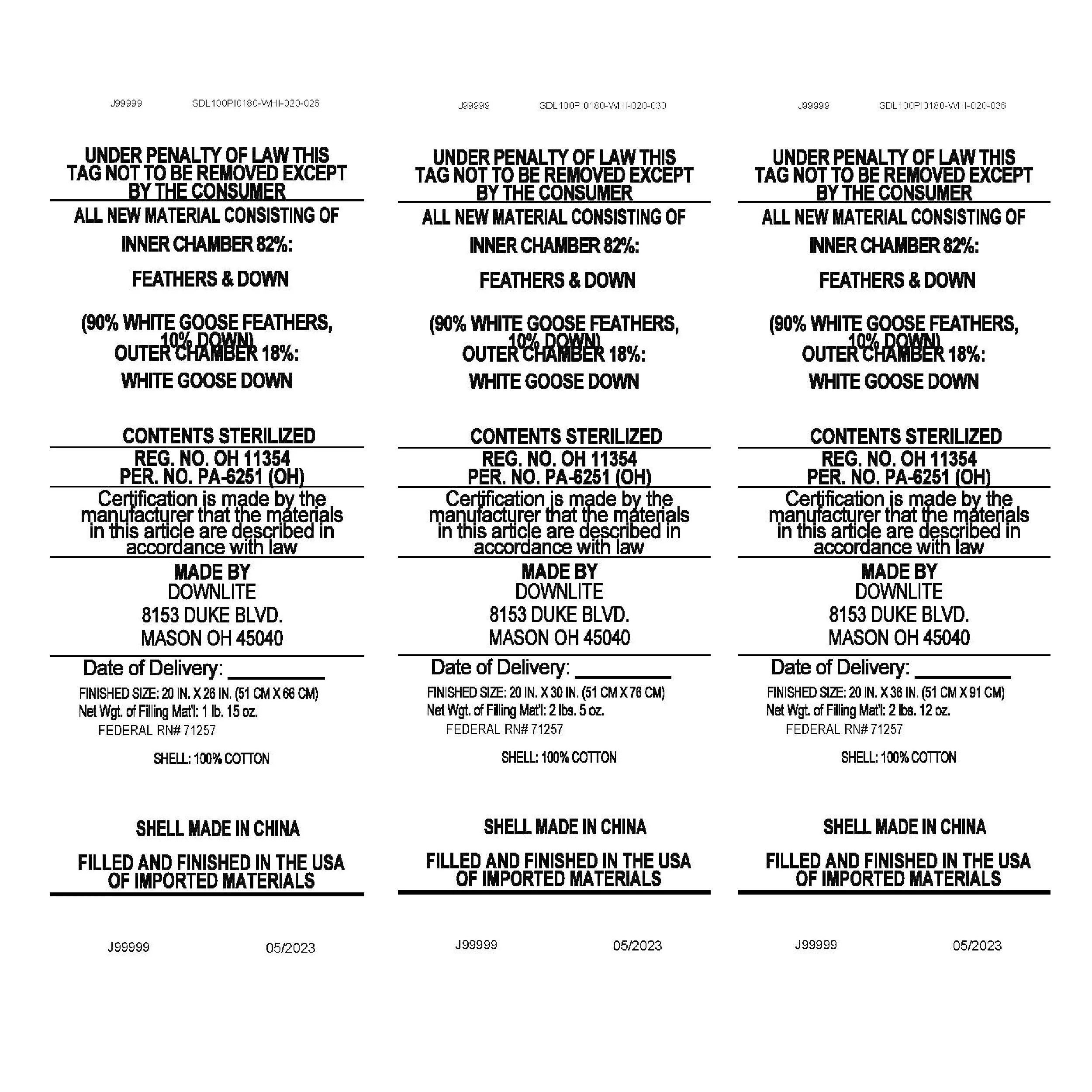 - Filled with 10/90 blend of white goose down and white goose feathers