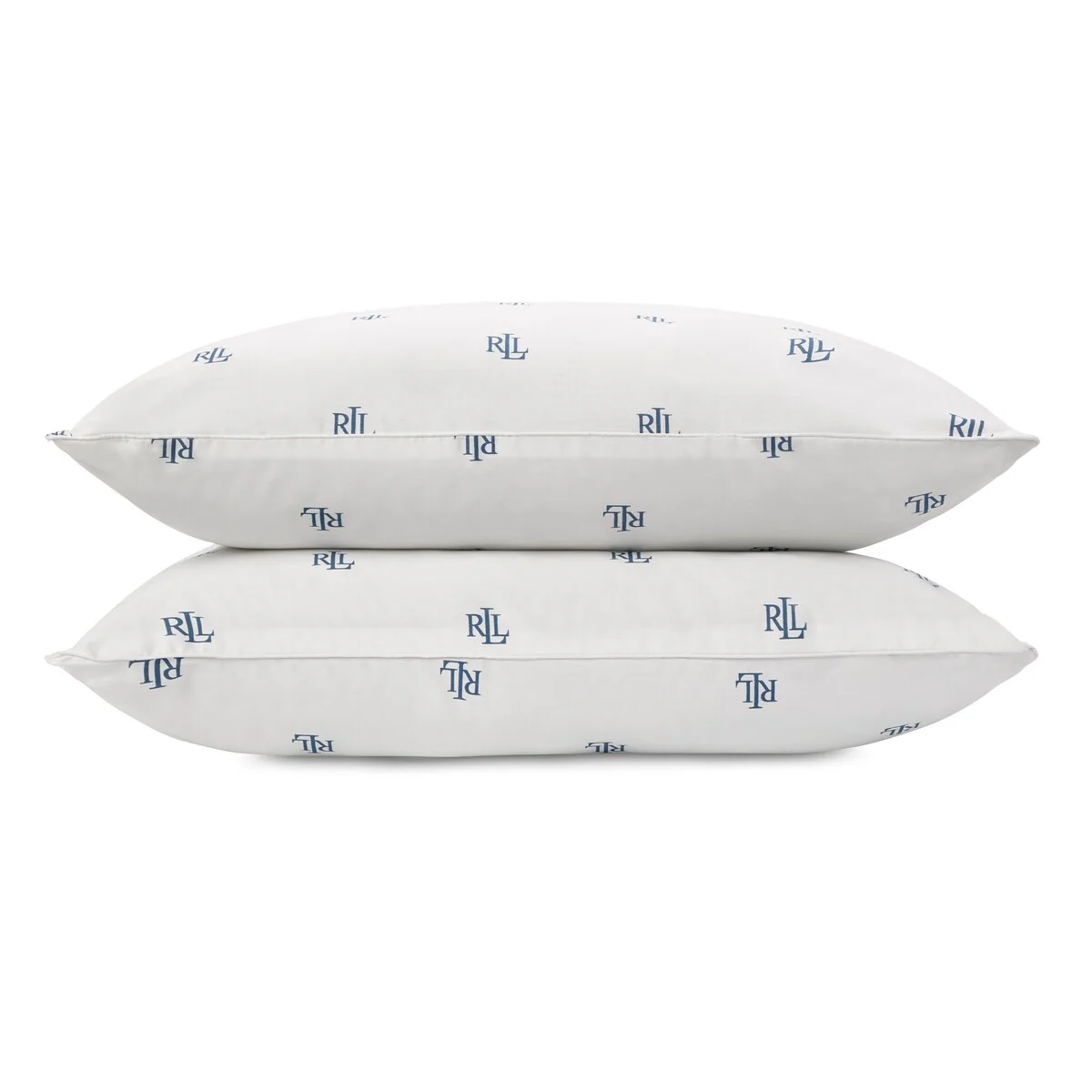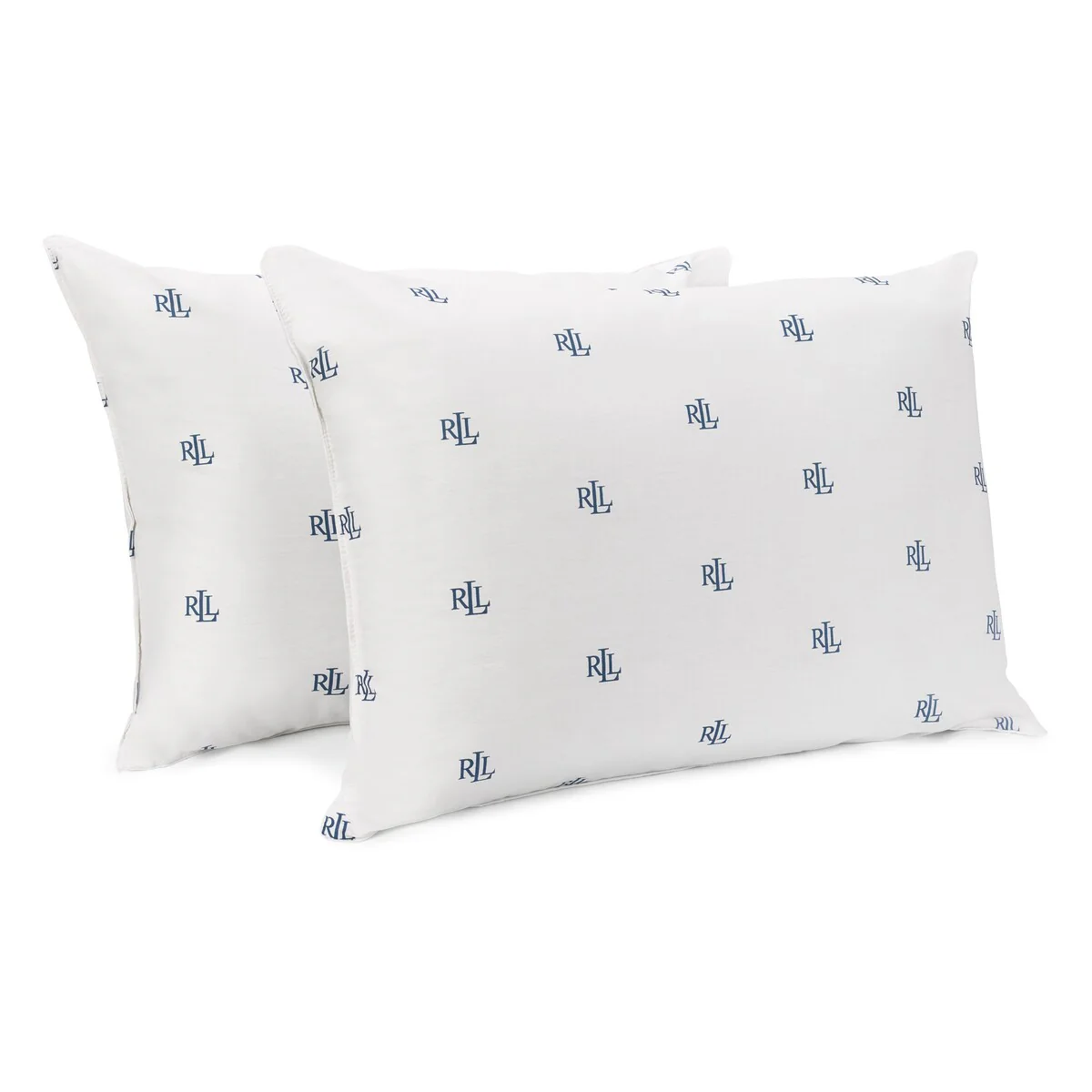 The Lauren Ralph Lauren Logo 2 pack of Bed Pillows, in White, features a colorful logo print on 100% cotton fabric. They are filled with hypoallergenic fiber for a comfortable sleep. These extra firm density pillows are ideal for back and side sleepers and they're easy to keep fresh and clean. Simply machine wash cold on the gentle cycle. Tumble dry on low heat. Remove promptly and fluff after drying. Do not iron. Available in both Standard/Queen (Jumbo), 20' x 28', and King, 20' x 36', size pillows.