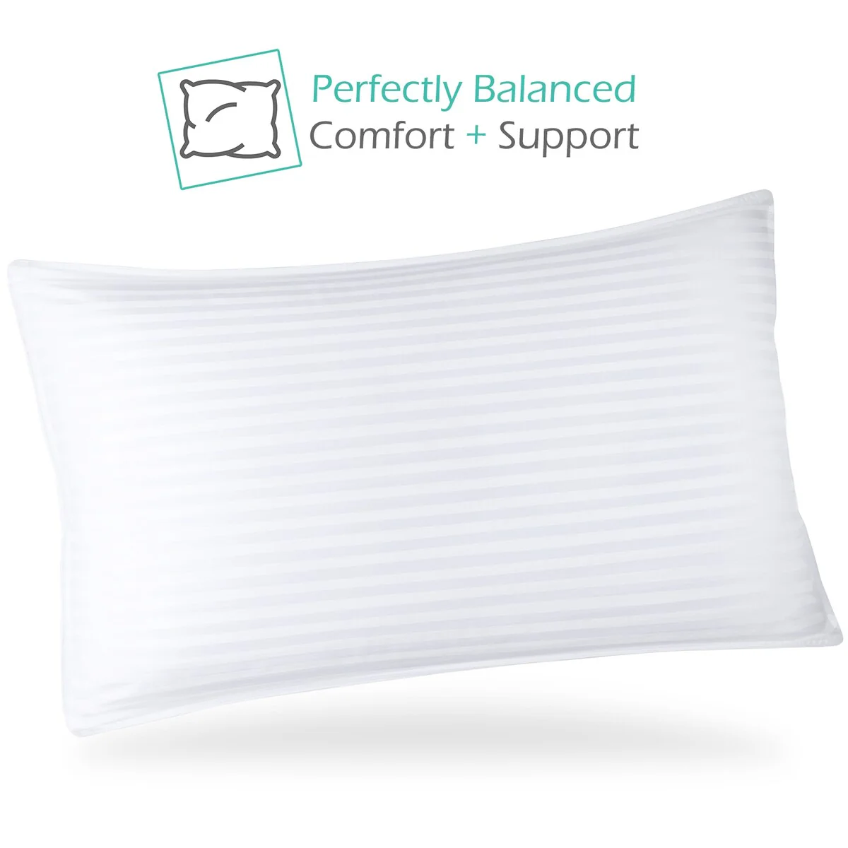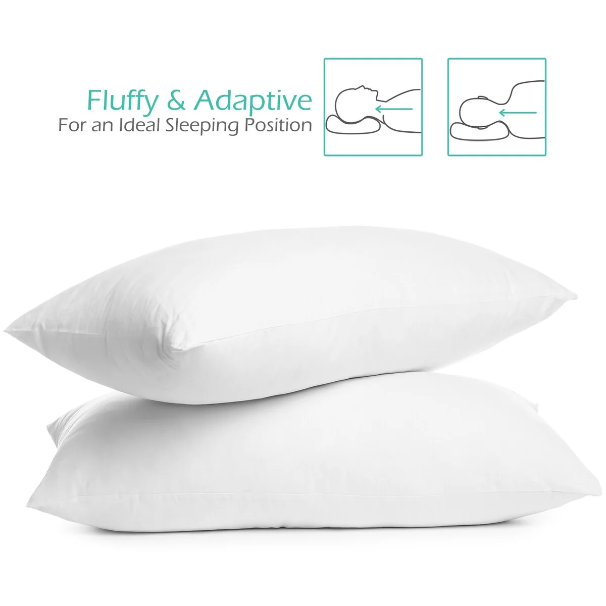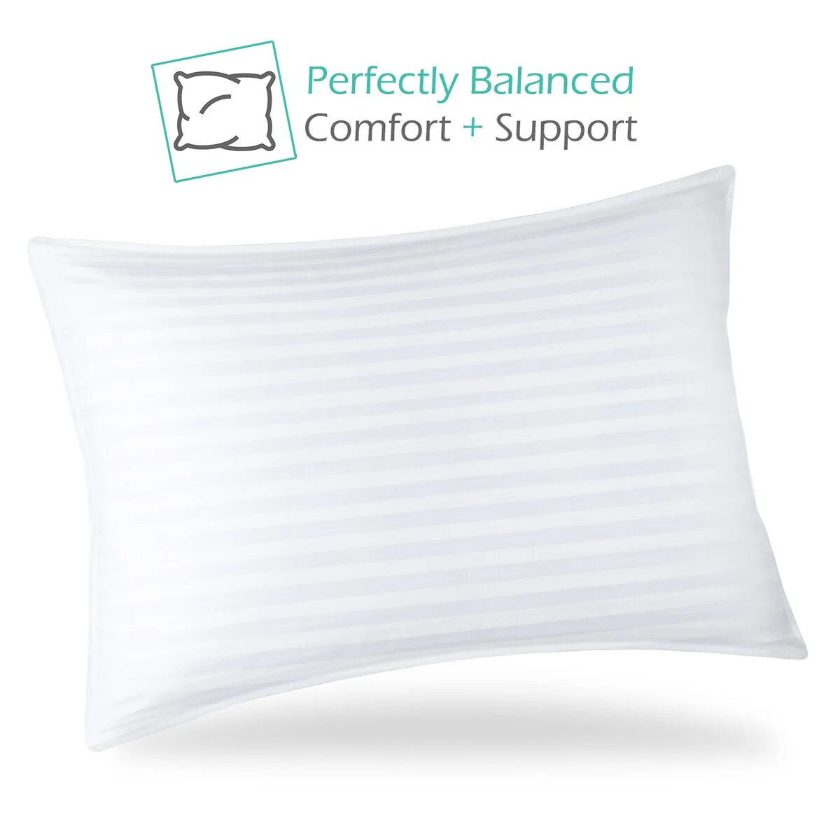 Feel luxurious comfort like never before with this premium plush down alternative bed pillow. The pillow cover is made of 100-percent cotton fabric material to stay soft, breathable, and dry. The perfect balance between fluffy and firmness will create a serene sleeping experience, leaving you feeling refreshed and rejuvenated.