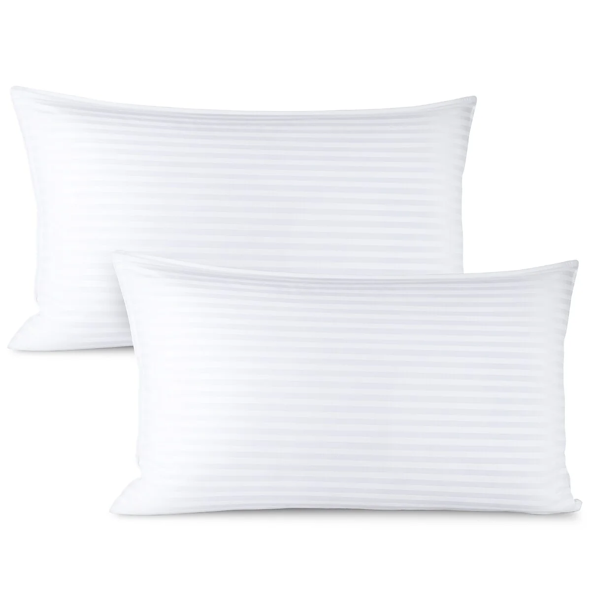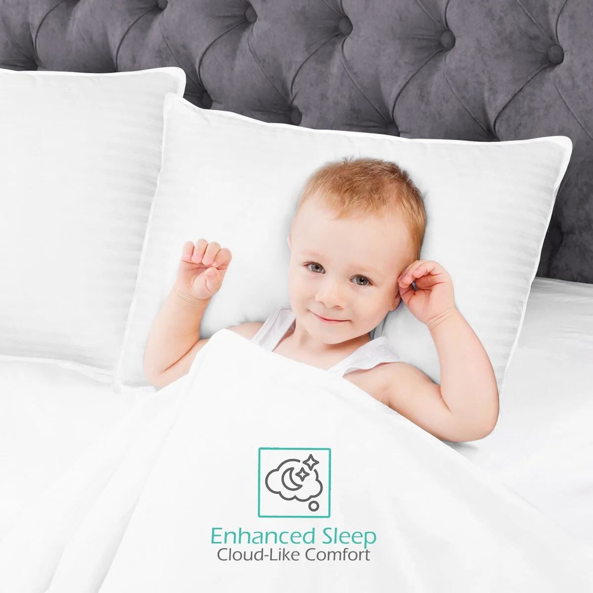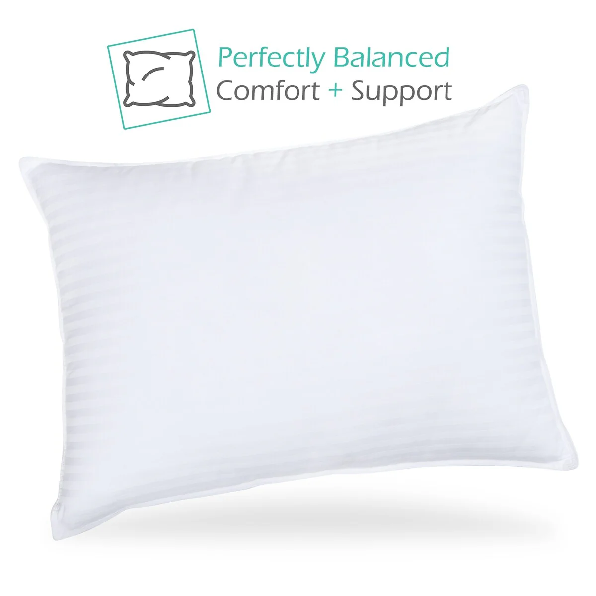 Feel luxurious comfort like never before with this premium plush down alternative bed pillow. The pillow cover is made of 100-percent cotton fabric material to stay soft, breathable, and dry. The perfect balance between fluffy and firmness will create a serene sleeping experience, leaving you feeling refreshed and rejuvenated.