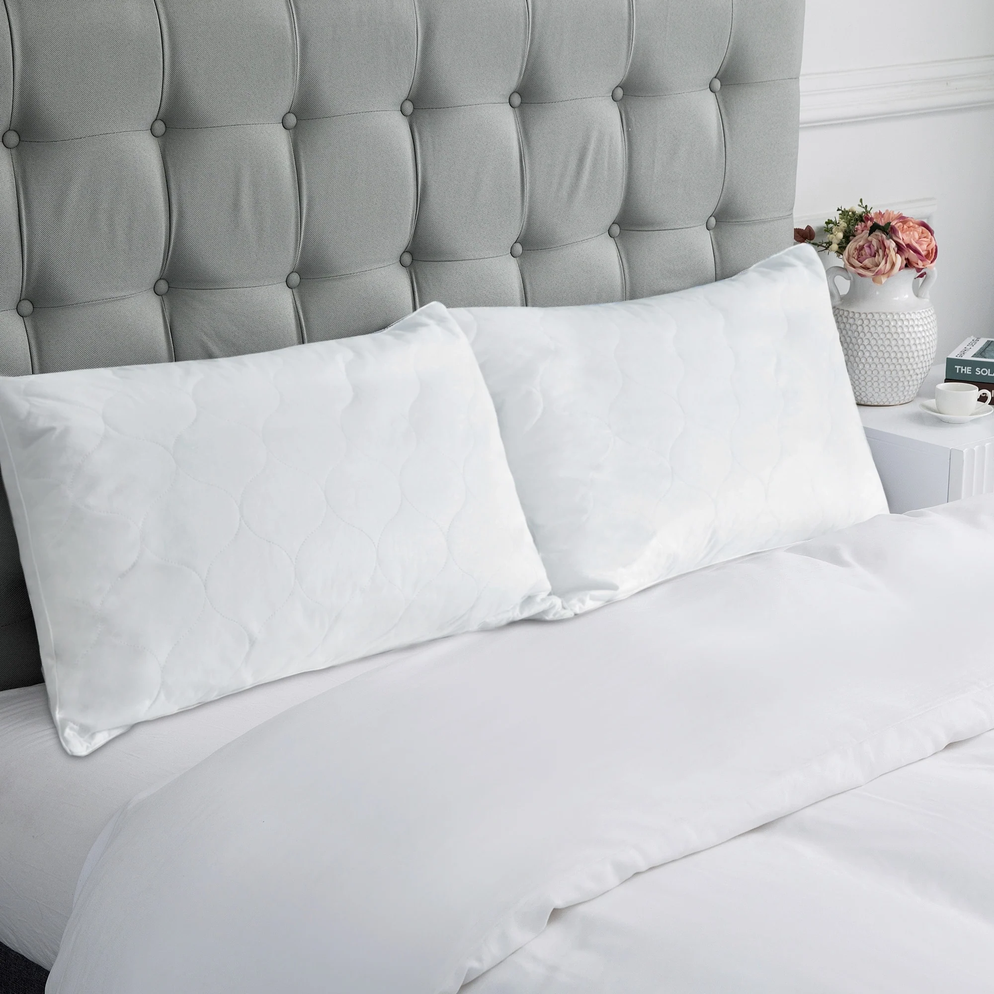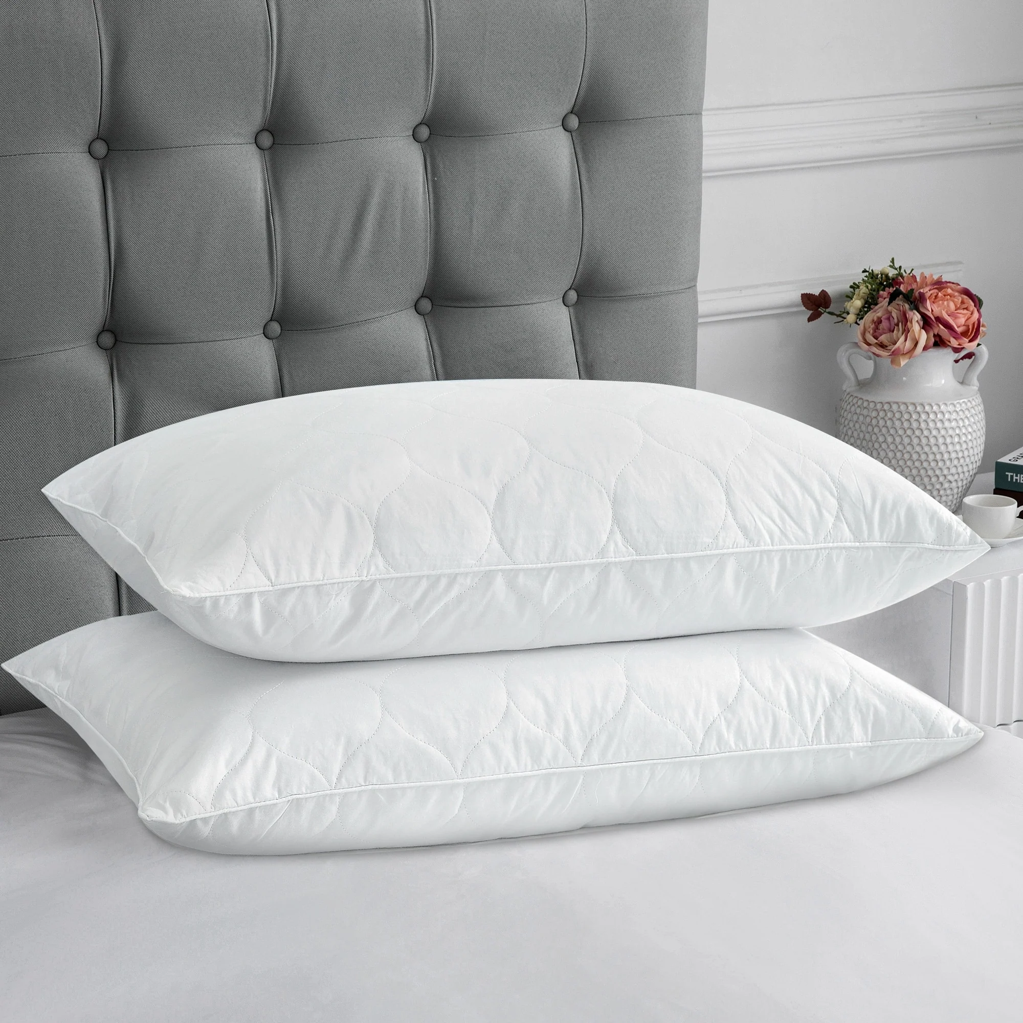 Enjoy a restful night sleep with this quality feather down pillow. 233 thread count 100% cotton cover is breathable and skin-friendly, quilted with elegant pattern, adding fashion elements to your bedroom. Premium filling of natural goose feather and down wraps your head and neck gently during the night sleeping, ideal for most sleepers, especially for side sleepers and back sleepers. Exquisite stitching makes the pillows more sturdy and the edge piping also prolong the service life of the pillows. Machine washable and tumble dry.