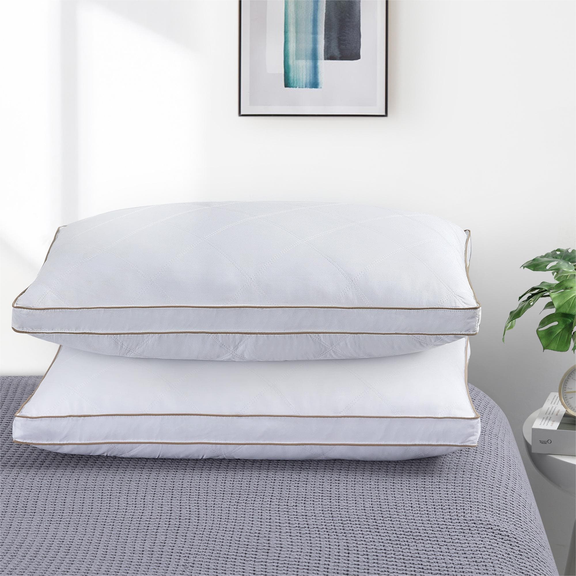 Try our high-quality pillow, designed to help you fall asleep comfortably and quickly each night, ensuring you sleep longer and wake up feeling refreshed and energized. Ideal for anyone seeking the ultimate in sleep comfort, this pillow provides excellent support for your neck, spine, and back. With a perfect balance of fluffiness and gentle support, it features a medium density and is filled with a premium blend of feathers and polyester to cradle your head and neck throughout the night. The exquisite needle stitching enhances durability, ensuring the pillow remains supportive and luxurious for years to come. It's the perfect choice for a restful, rejuvenating sleep experience.