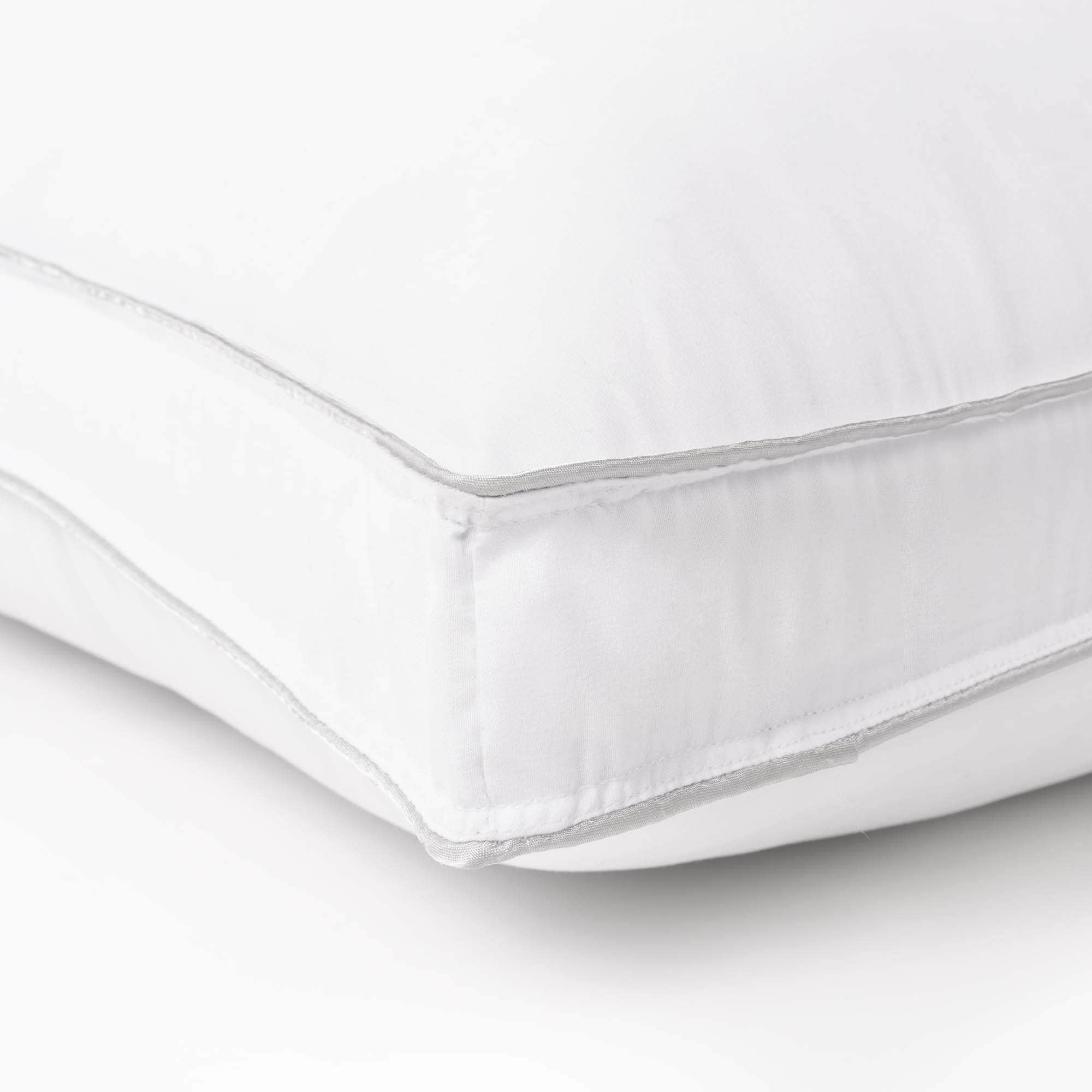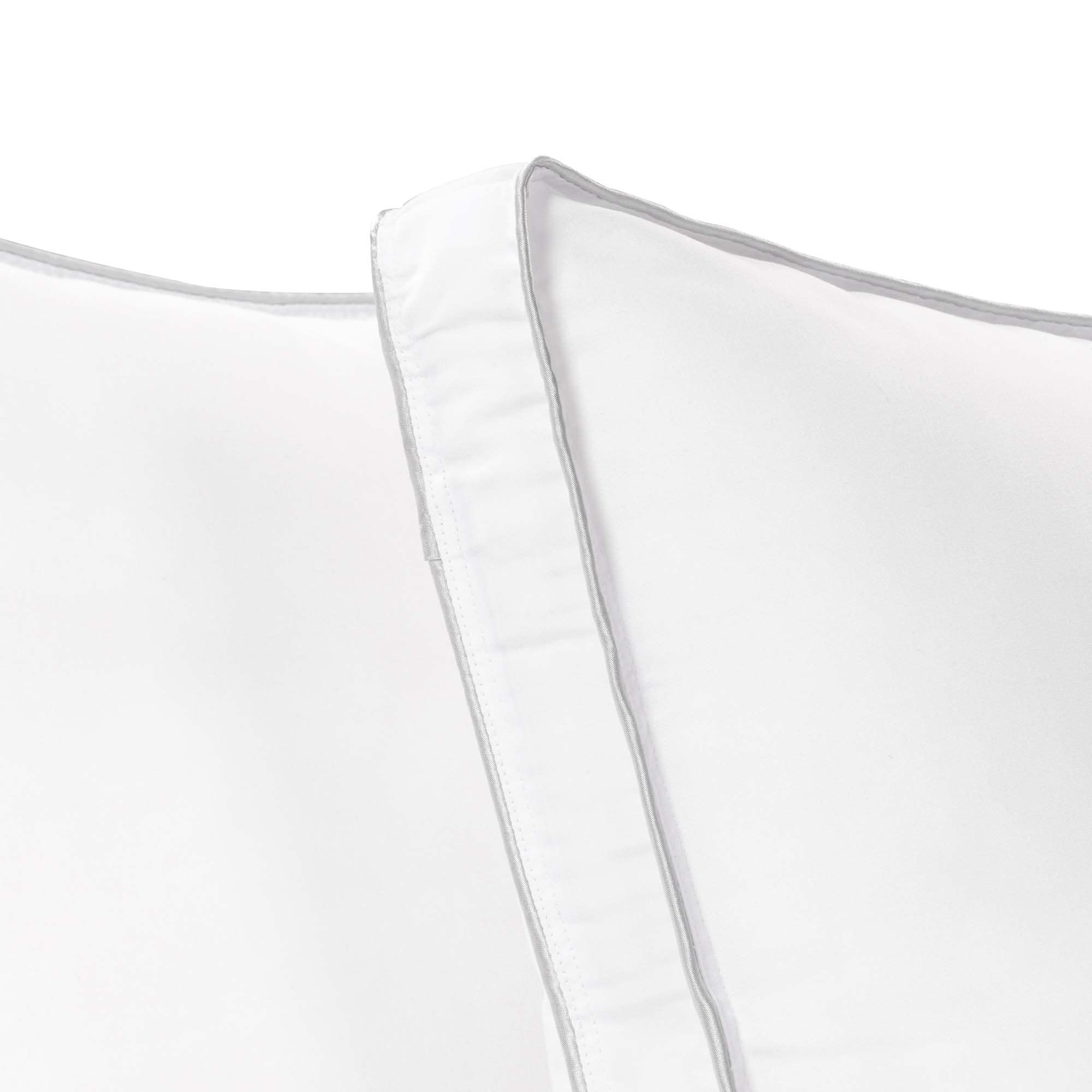 Transform your bedroom into a haven of comfort with the Superior Medium Density Pillows with Gusset. Each pillow features an expanded 1.5' side panel gusset edged with sophisticated grey piping, providing enhanced head and neck support. Filled with down alternative polyester and encased in soft, brushed microfiber, these pillows are gentle on your skin and plush enough to offer exceptional support for your head, neck, or back. Available in Standard, King, and Queen sizes, this versatile pillow set adds a luxurious touch to any bedroom.