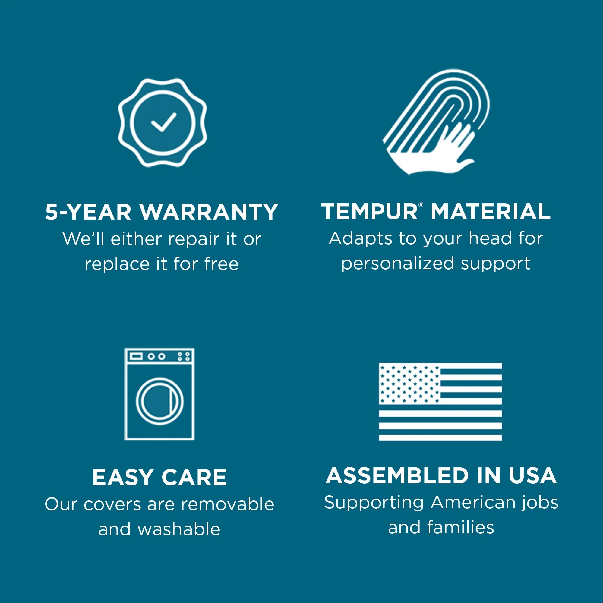 The TEMPUR-Cloud Dual Cooling Gel Pillow offers a refreshing sleep experience in any sleep position. Get adaptive support from exclusive TEMPUR material, and stay cooler throughout the night with layers of cooling gel on both sides. Keep cool and comfortable—and wake up refreshed—with the unique support and medium-firm feel of this lightweight memory foam cooling pillow. Includes washable cover to keep your pillow fresh, and a 5-year limited warranty.