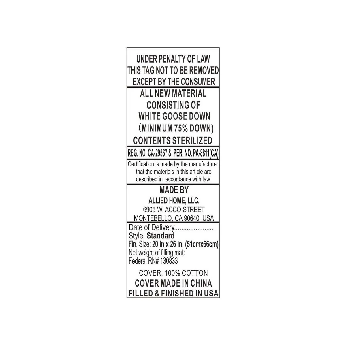Beautifully crafted and thoughtfully designed, this down pillow is sure to add the most luxuriously soft yet supportive layer to your bed. Made from a soft, tightly woven down-proof 233 Thread Count Cotton shell and filled with White Goose Down that is certified by the Responsible Down Standard (RDS). Perfect for all sleep positions, this pillow will provide adjustable support to ensure you sleep soundly and wake up feeling rested.