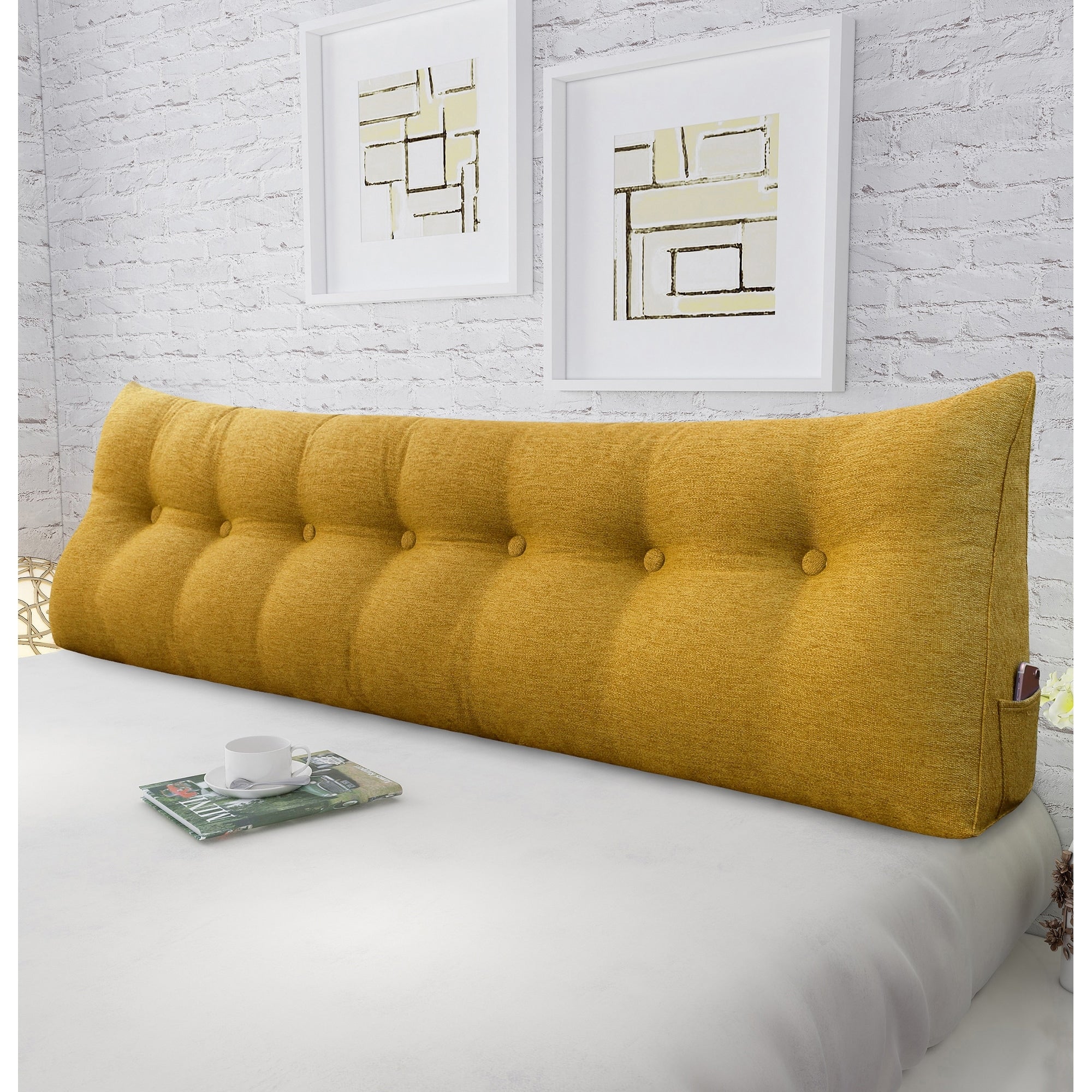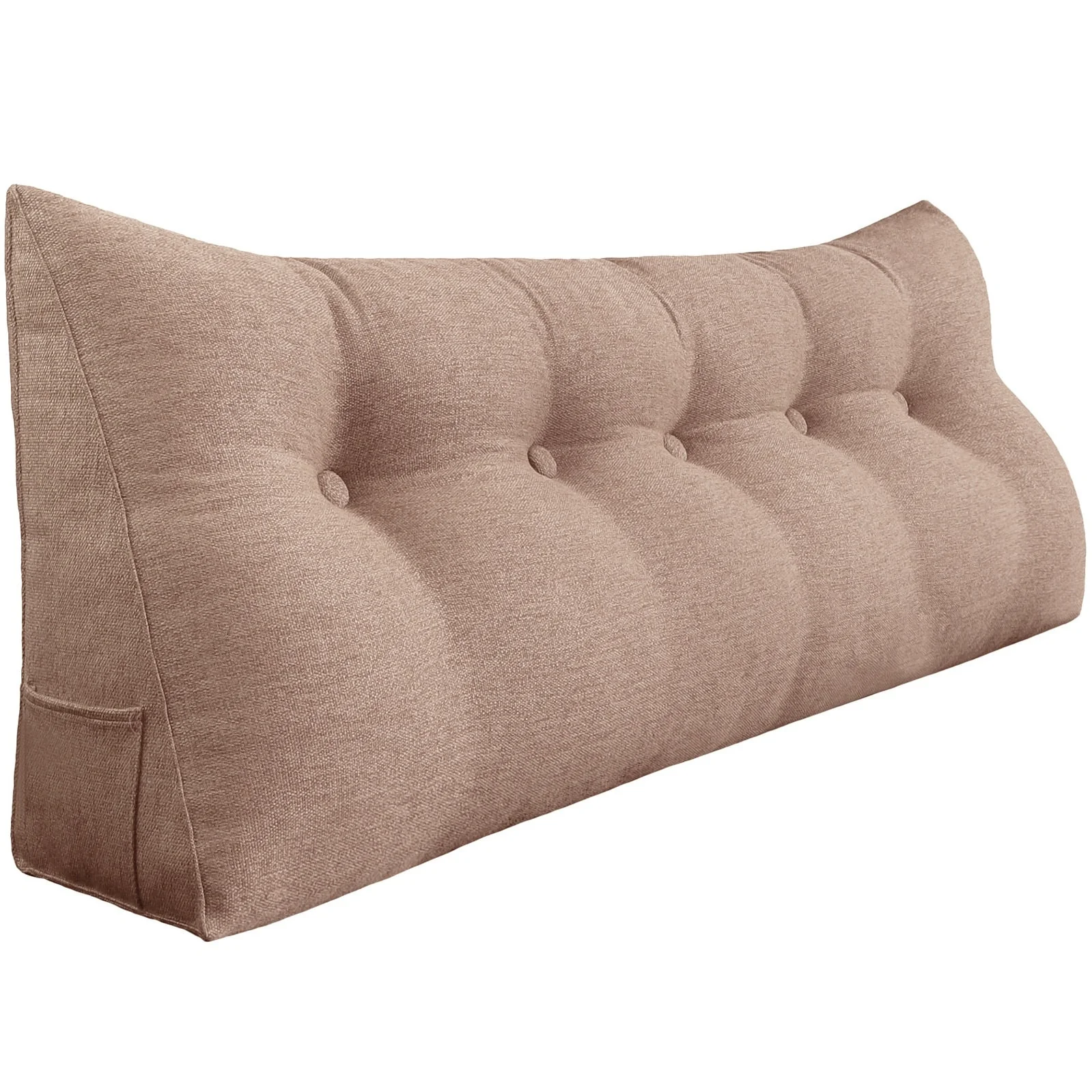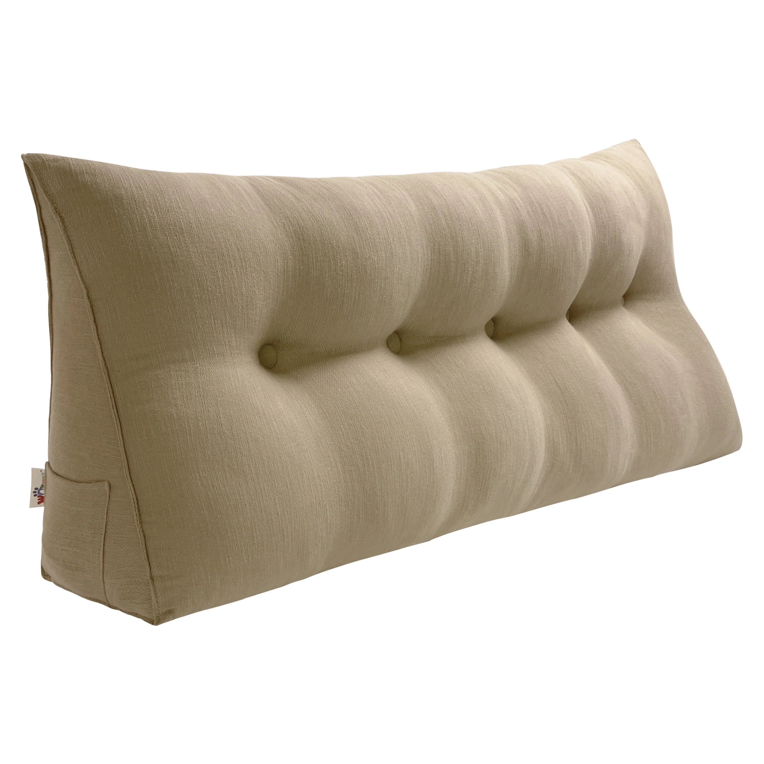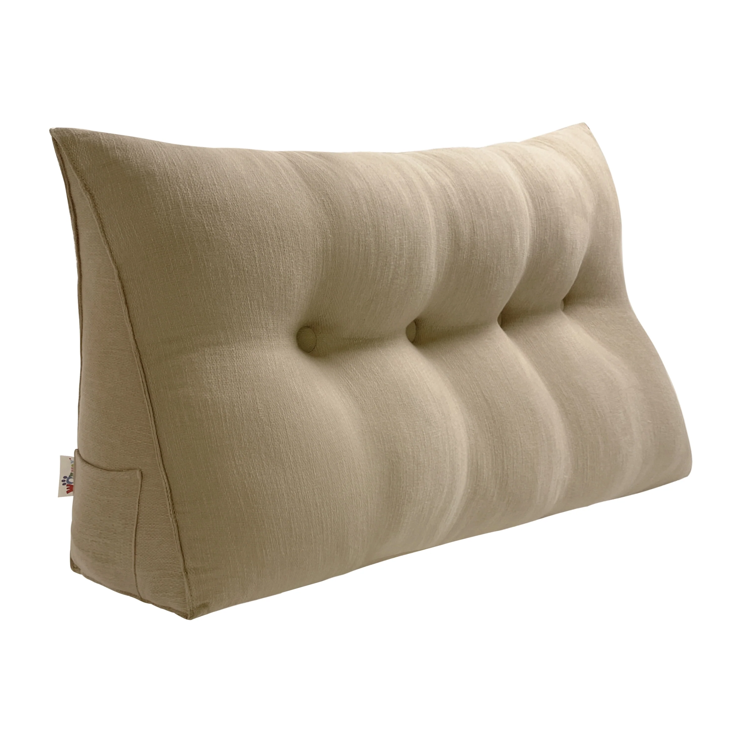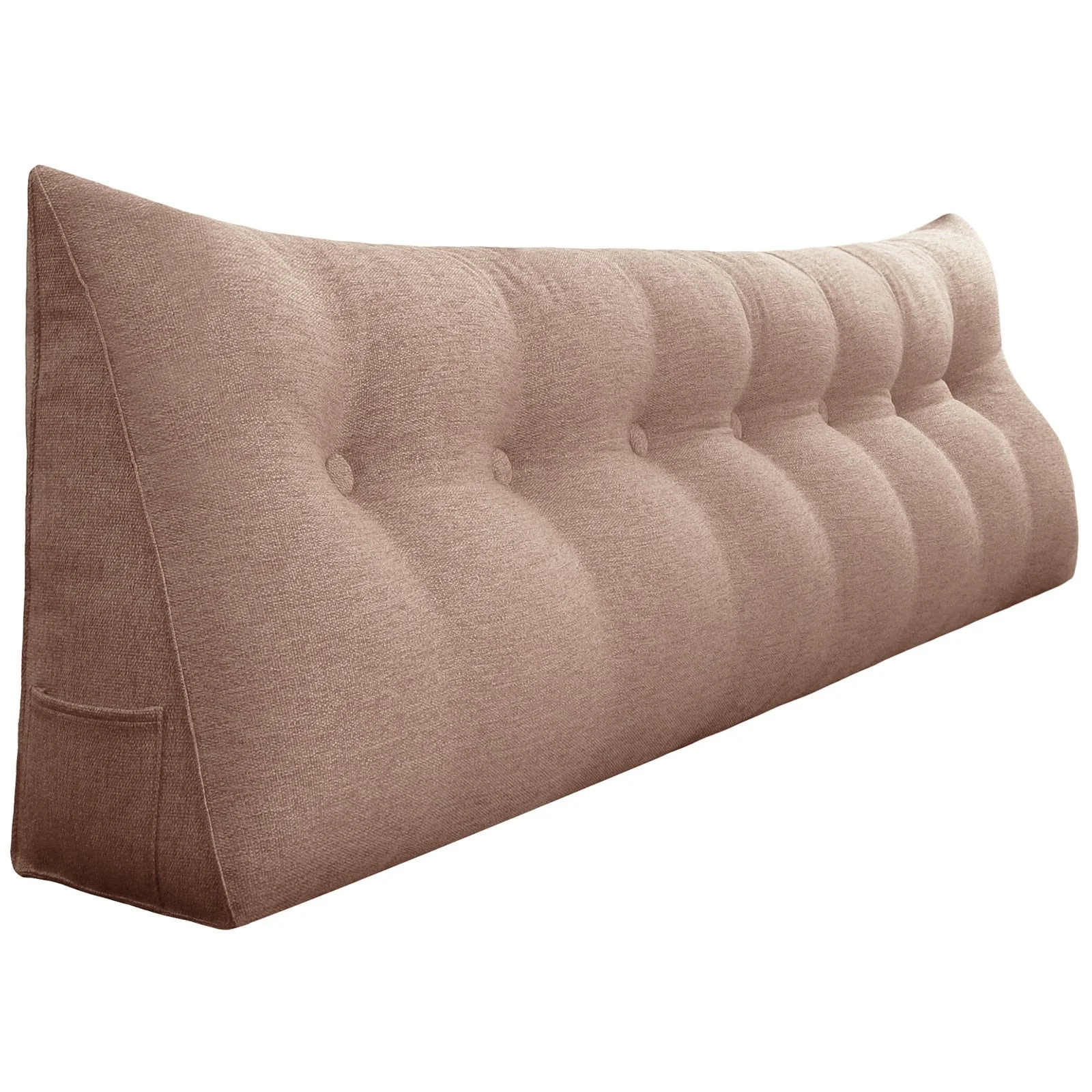 Upgrade your bed with the WOWMAX Bed Rest Wedge Reading Pillow Headboard Back Support Cushion. This versatile pillow provides comfortable and firm back support and works as a removable headboard alternative. Its unique wedge shape fills the gap between your back and the wall, and the button tufts keep the 100% polyester fiberfill in place. Use it for reading, watching TV, body positioning, leg elevation, or as a child bumper. The linen blend cover is detachable and washable, and the pillow fits all standard bed sizes. Choose from a variety of colors to match your decor.