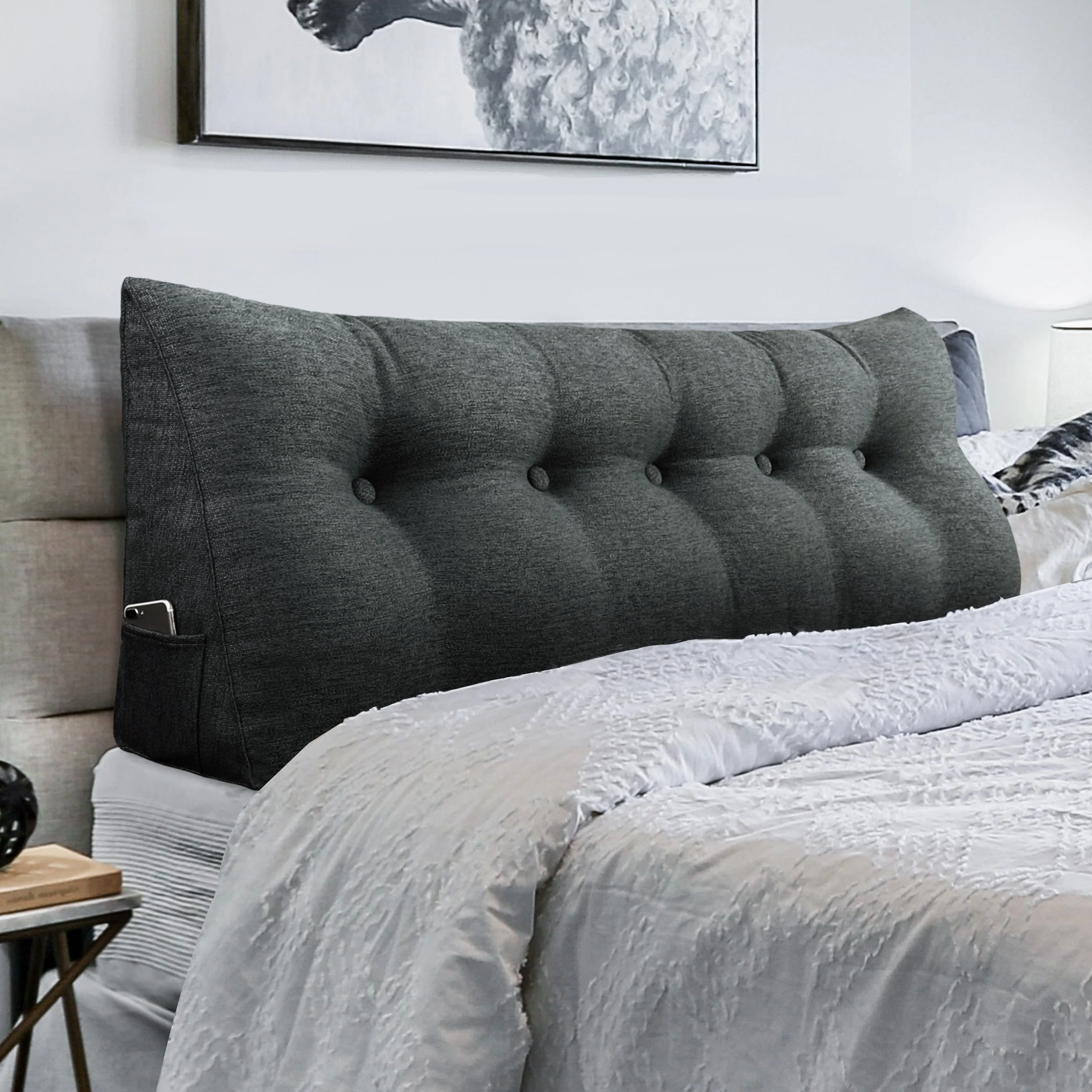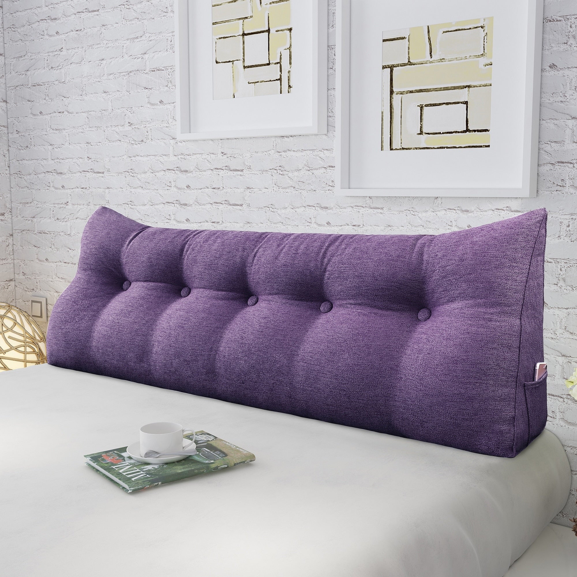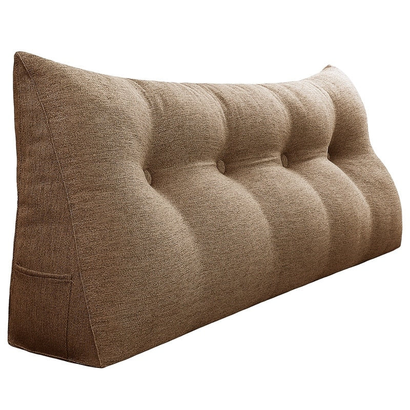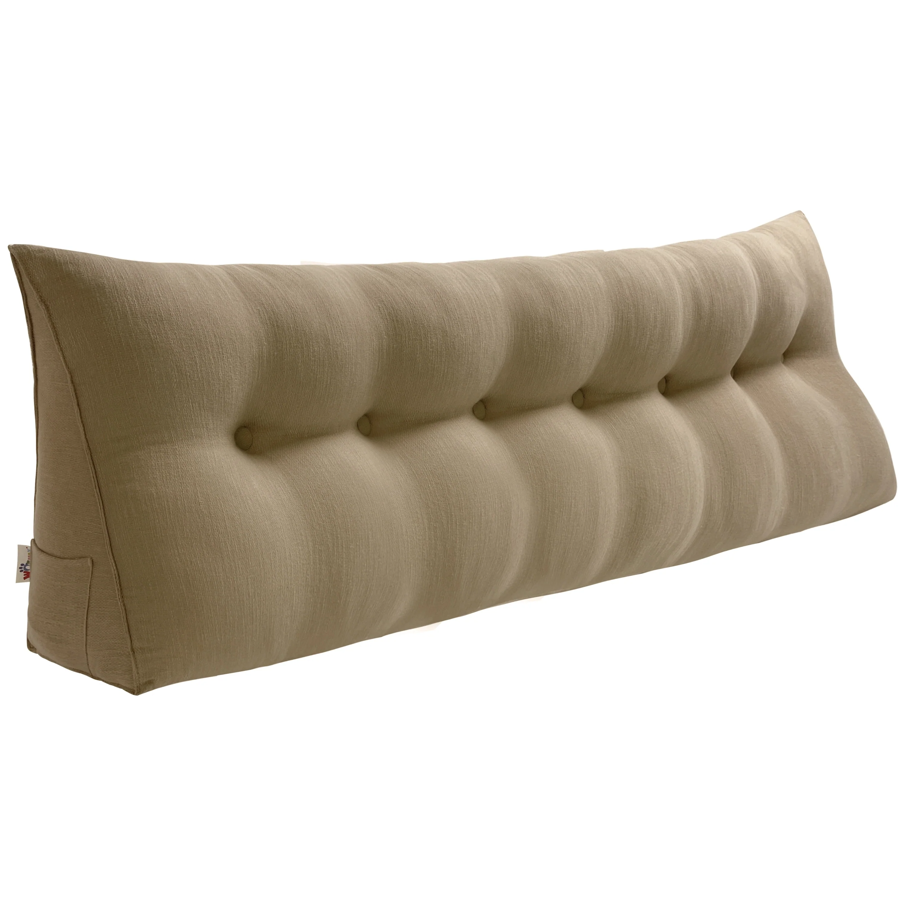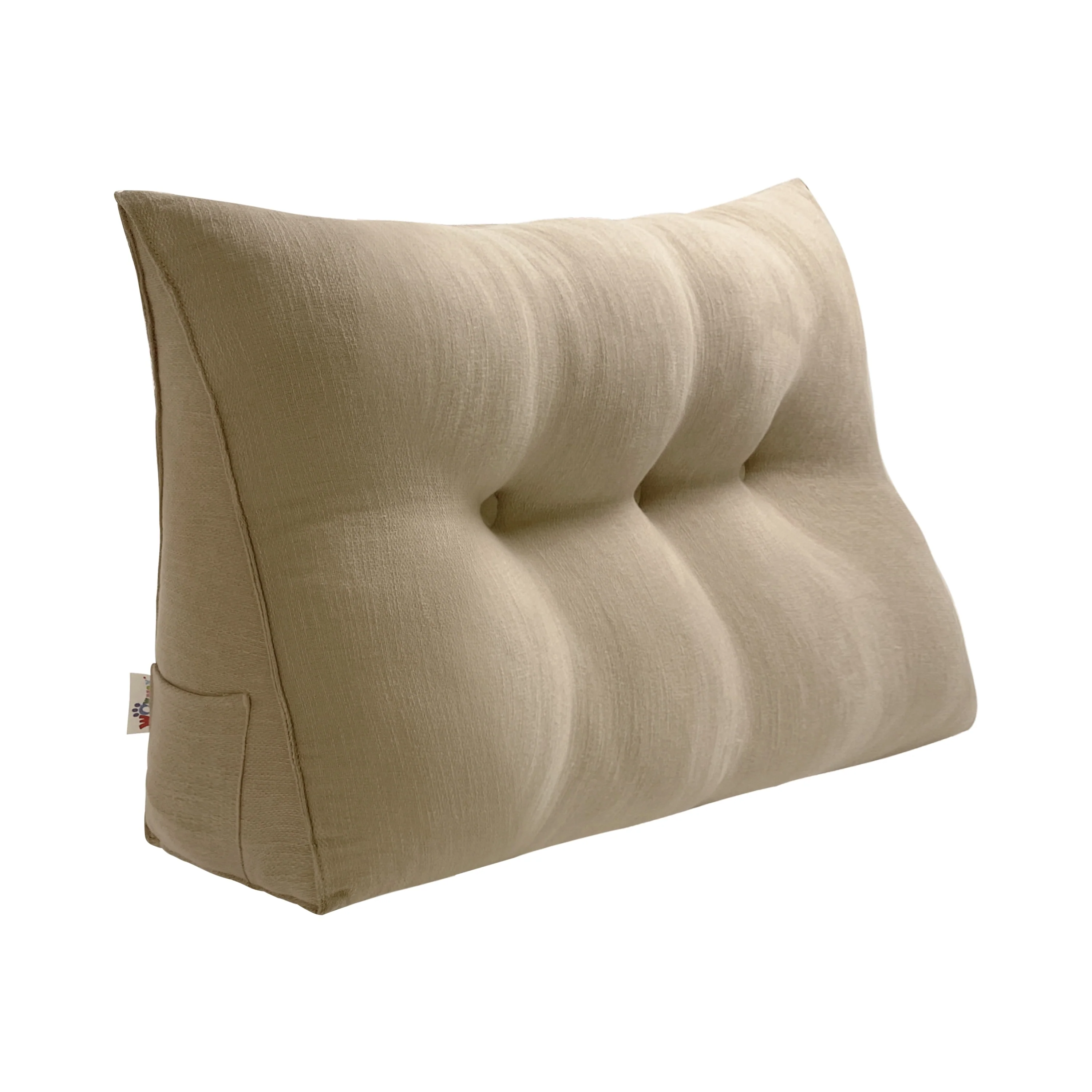 Upgrade your bed with the WOWMAX Bed Rest Wedge Reading Pillow Headboard Back Support Cushion. This versatile pillow provides comfortable and firm back support and works as a removable headboard alternative. Its unique wedge shape fills the gap between your back and the wall, and the button tufts keep the 100% polyester fiberfill in place. Use it for reading, watching TV, body positioning, leg elevation, or as a child bumper. The linen blend cover is detachable and washable, and the pillow fits all standard bed sizes. Choose from a variety of colors to match your decor.