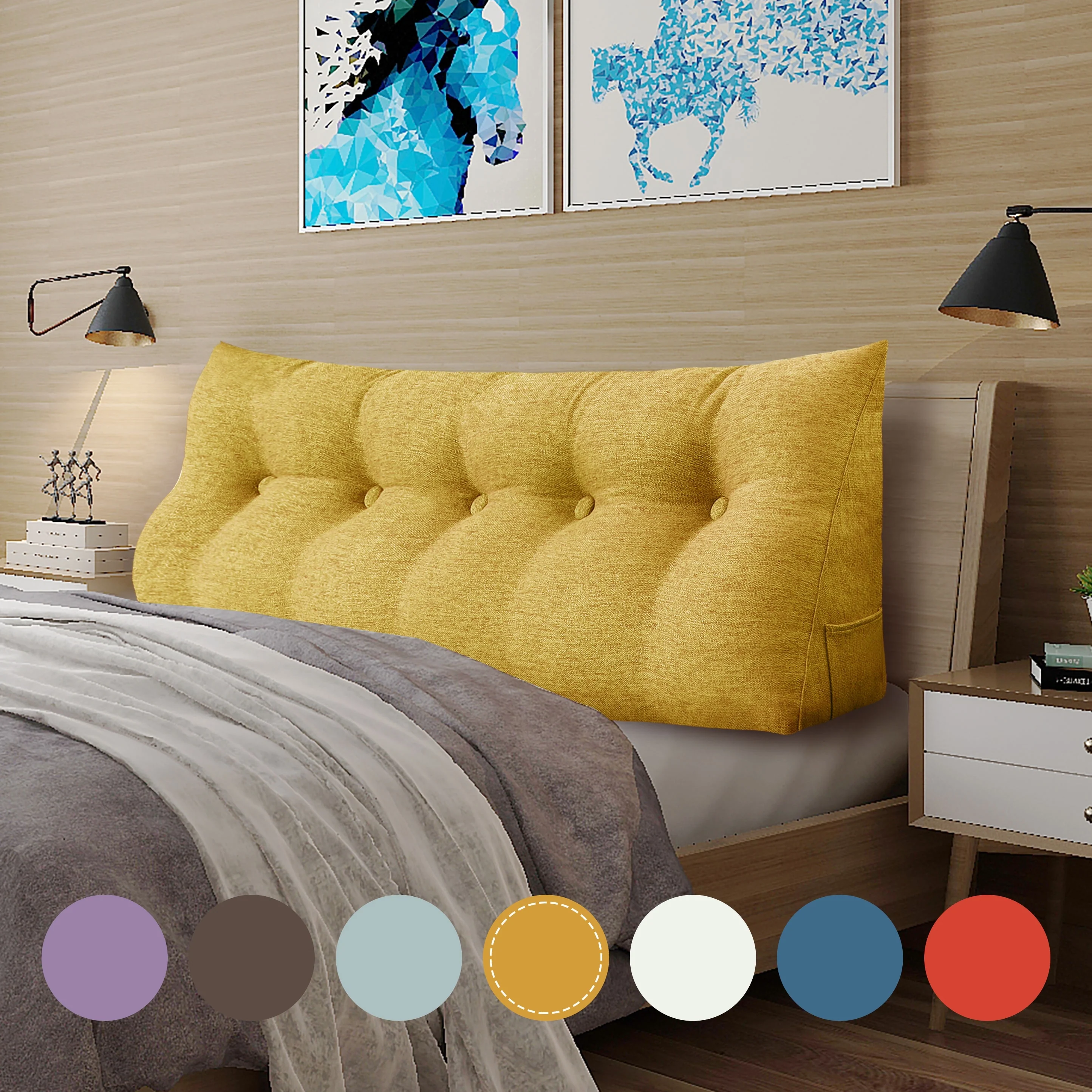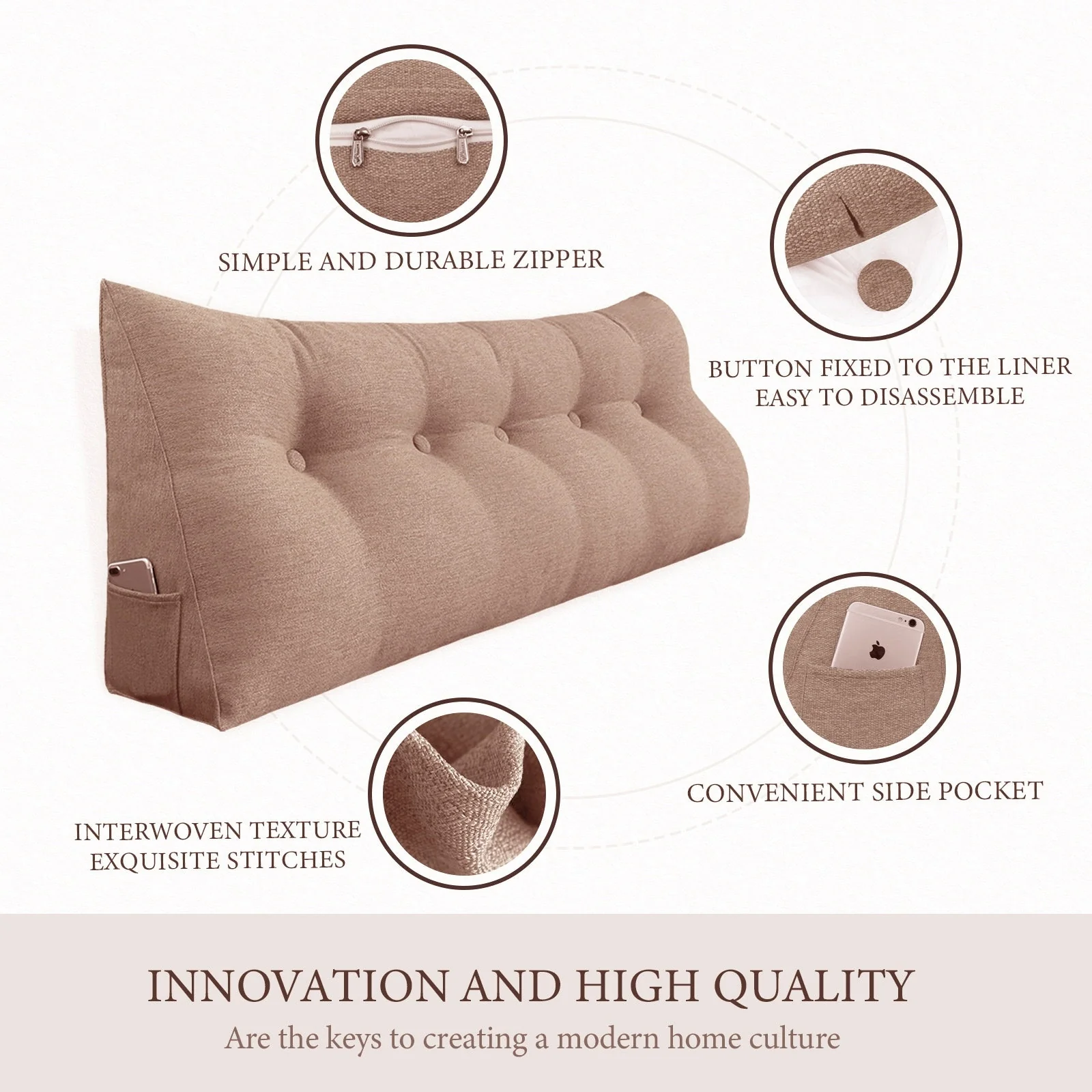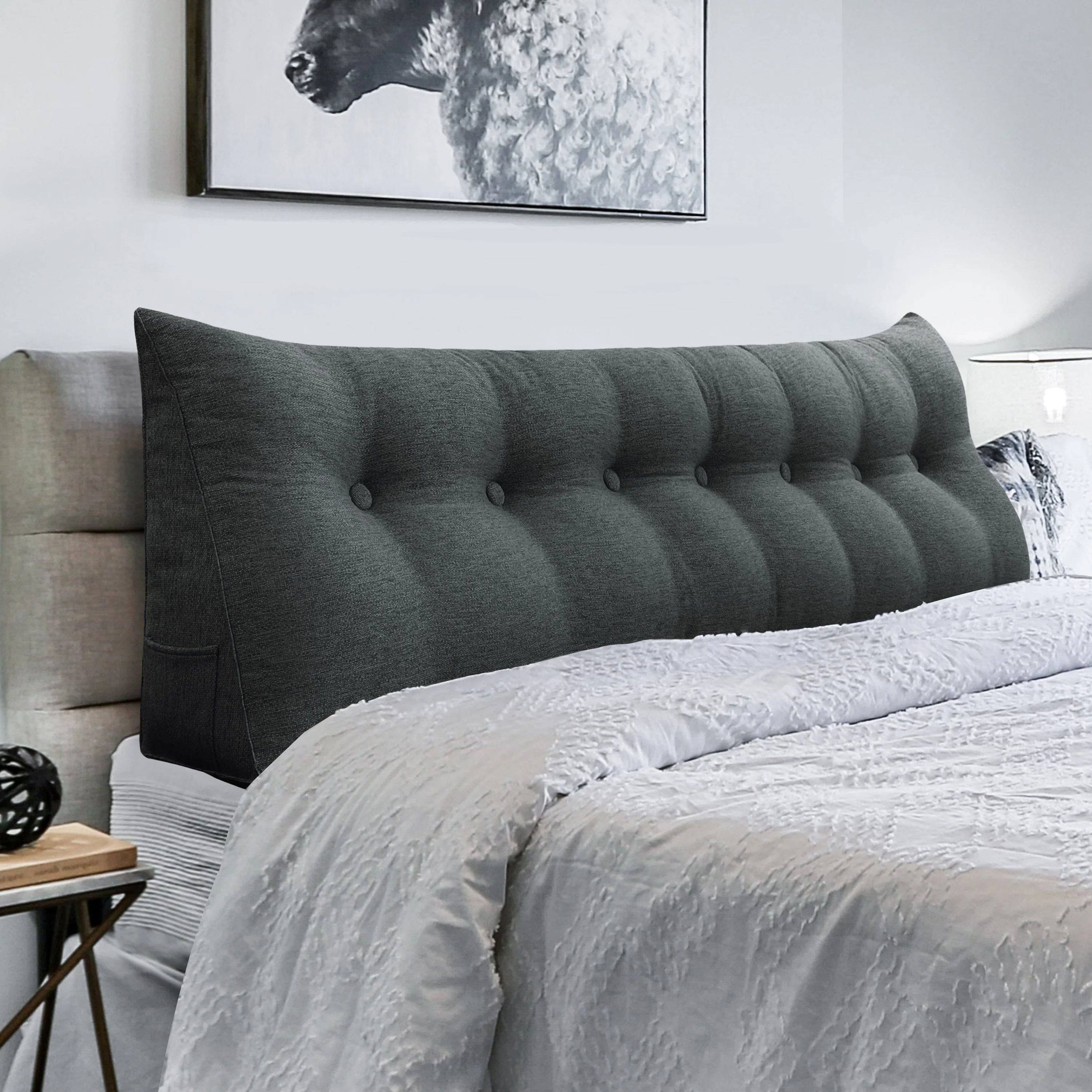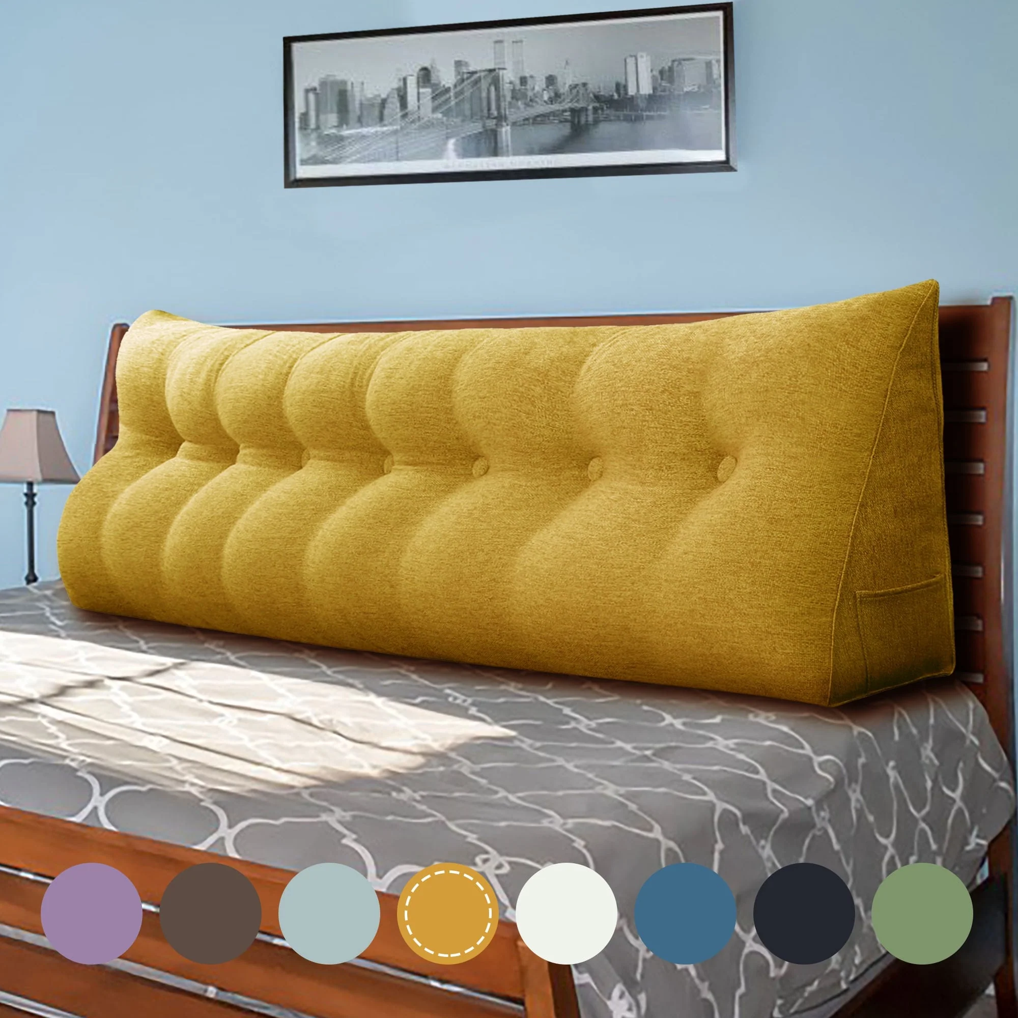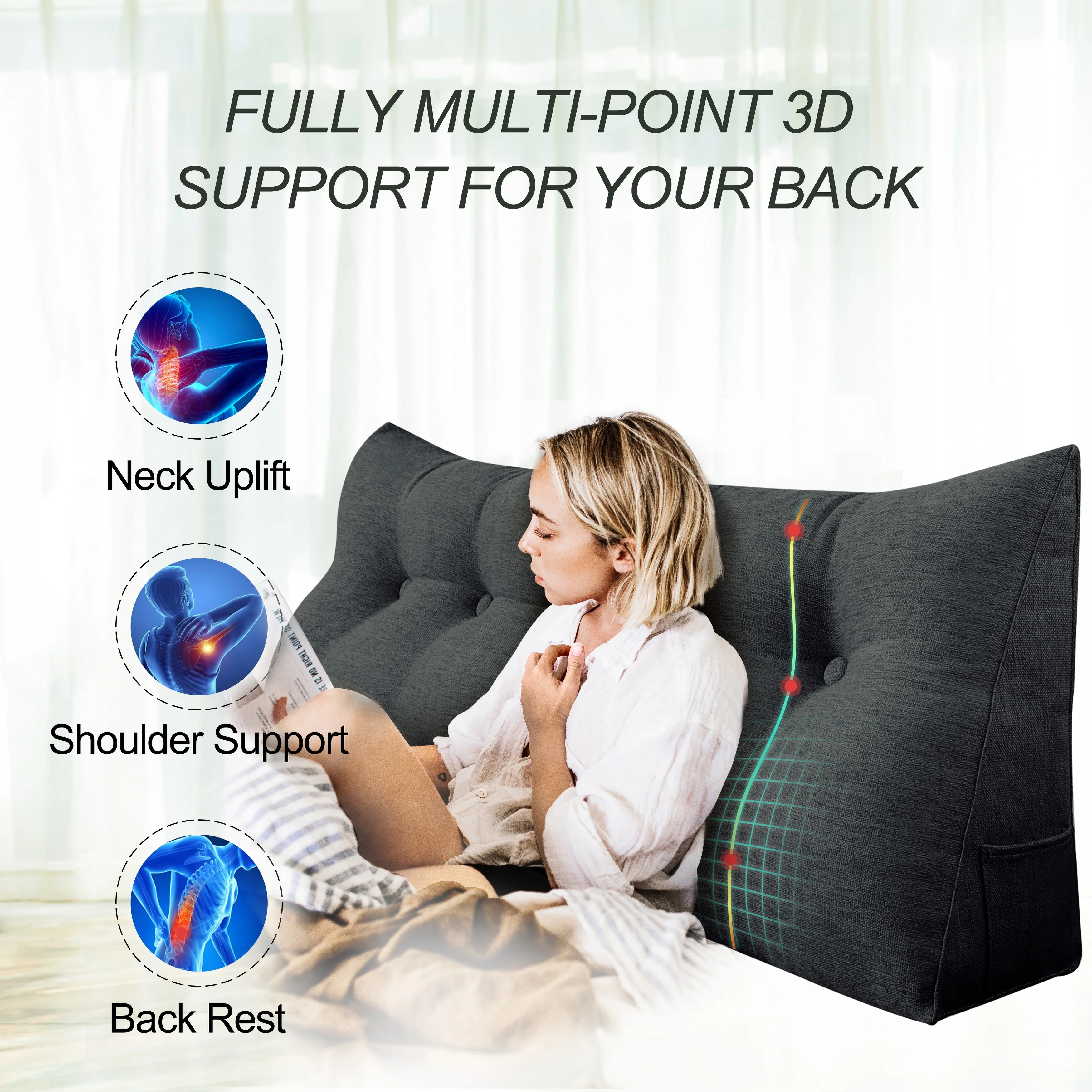 Upgrade your bed with the WOWMAX Bed Rest Wedge Reading Pillow Headboard Back Support Cushion. This versatile pillow provides comfortable and firm back support and works as a removable headboard alternative. Its unique wedge shape fills the gap between your back and the wall, and the button tufts keep the 100% polyester fiberfill in place. Use it for reading, watching TV, body positioning, leg elevation, or as a child bumper. The linen blend cover is detachable and washable, and the pillow fits all standard bed sizes. Choose from a variety of colors to match your decor.
