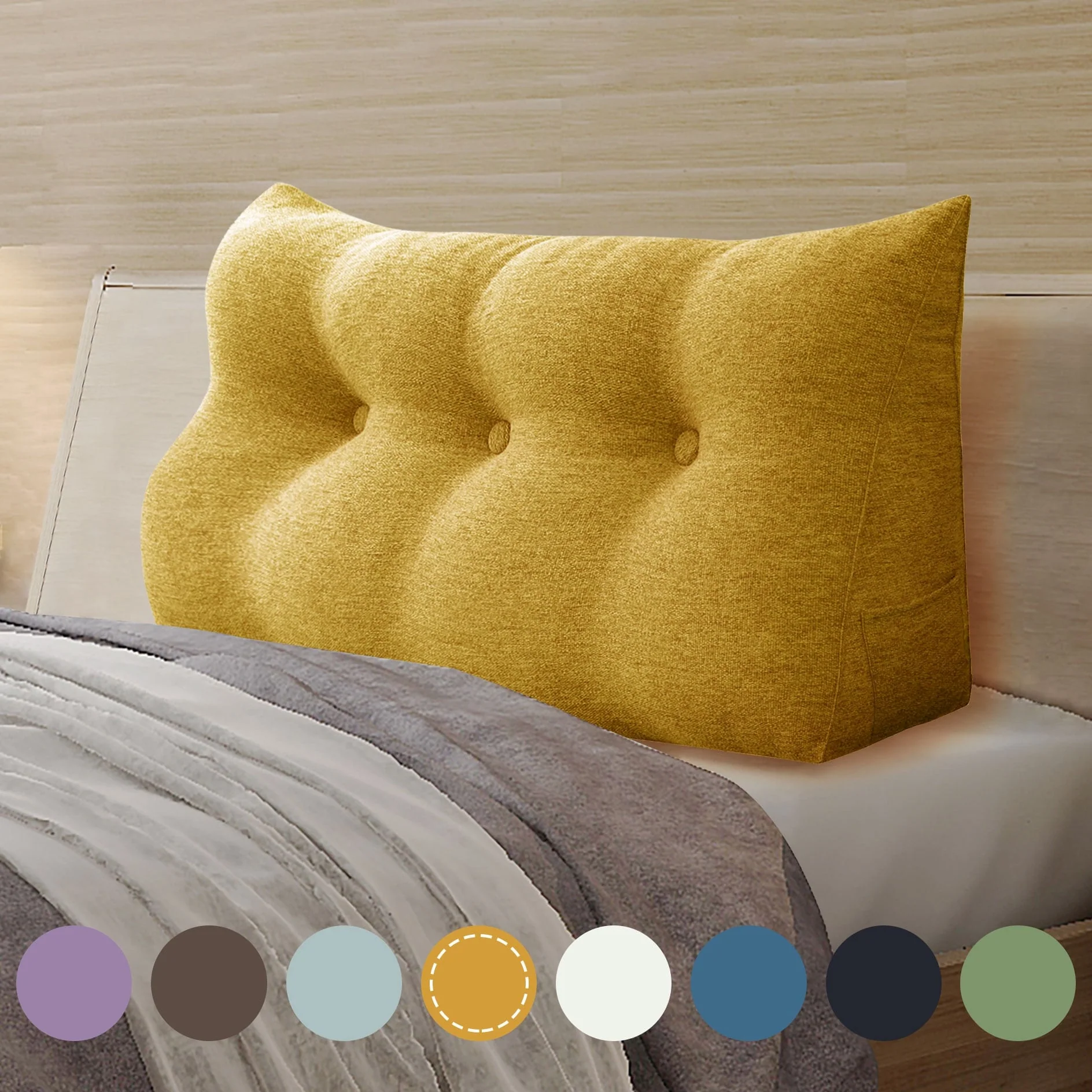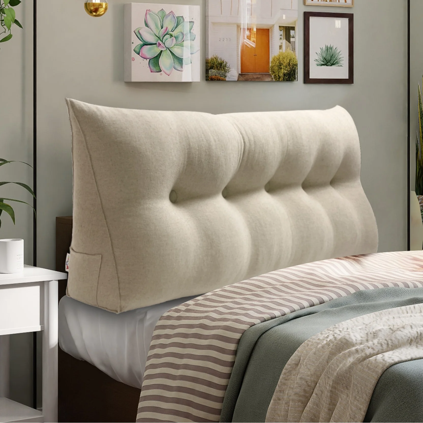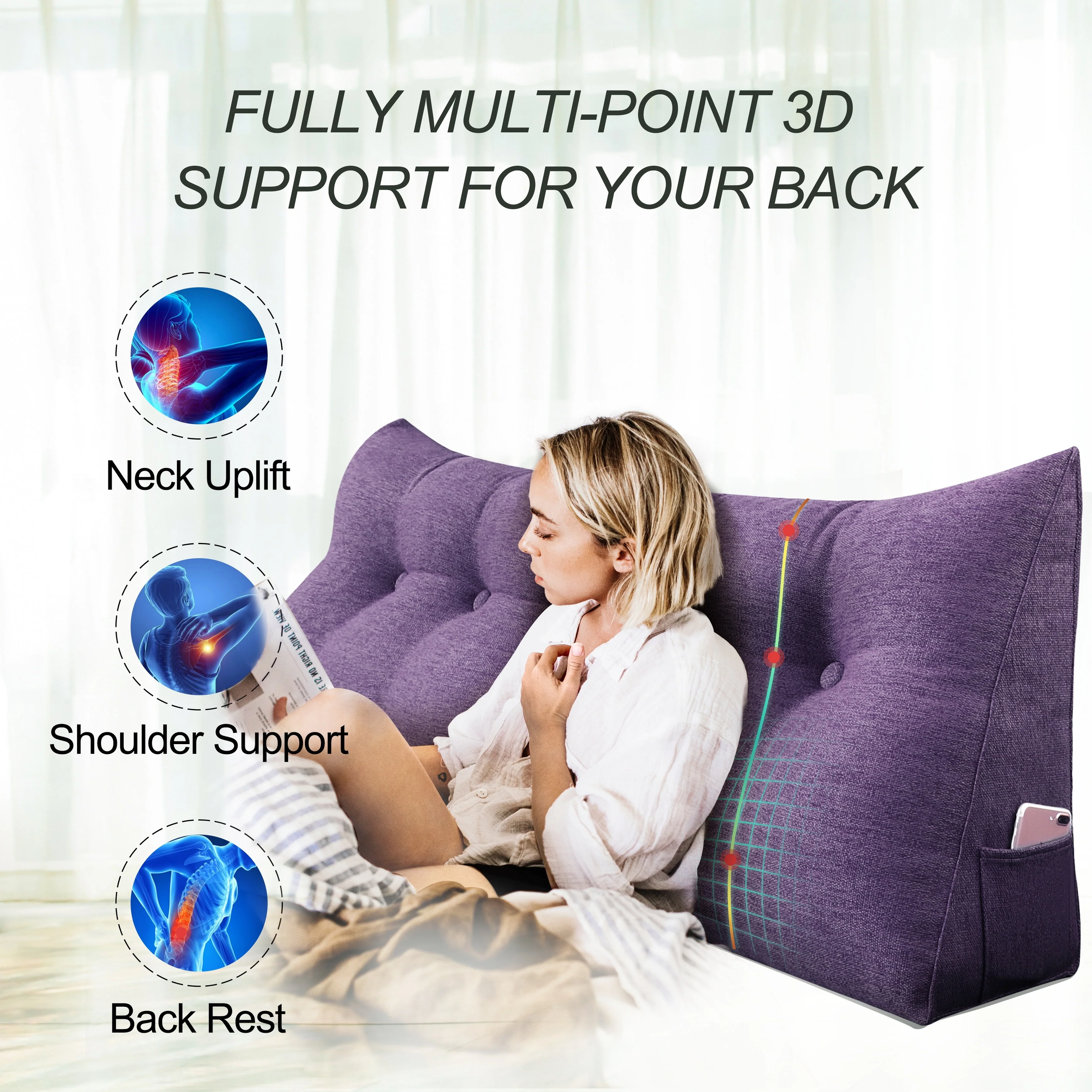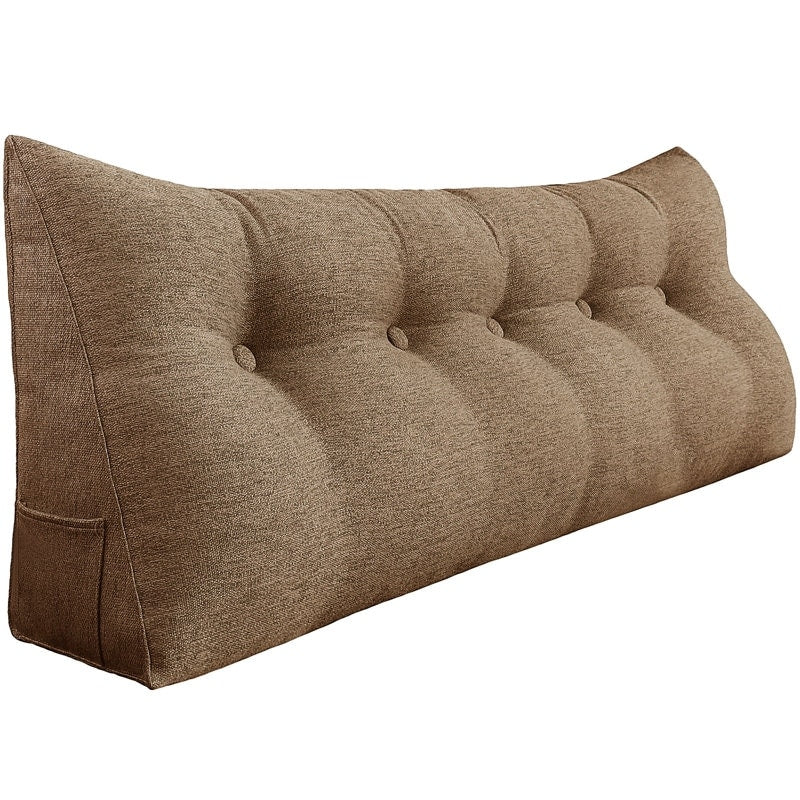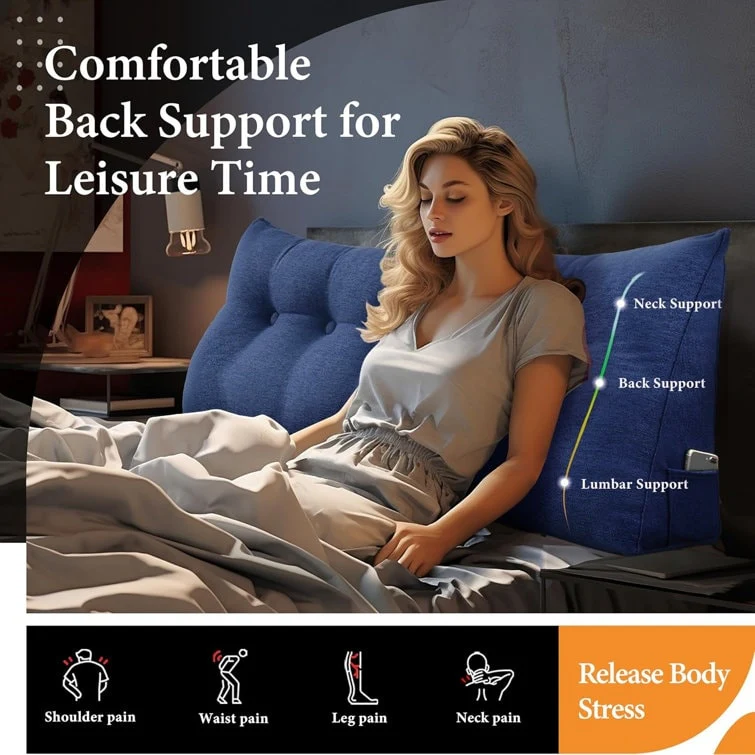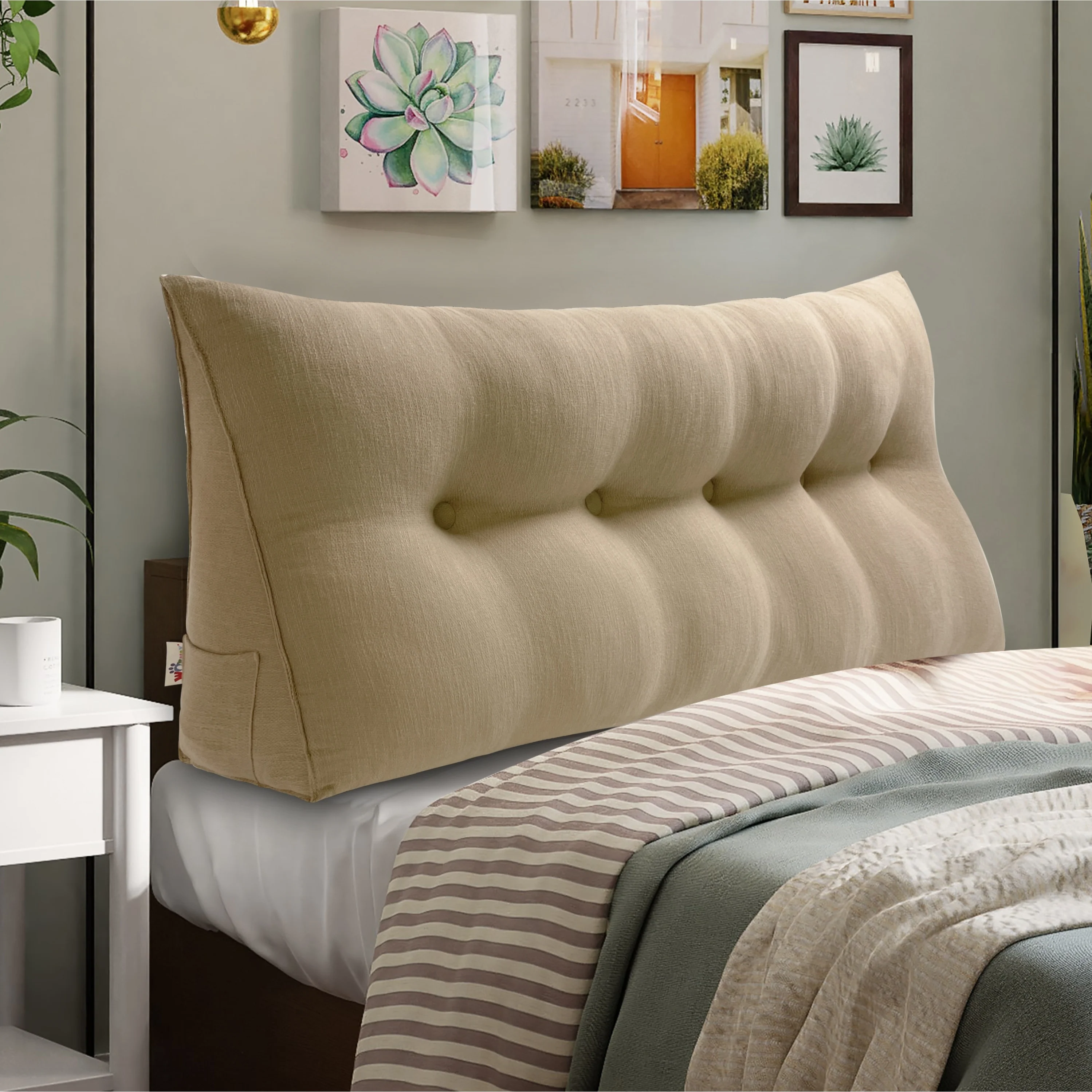 Upgrade your bed with the WOWMAX Bed Rest Wedge Reading Pillow Headboard Back Support Cushion. This versatile pillow provides comfortable and firm back support and works as a removable headboard alternative. Its unique wedge shape fills the gap between your back and the wall, and the button tufts keep the 100% polyester fiberfill in place. Use it for reading, watching TV, body positioning, leg elevation, or as a child bumper. The linen blend cover is detachable and washable, and the pillow fits all standard bed sizes. Choose from a variety of colors to match your decor.