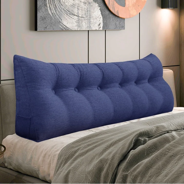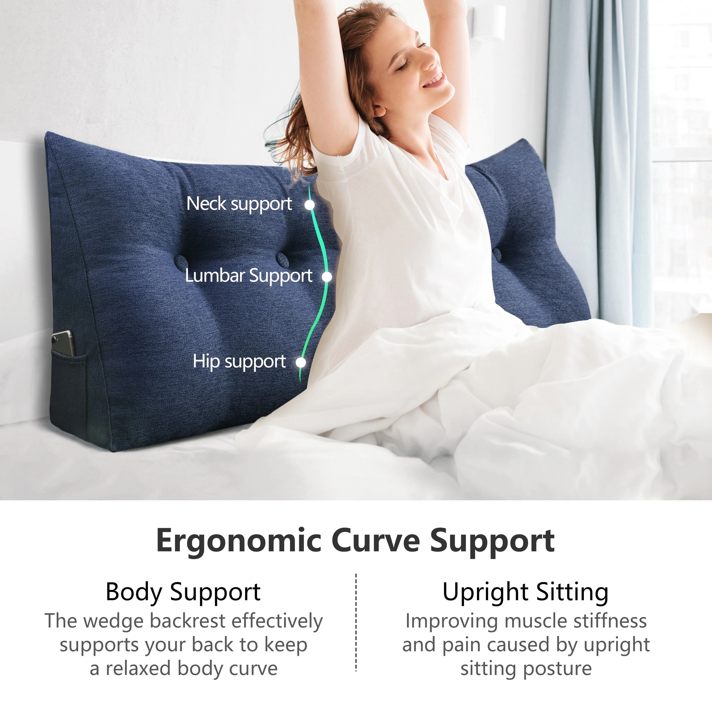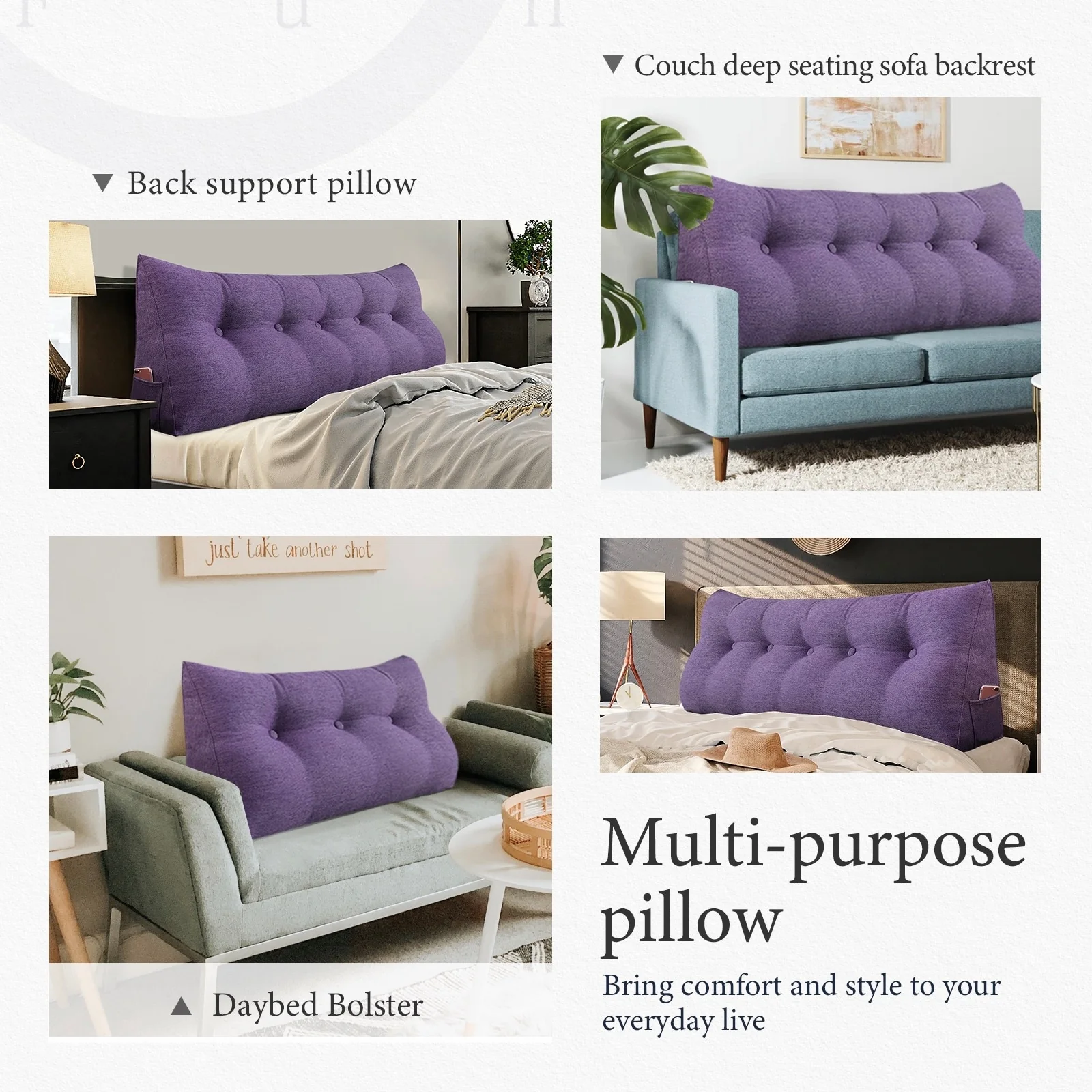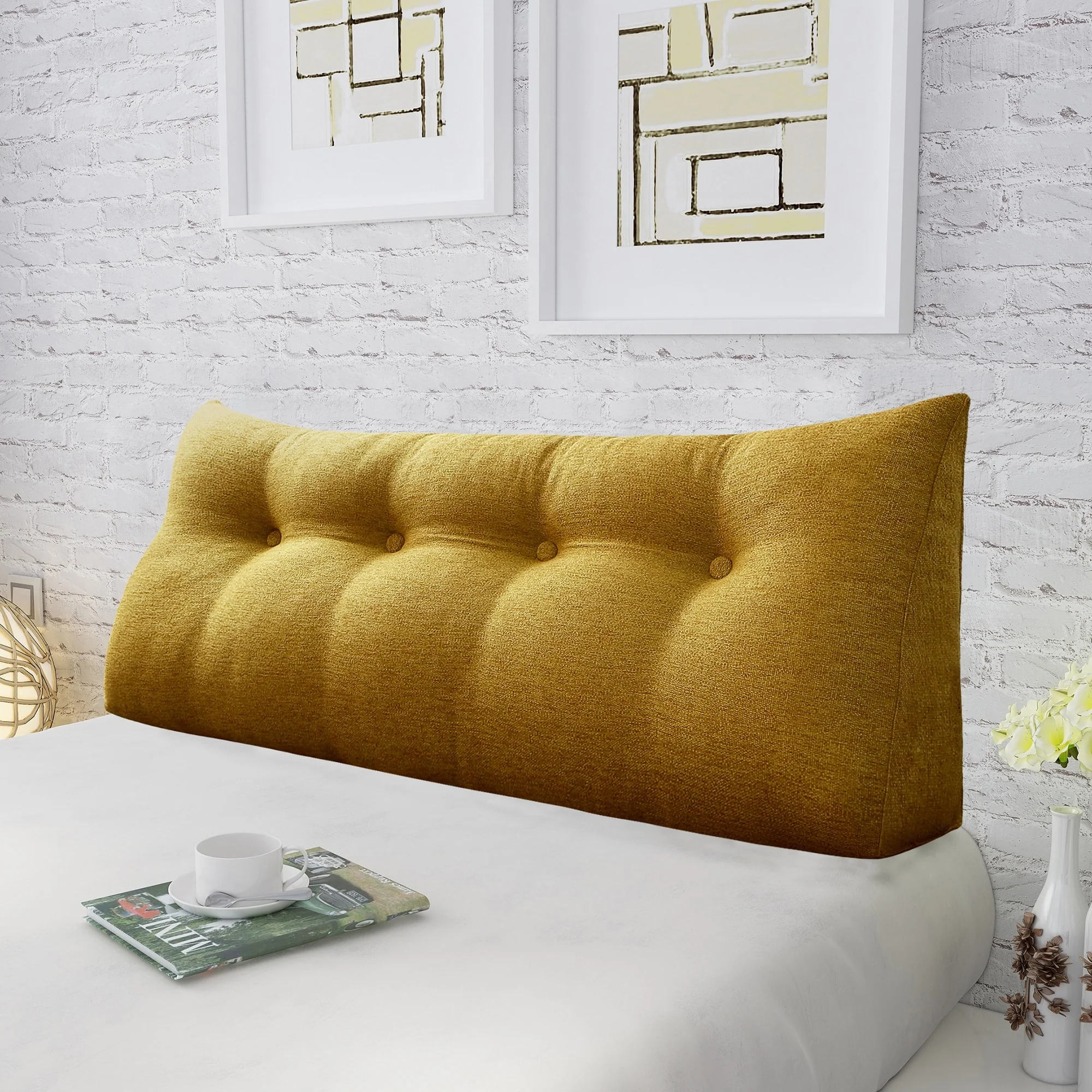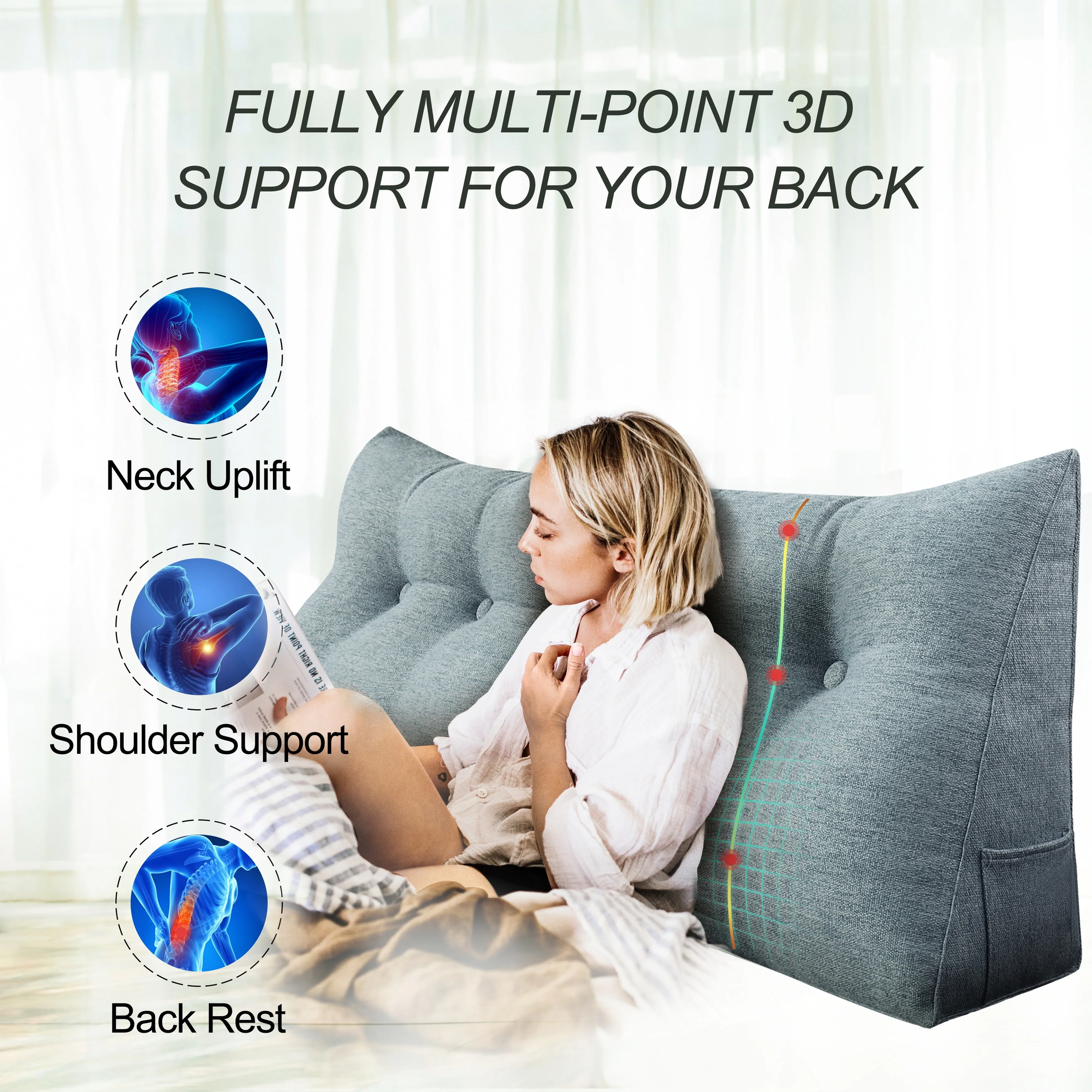 Upgrade your bed with the WOWMAX Bed Rest Wedge Reading Pillow Headboard Back Support Cushion. This versatile pillow provides comfortable and firm back support and works as a removable headboard alternative. Its unique wedge shape fills the gap between your back and the wall, and the button tufts keep the 100% polyester fiberfill in place. Use it for reading, watching TV, body positioning, leg elevation, or as a child bumper. The linen blend cover is detachable and washable, and the pillow fits all standard bed sizes. Choose from a variety of colors to match your decor.
