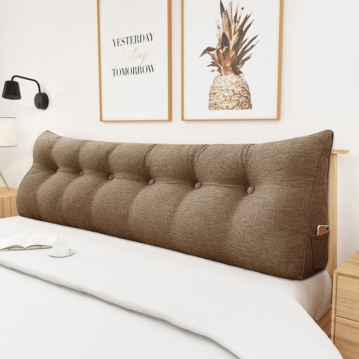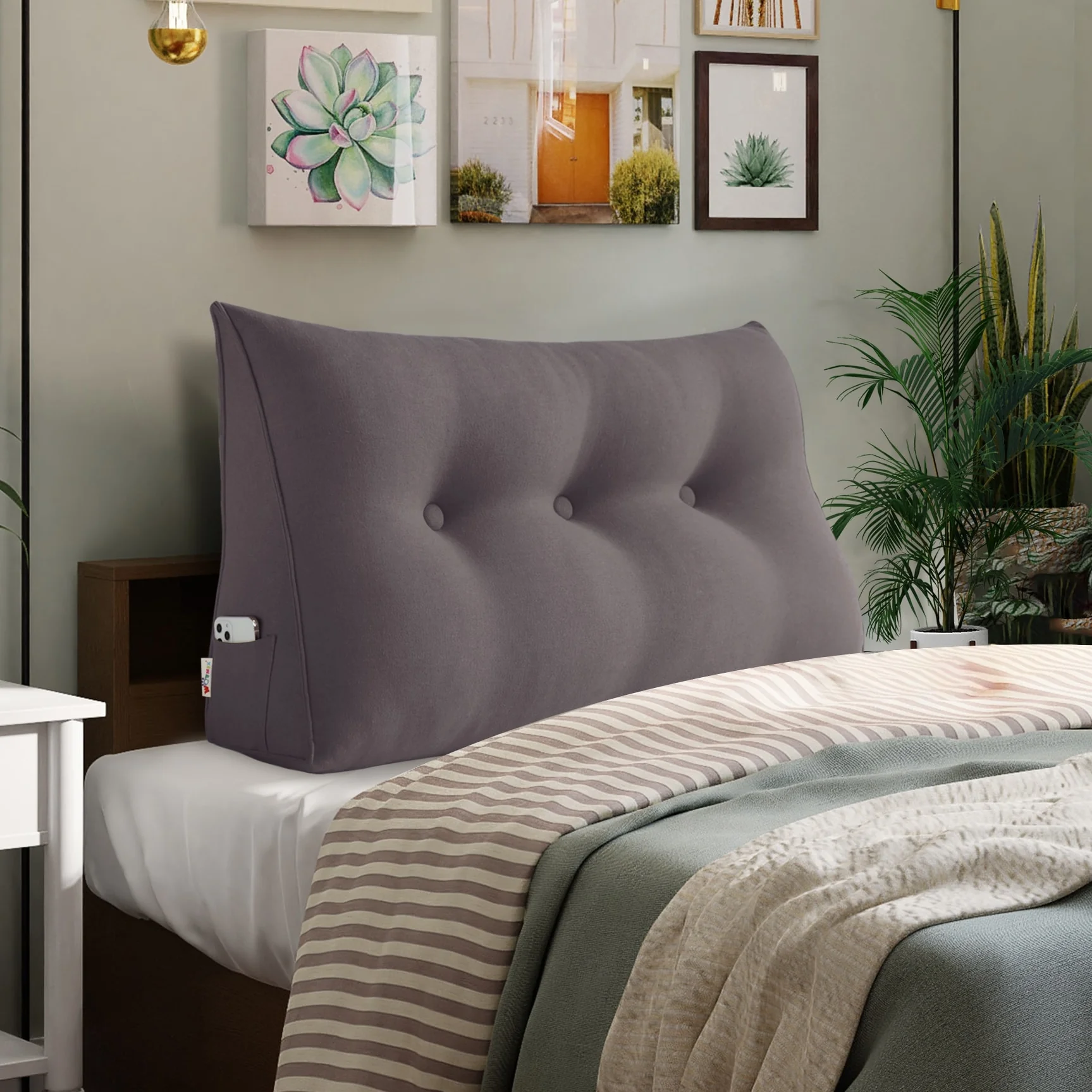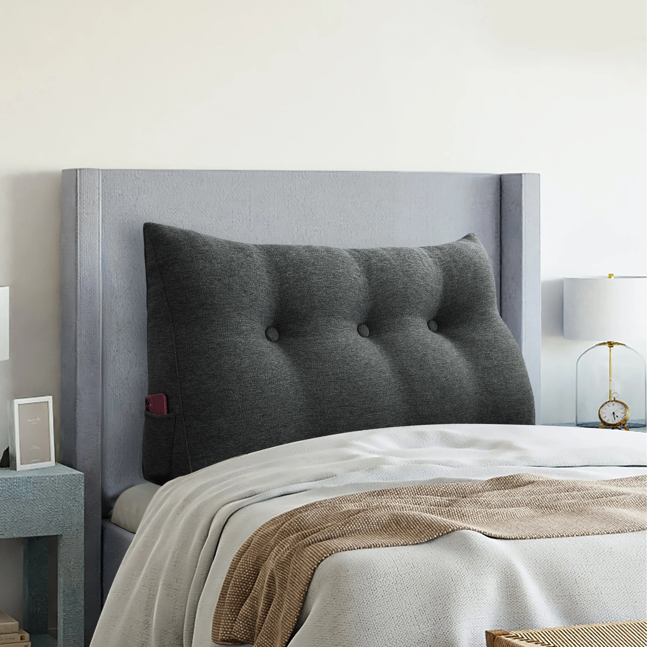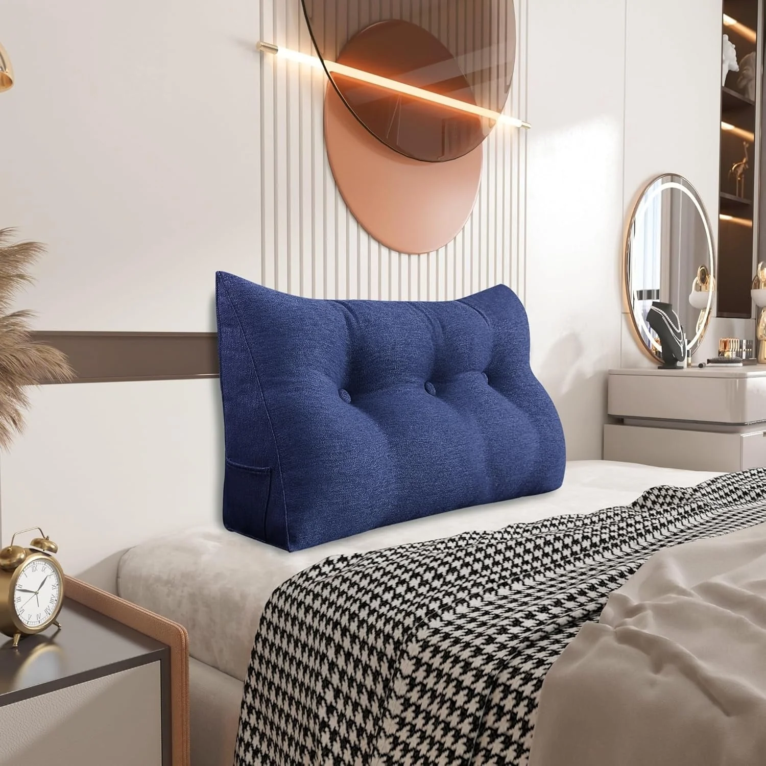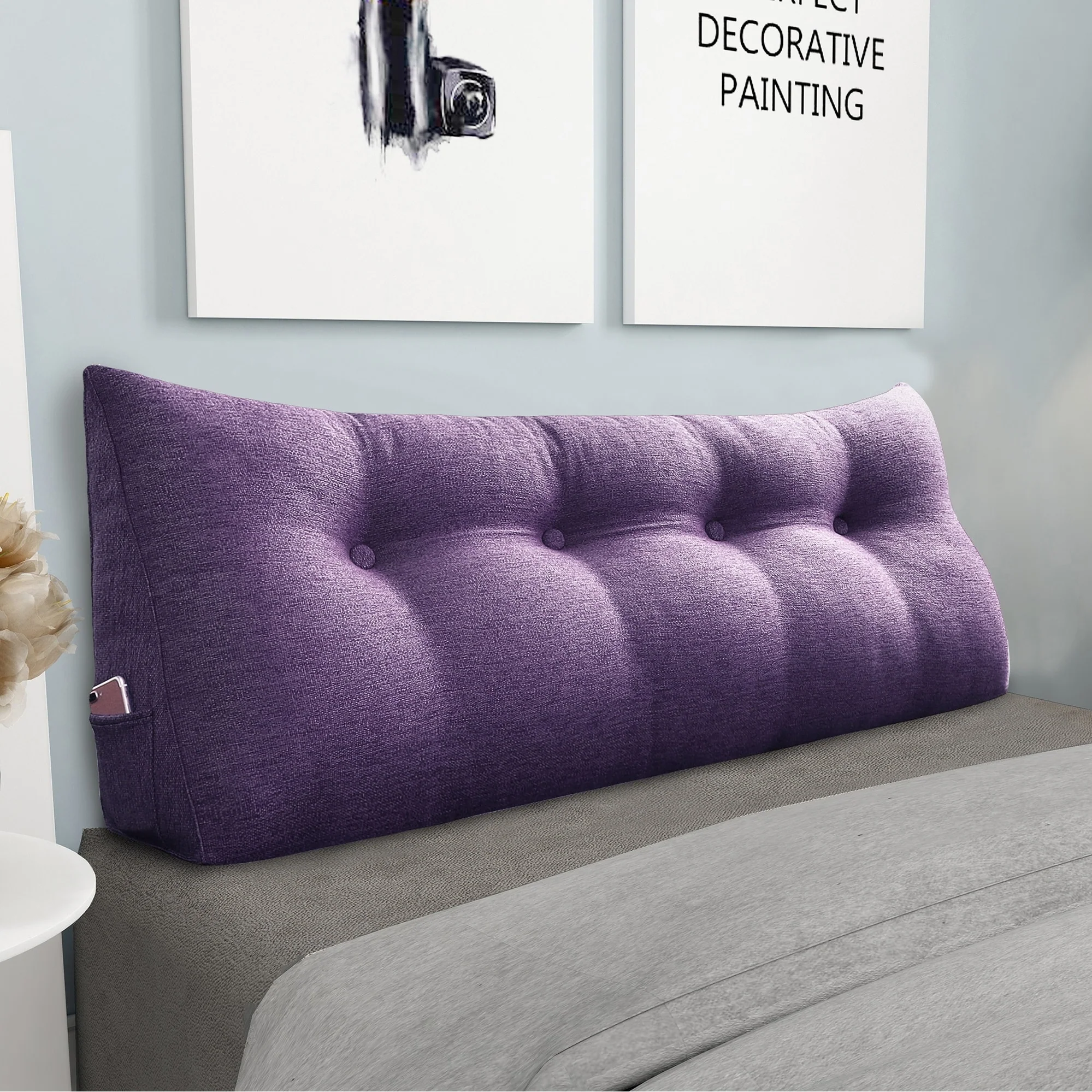 Upgrade your bed with the WOWMAX Bed Rest Wedge Reading Pillow Headboard Back Support Cushion. This versatile pillow provides comfortable and firm back support and works as a removable headboard alternative. Its unique wedge shape fills the gap between your back and the wall, and the button tufts keep the 100% polyester fiberfill in place. Use it for reading, watching TV, body positioning, leg elevation, or as a child bumper. The linen blend cover is detachable and washable, and the pillow fits all standard bed sizes. Choose from a variety of colors to match your decor.