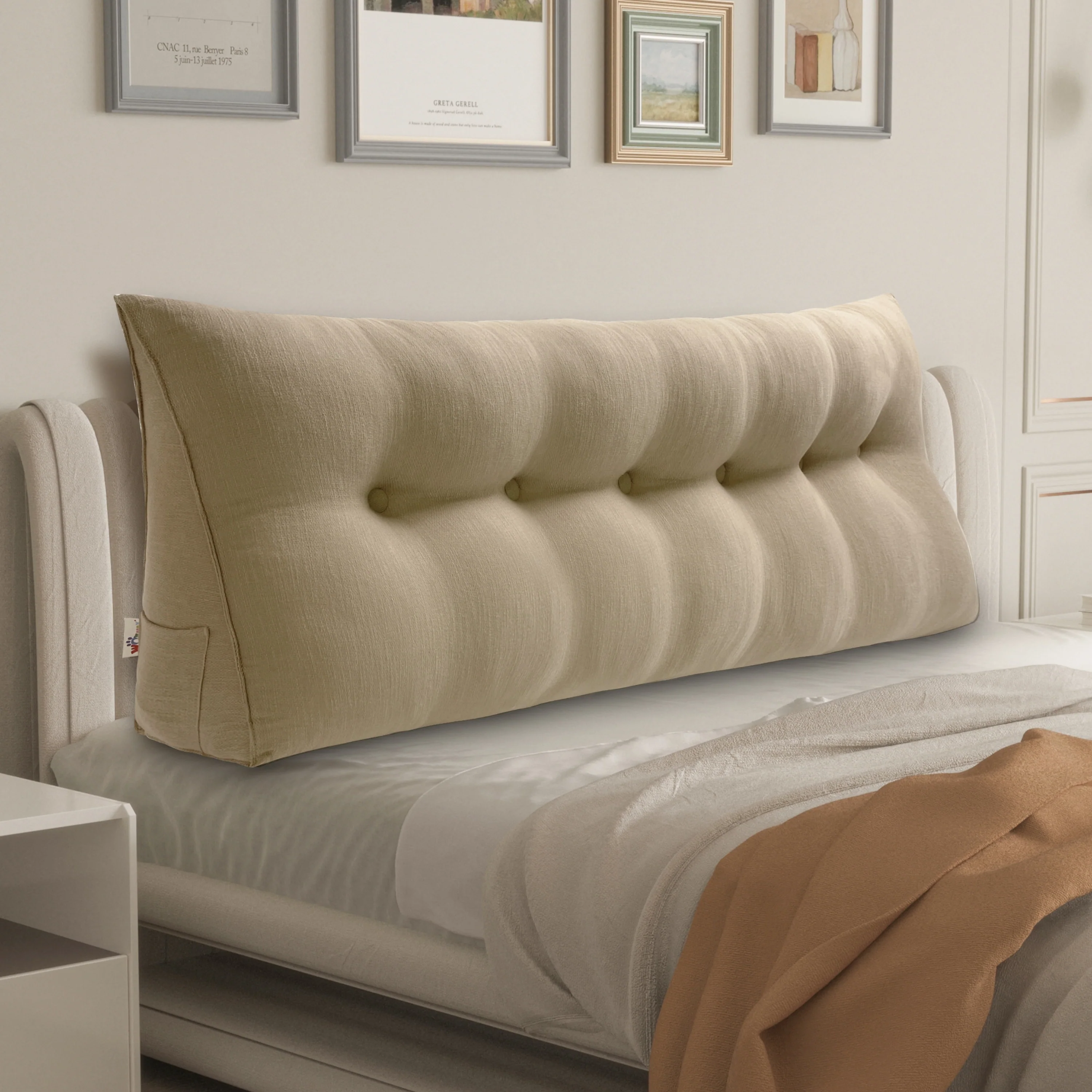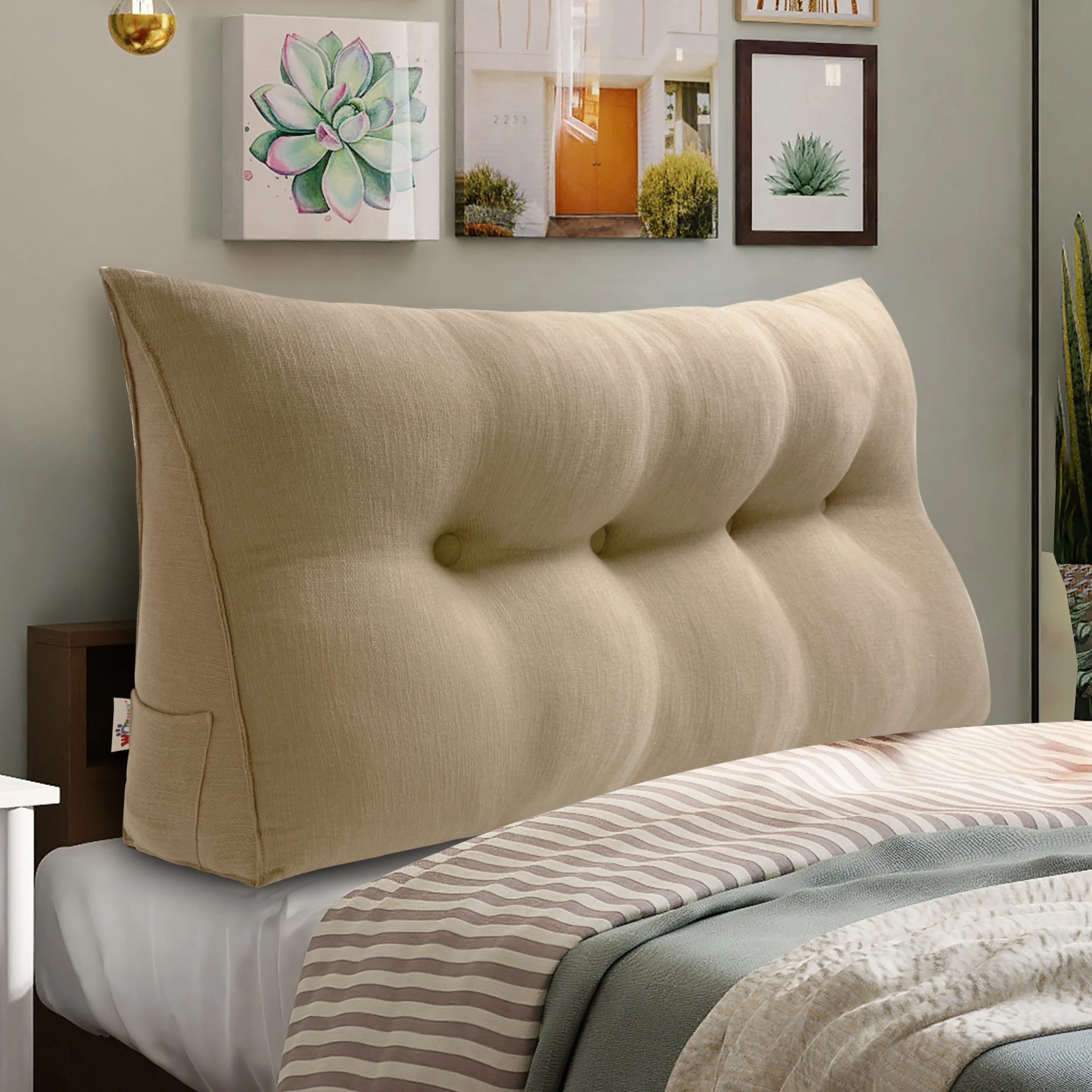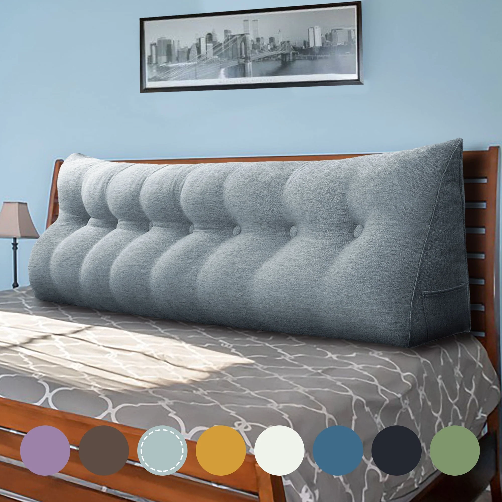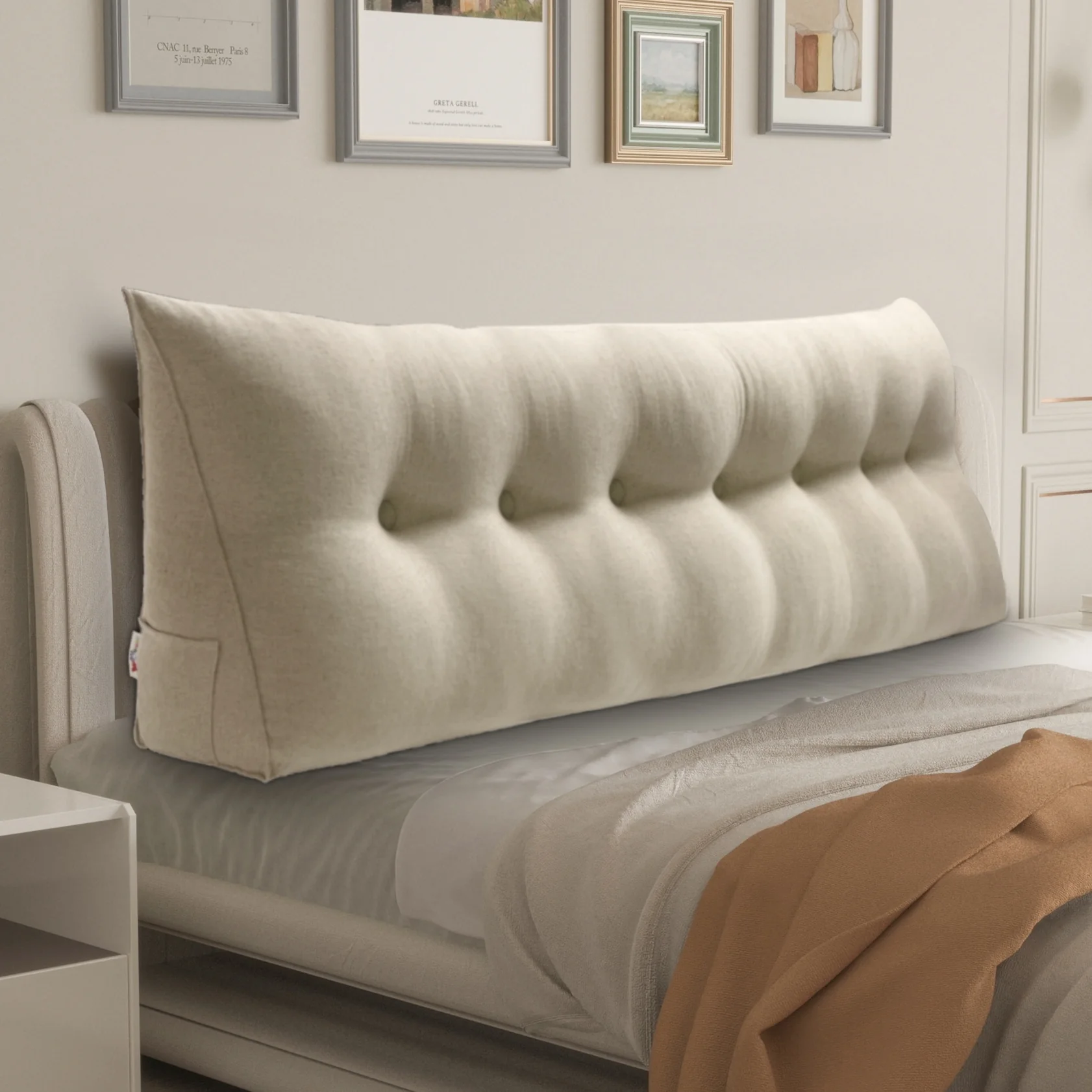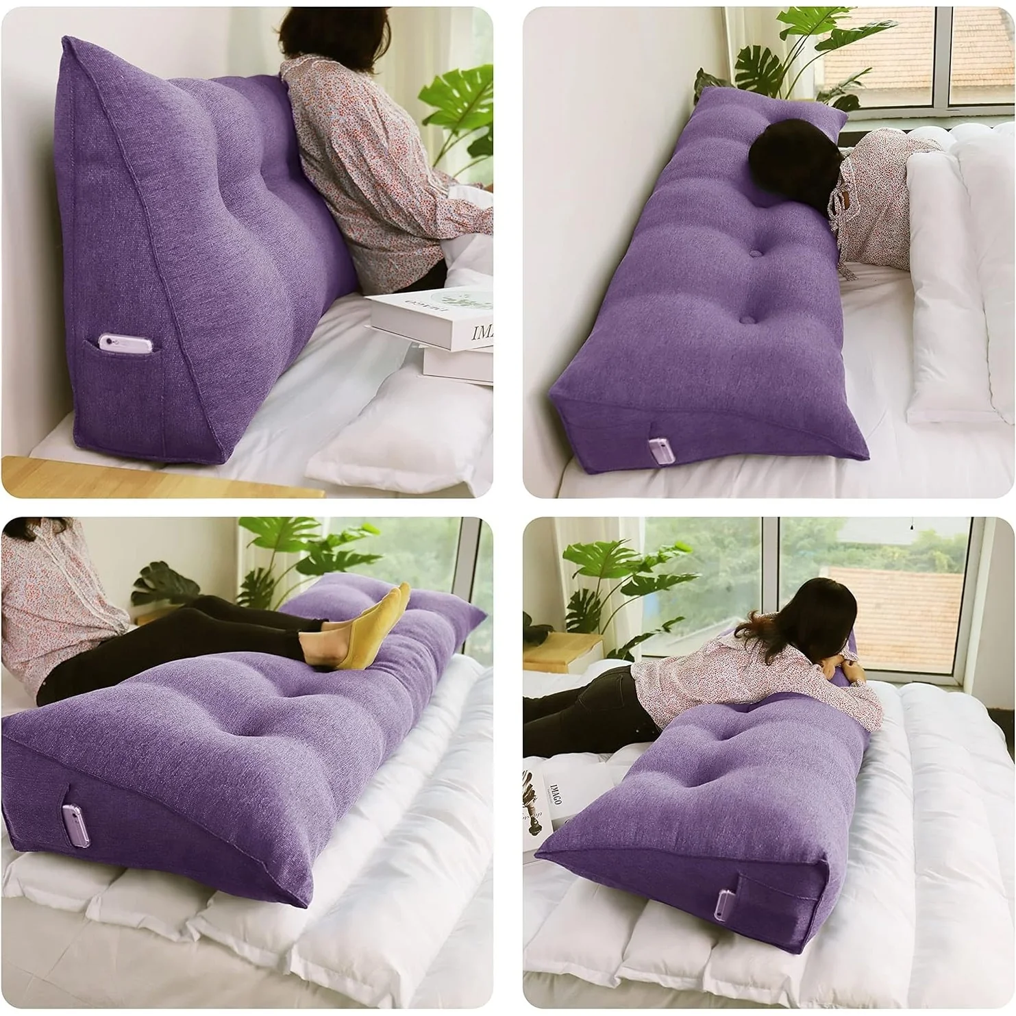 Upgrade your bed with the WOWMAX Bed Rest Wedge Reading Pillow Headboard Back Support Cushion. This versatile pillow provides comfortable and firm back support and works as a removable headboard alternative. Its unique wedge shape fills the gap between your back and the wall, and the button tufts keep the 100% polyester fiberfill in place. Use it for reading, watching TV, body positioning, leg elevation, or as a child bumper. The linen blend cover is detachable and washable, and the pillow fits all standard bed sizes. Choose from a variety of colors to match your decor.