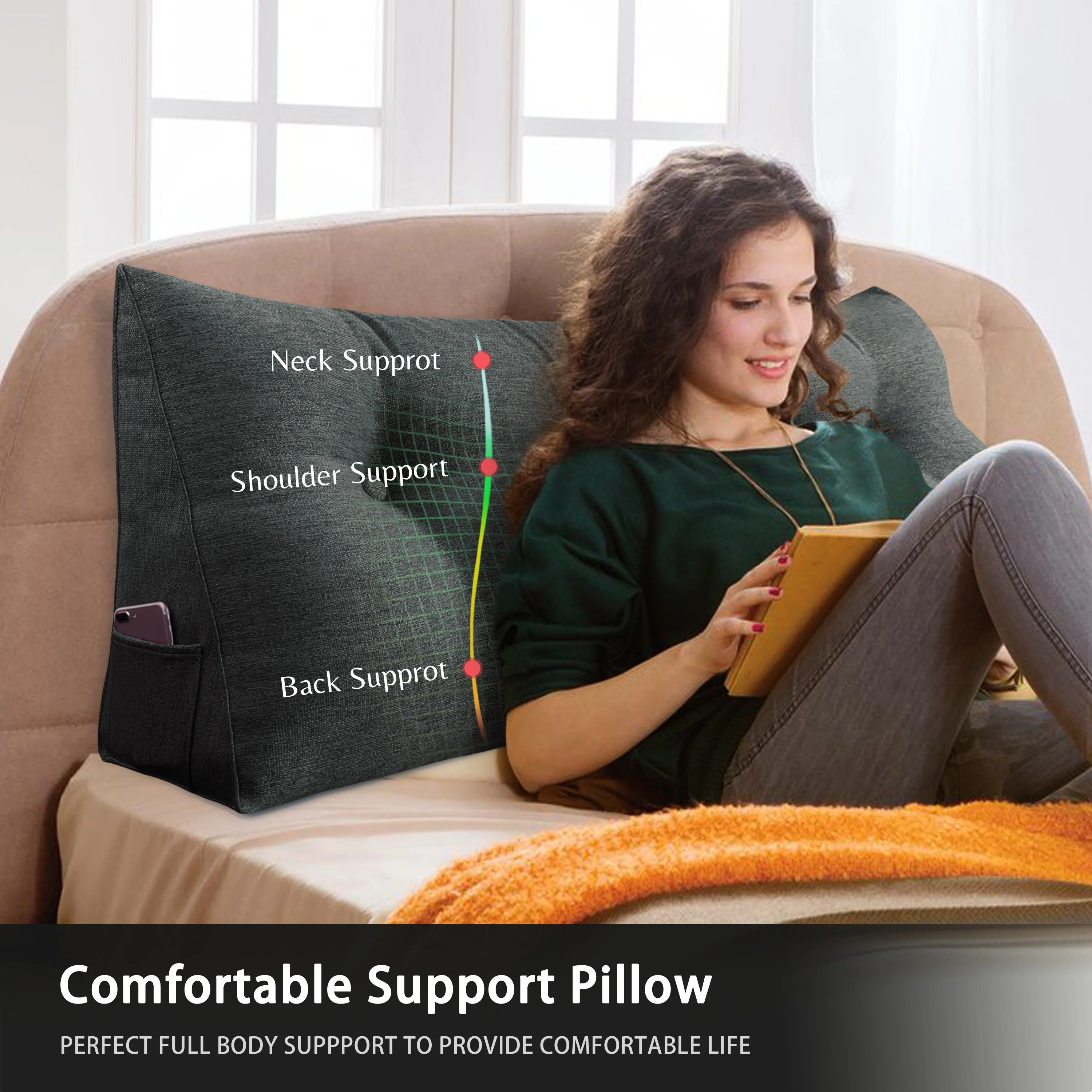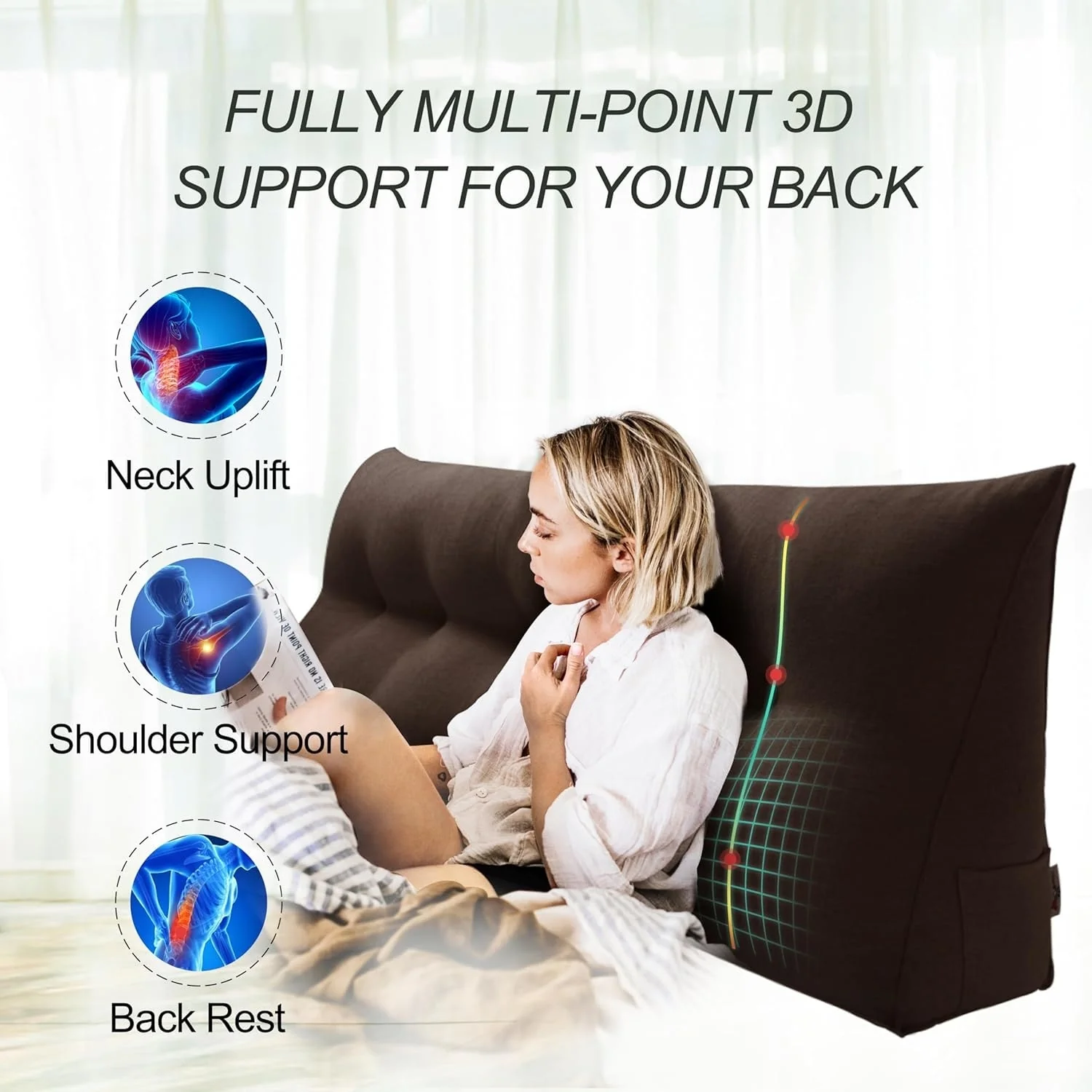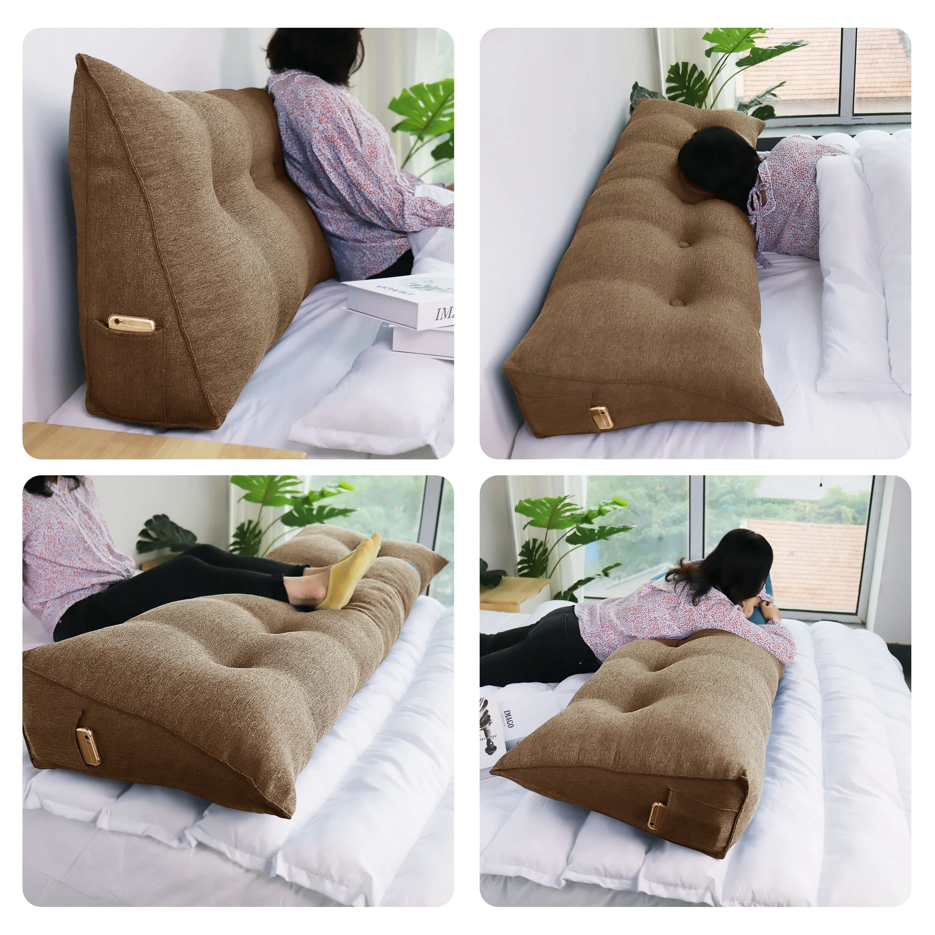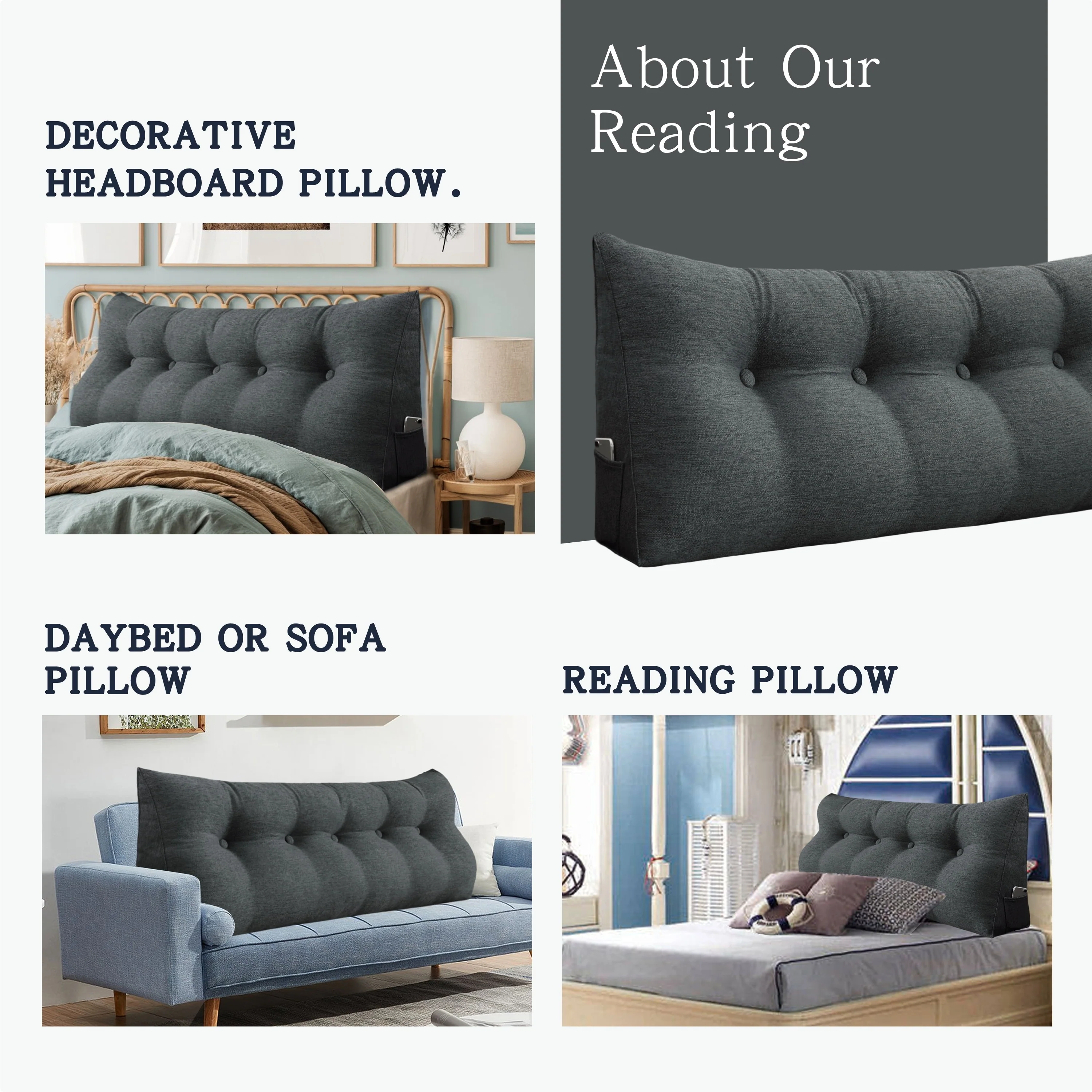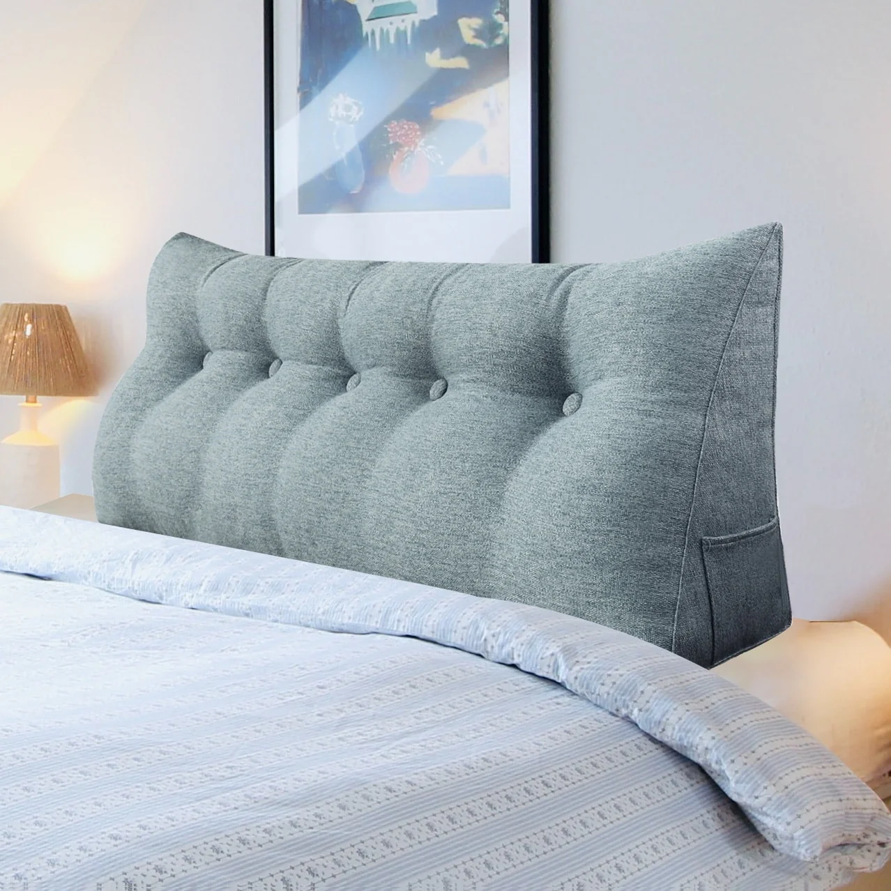 Upgrade your bed with the WOWMAX Bed Rest Wedge Reading Pillow Headboard Back Support Cushion. This versatile pillow provides comfortable and firm back support and works as a removable headboard alternative. Its unique wedge shape fills the gap between your back and the wall, and the button tufts keep the 100% polyester fiberfill in place. Use it for reading, watching TV, body positioning, leg elevation, or as a child bumper. The linen blend cover is detachable and washable, and the pillow fits all standard bed sizes. Choose from a variety of colors to match your decor.