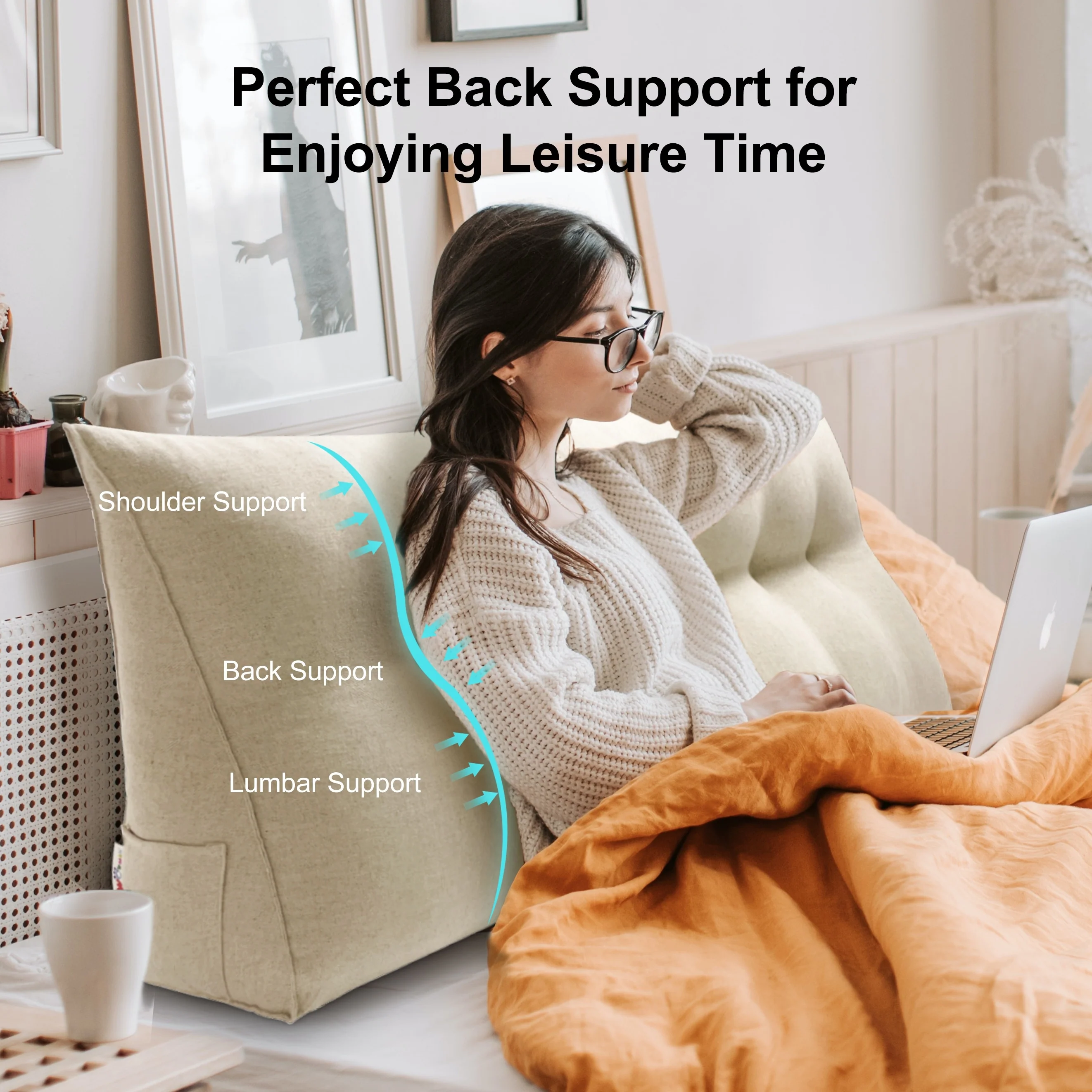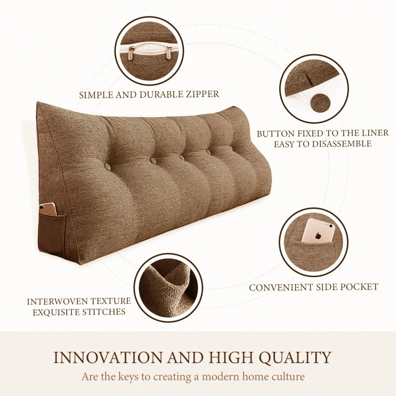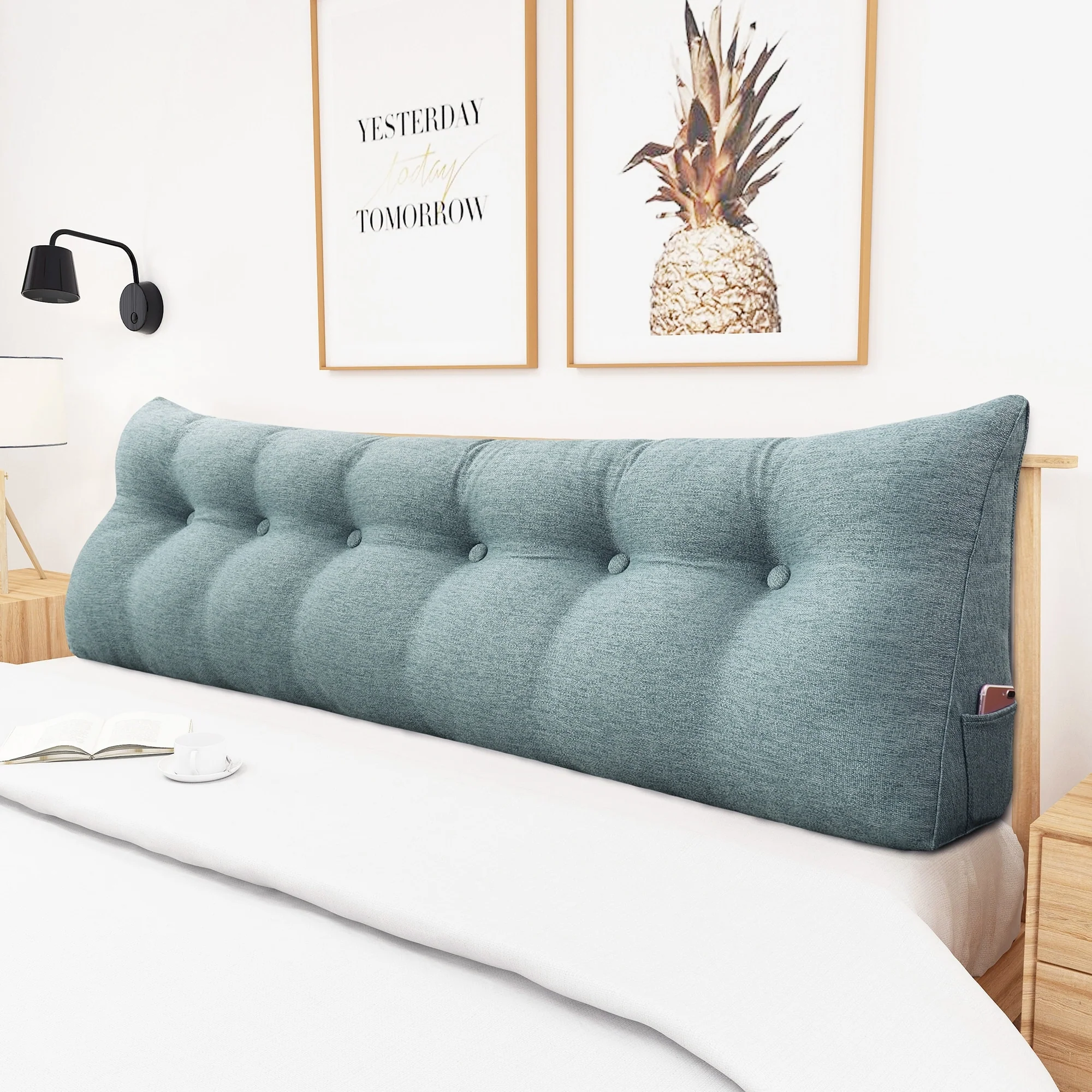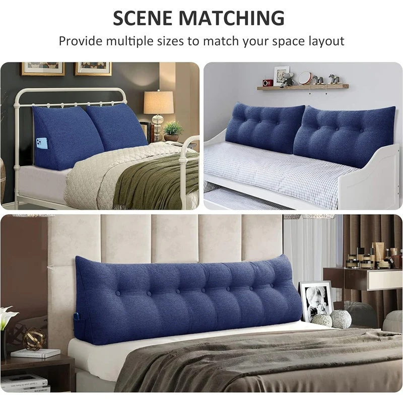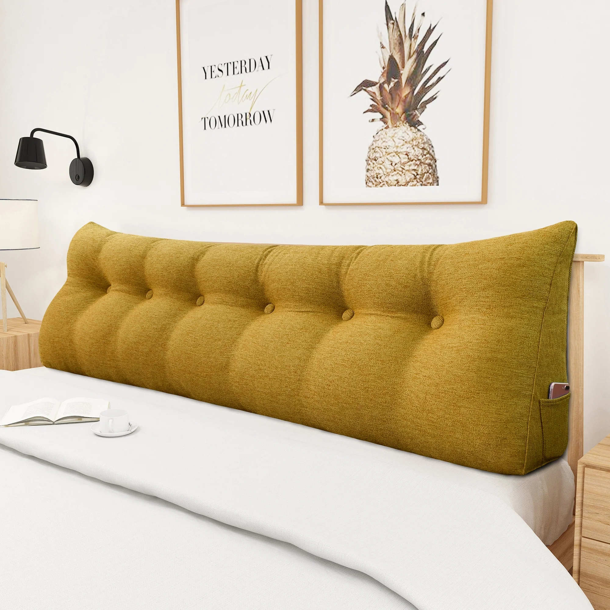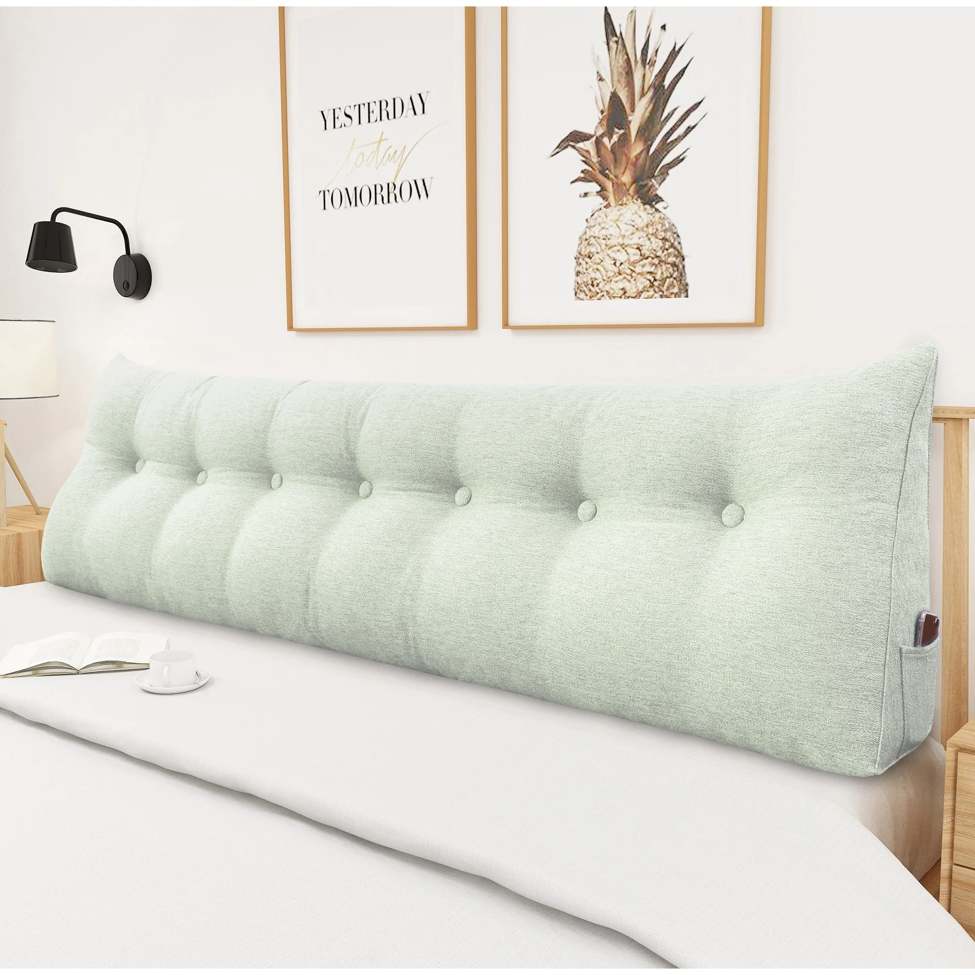 Upgrade your bed with the WOWMAX Bed Rest Wedge Reading Pillow Headboard Back Support Cushion. This versatile pillow provides comfortable and firm back support and works as a removable headboard alternative. Its unique wedge shape fills the gap between your back and the wall, and the button tufts keep the 100% polyester fiberfill in place. Use it for reading, watching TV, body positioning, leg elevation, or as a child bumper. The linen blend cover is detachable and washable, and the pillow fits all standard bed sizes. Choose from a variety of colors to match your decor.